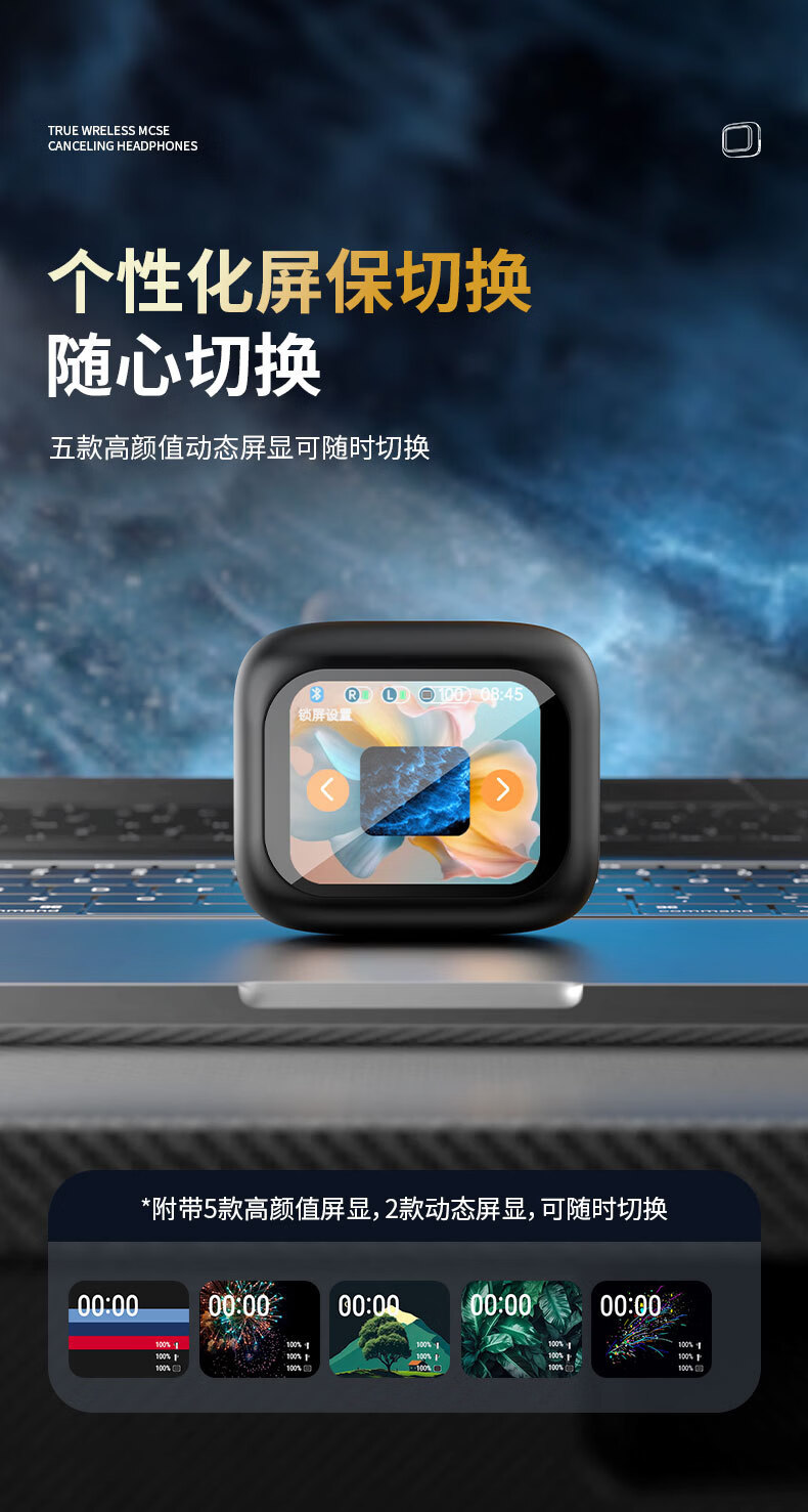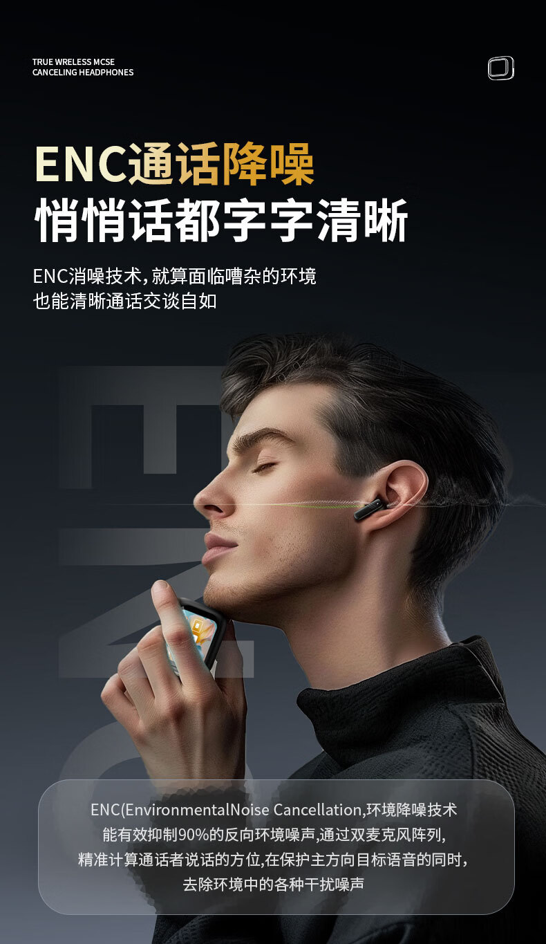 奢放2026新款彩屏耳机硅胶TWS入耳式降噪通透5.4触控可AI翻译蓝牙耳机双耳 经典黑
