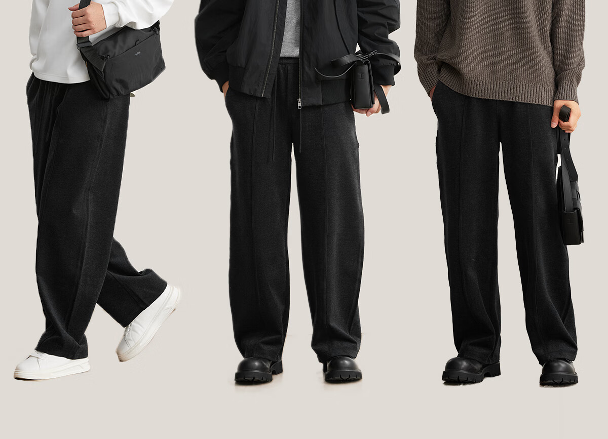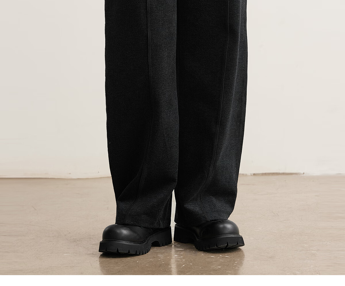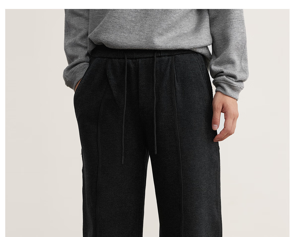 MARKLESS水洗毛呢感男士休闲裤 秋冬新款垂柔长裤男直筒裤子5823 黑灰色 2XL