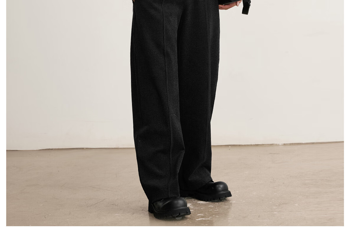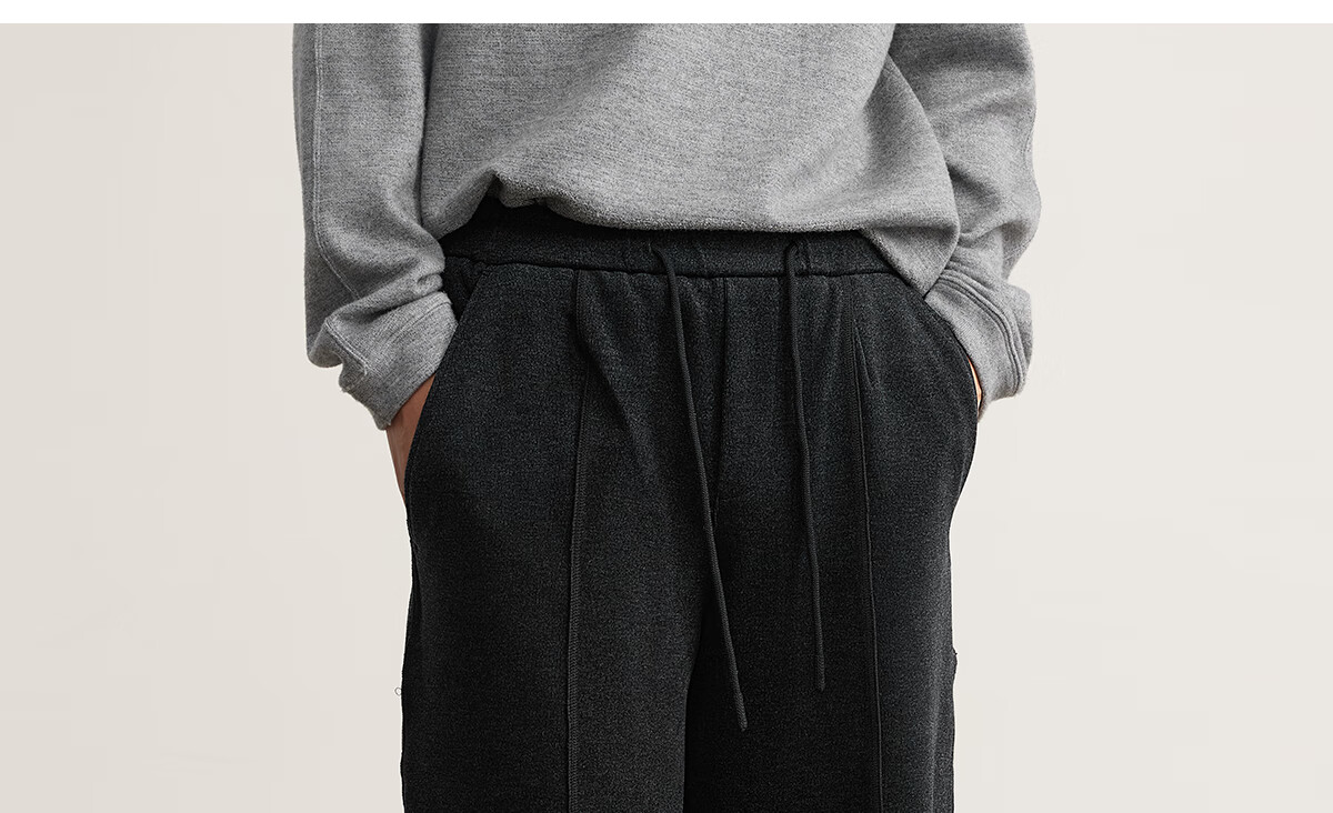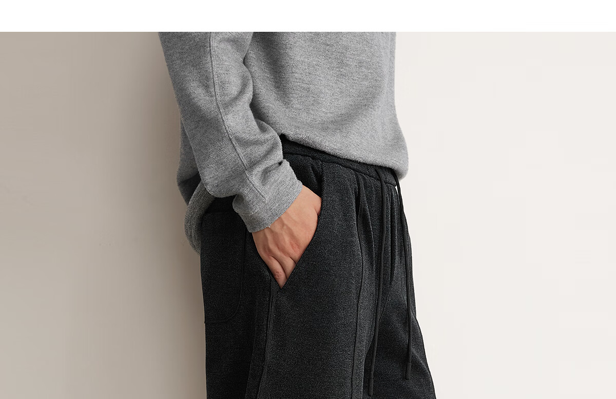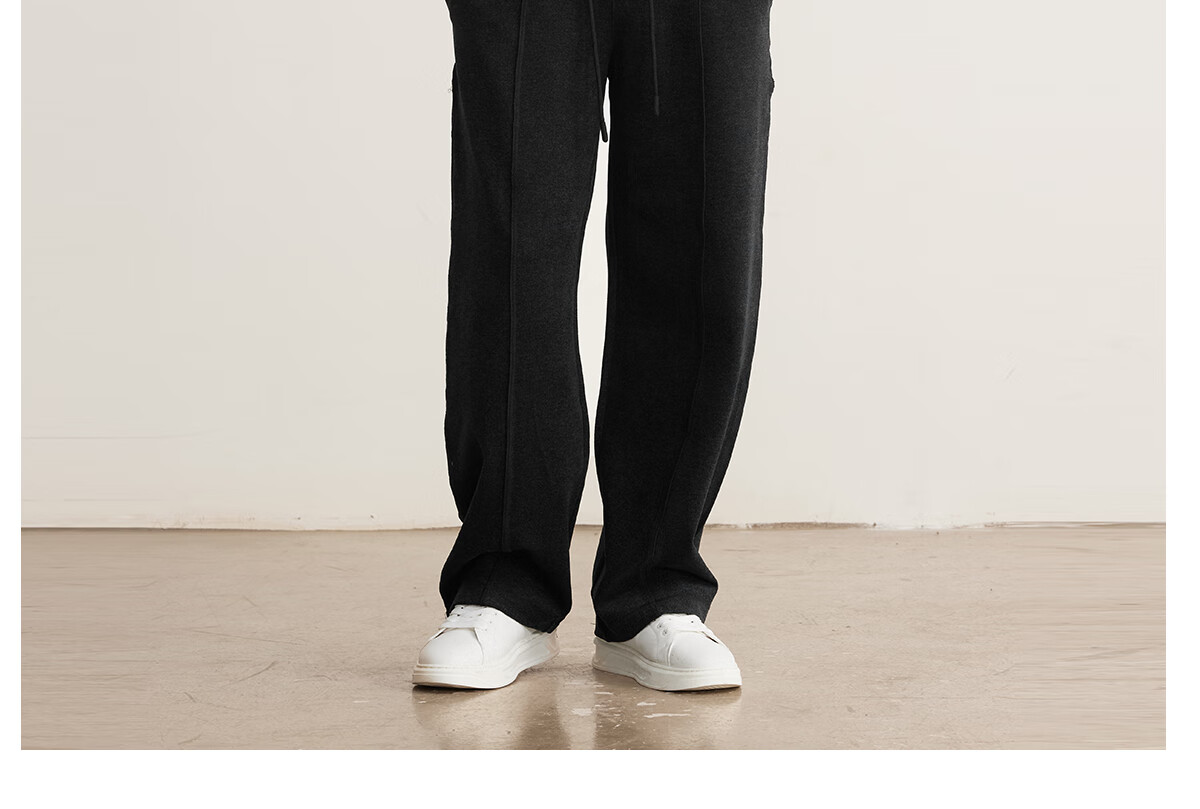 MARKLESS水洗毛呢感男士休闲裤 秋冬新款垂柔长裤男直筒裤子5823 黑灰色 2XL