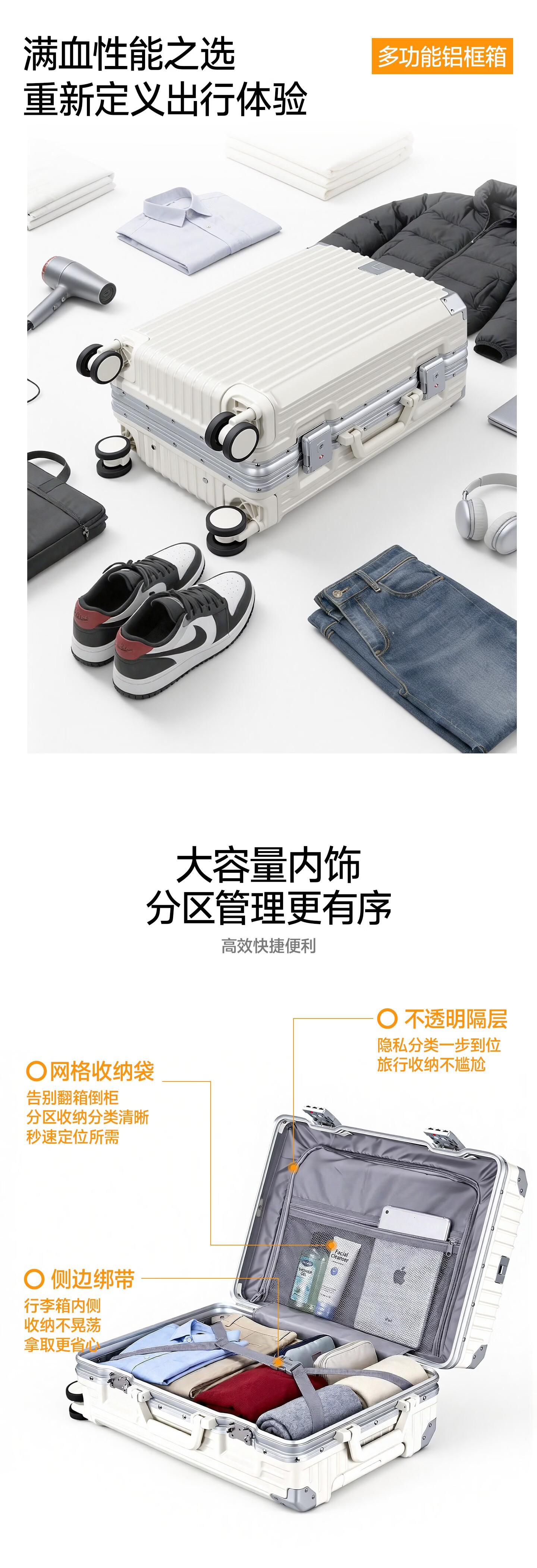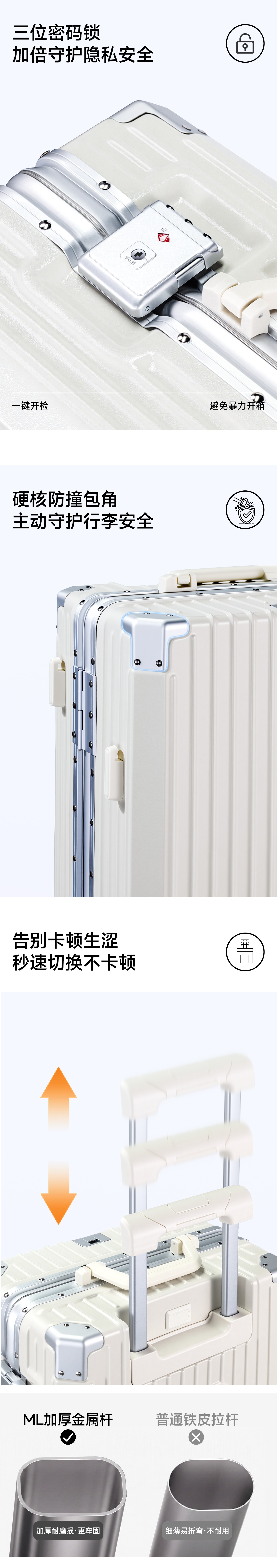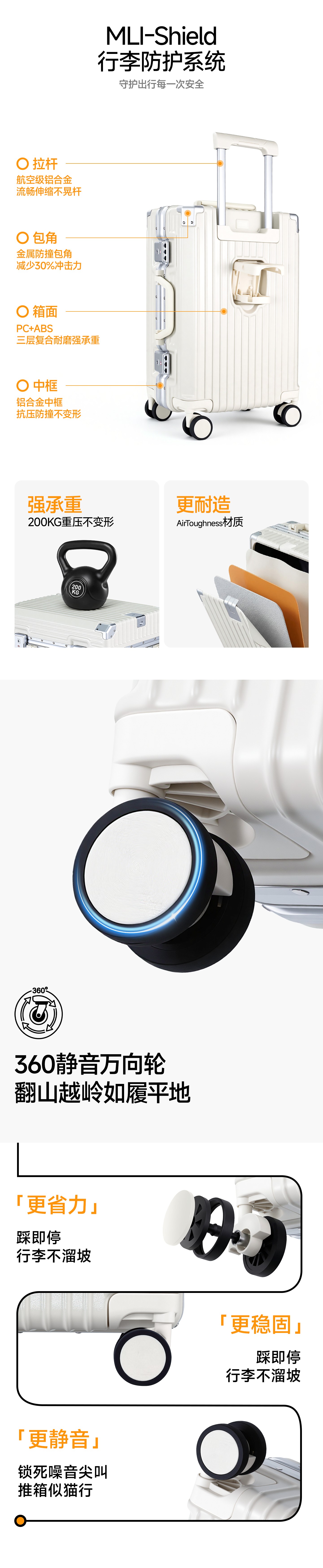 ROYAL ARMY多功能行李箱大容量旅行箱男女学生时尚潮流拉杆箱登机密码锁箱包 白色升级款-手机支架+杯架+挂钩 25英寸 -【需托运】