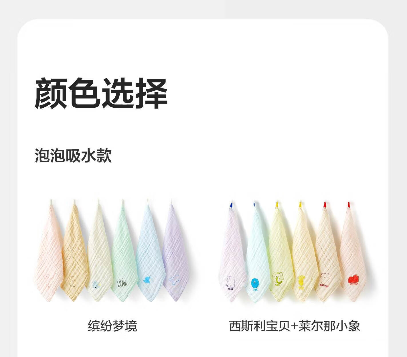 babycare 1婴儿新生柔瞬吸口水巾洗脸巾洗澡巾拍嗝巾泡泡纱布方巾一巾多用 【6条装】缤纷梦境30*30cm