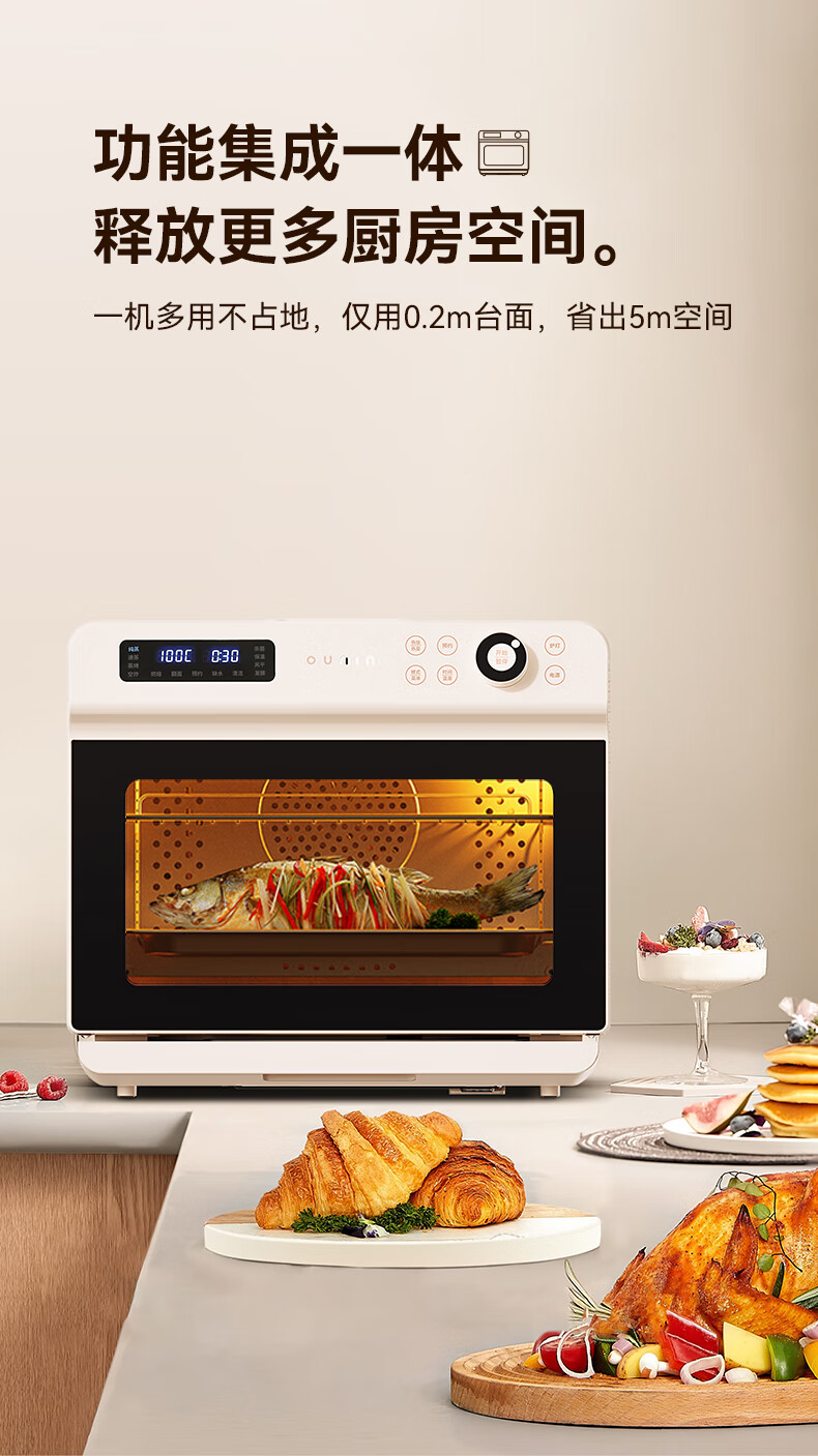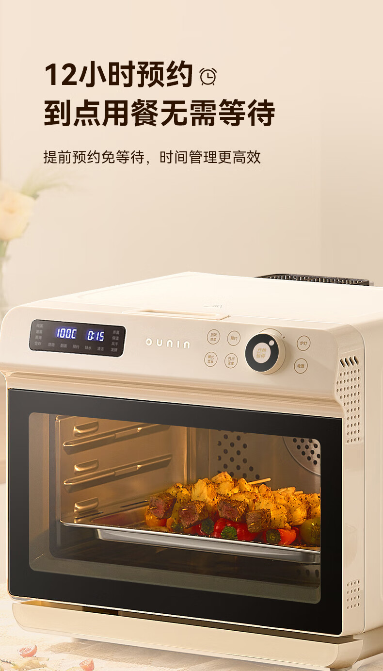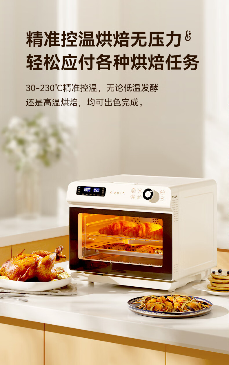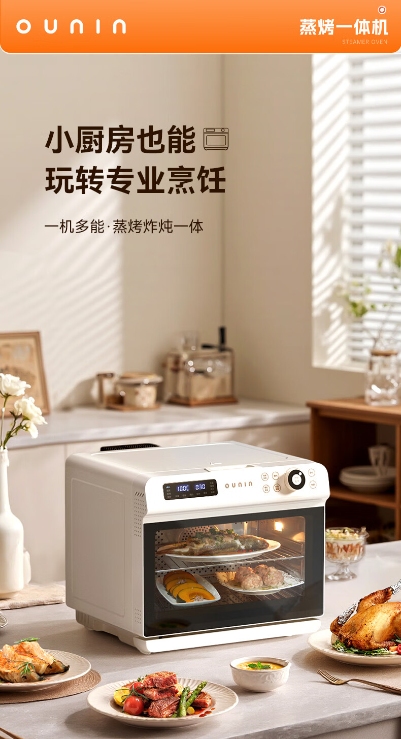 欧宁(OUNIN)小奶芙蒸烤箱 家用台式蒸烤炉 蒸汽嫩烤机 32L大容量多功能烘焙机 蒸汽炸一体机 科技灰【全能蒸烤箱】 32L