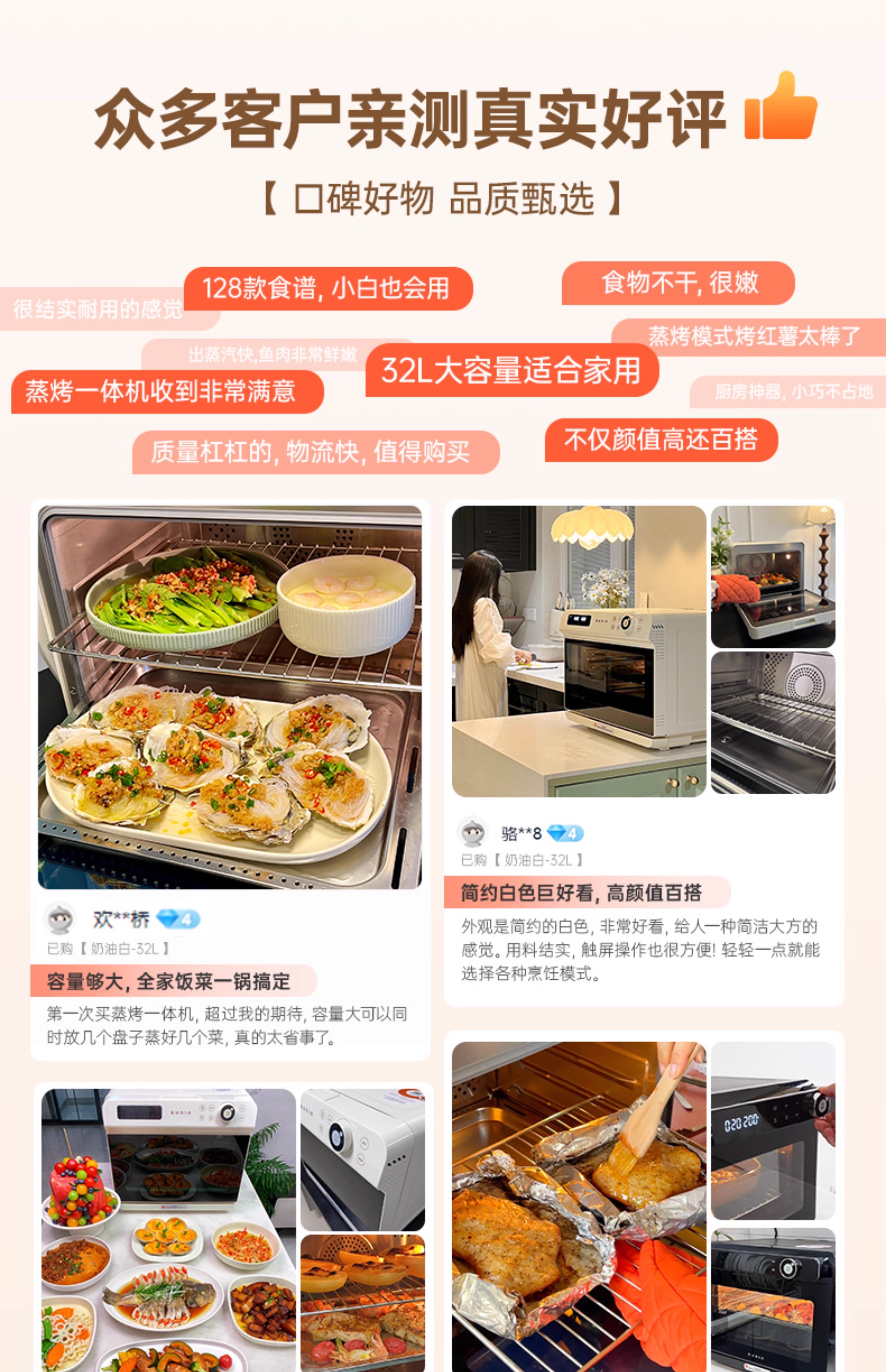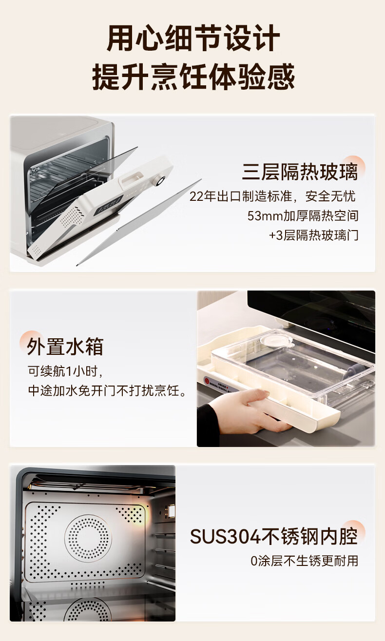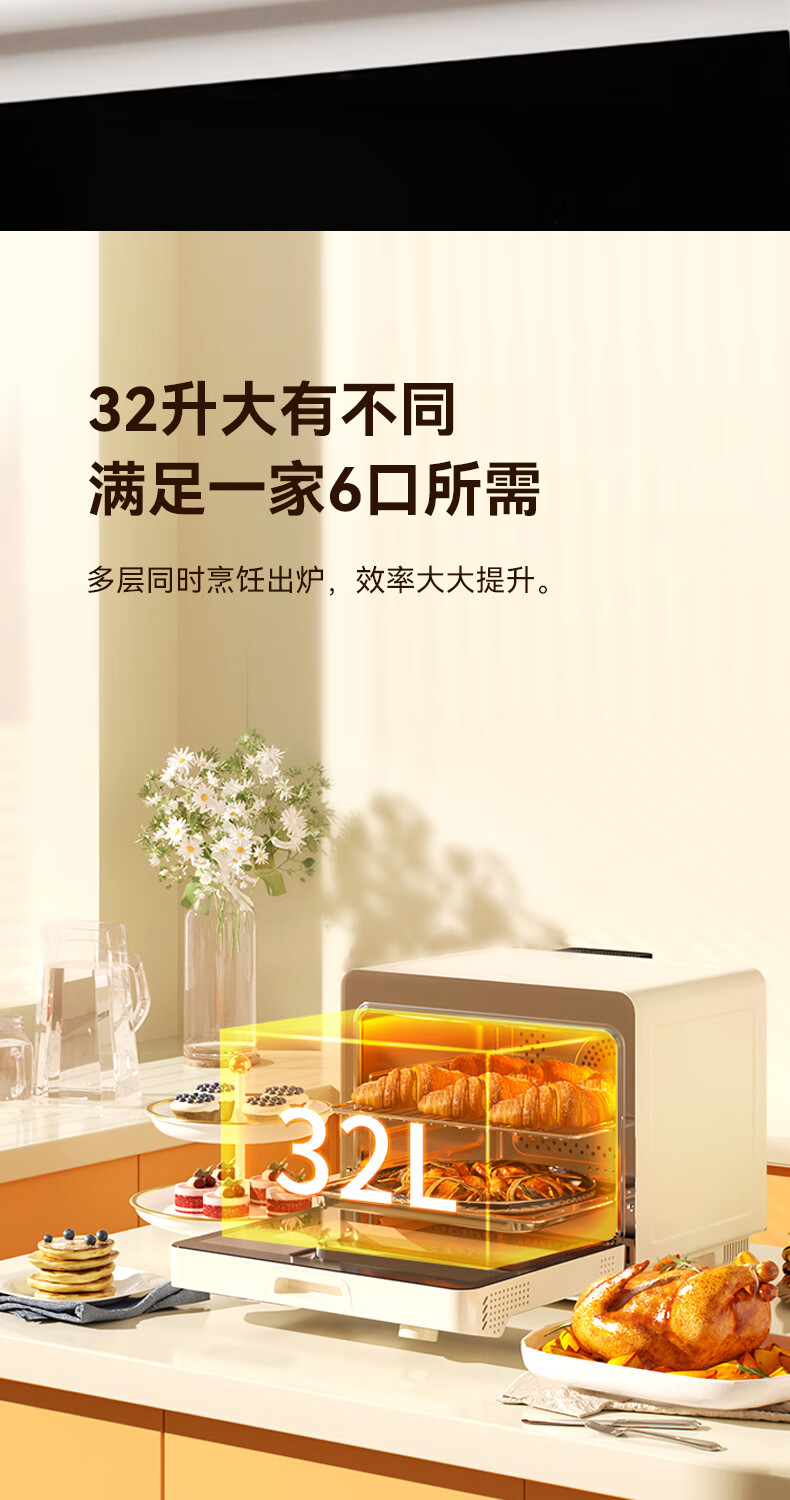 欧宁(OUNIN)小奶芙蒸烤箱 家用台式蒸烤炉 蒸汽嫩烤机 32L大容量多功能烘焙机 蒸汽炸一体机 科技灰【全能蒸烤箱】 32L