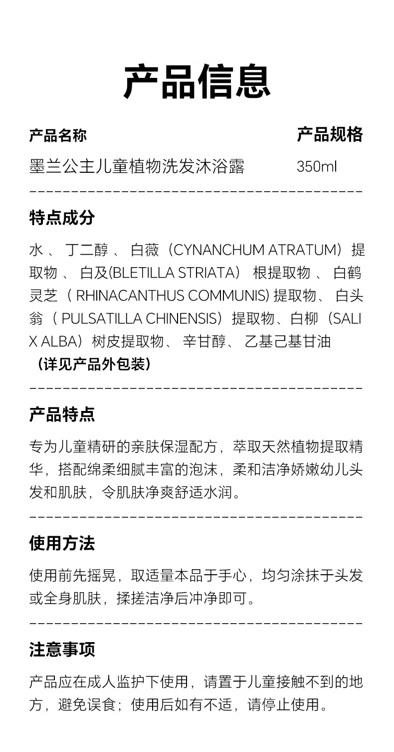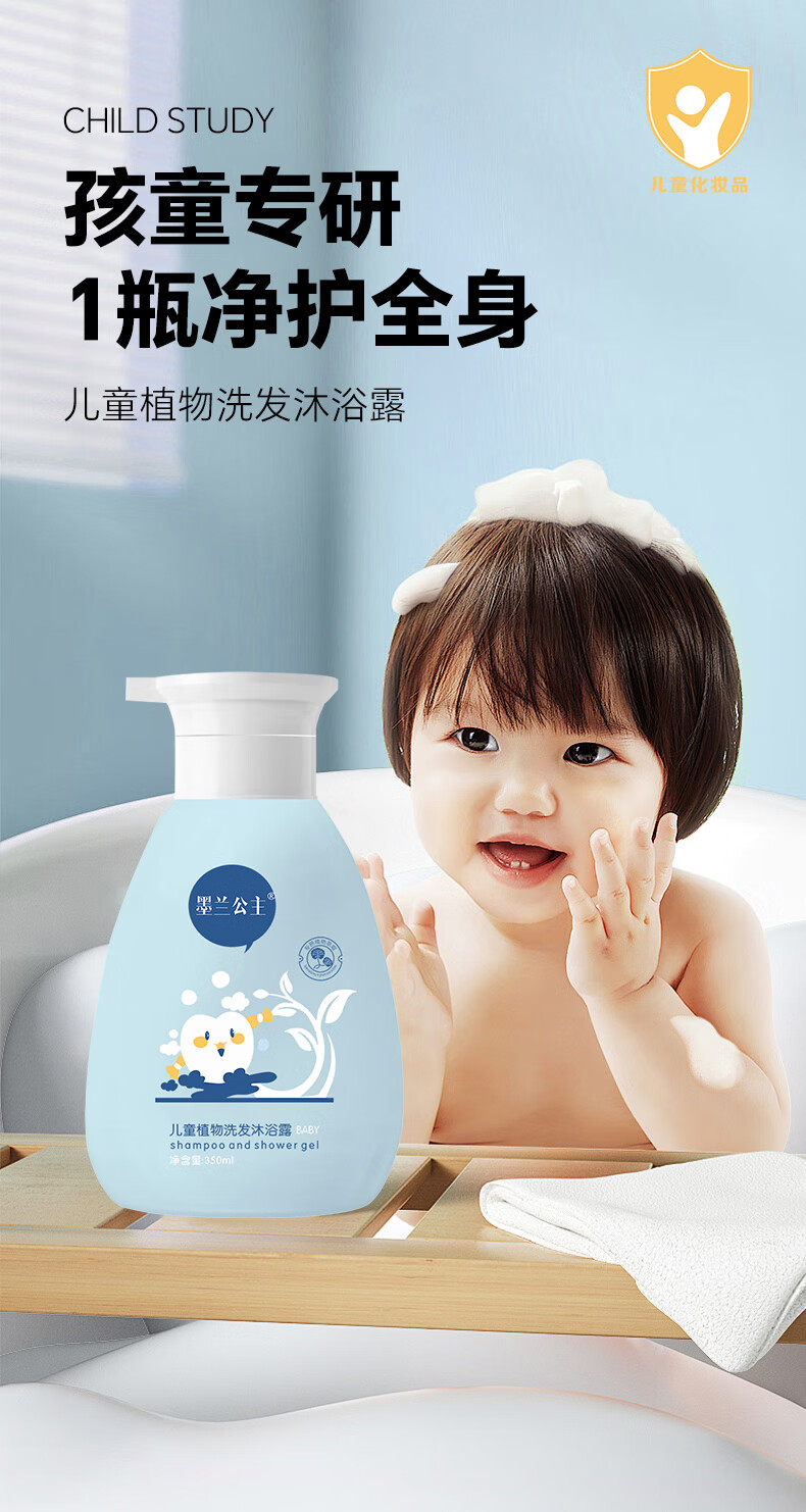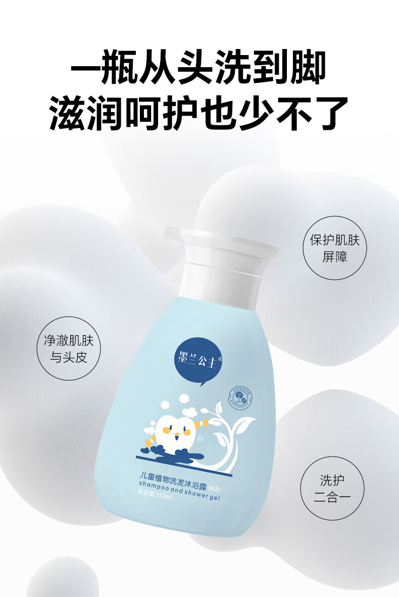 墨兰公主儿童洗发水沐浴露洗发沐浴二合一儿童洗发露宝宝洗发水儿6-12 双专利款 350ml*2瓶 常规装