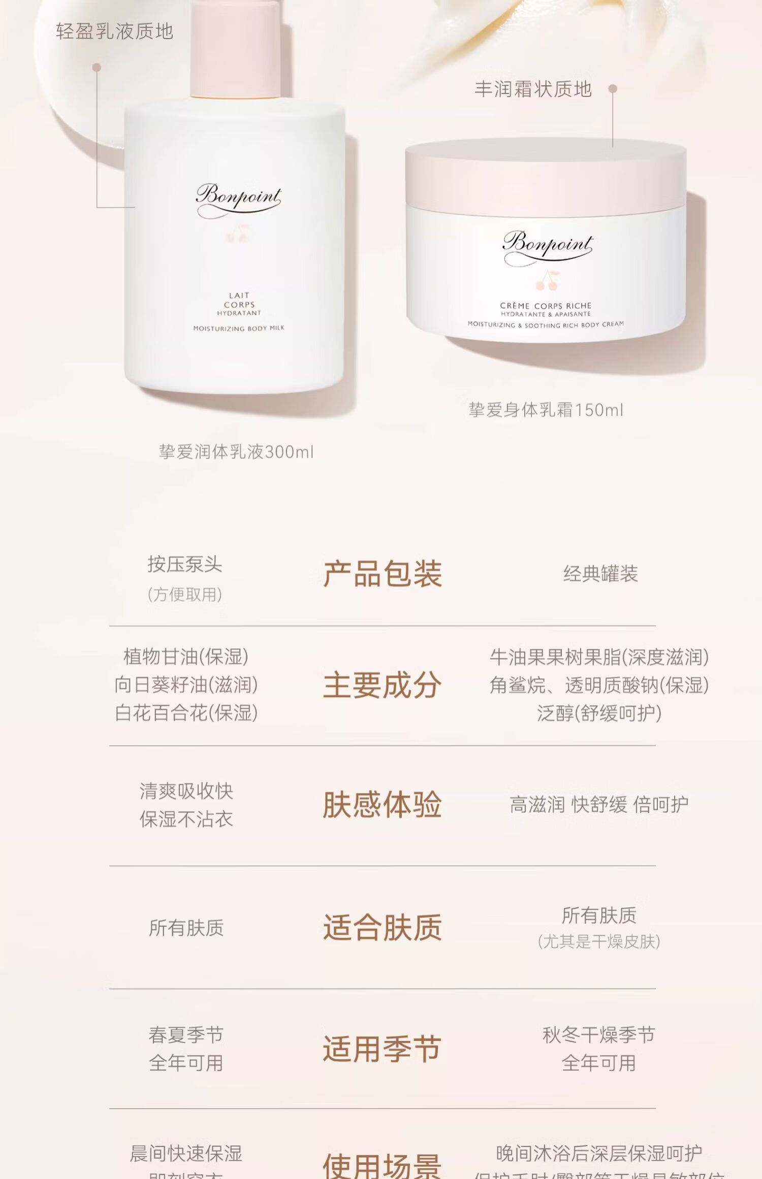 BONPOINT小樱桃bp挚爱身体乳液身体润肤乳轻盈水润24h持久保湿春夏敏感肌 150ml 1瓶 身体乳霜