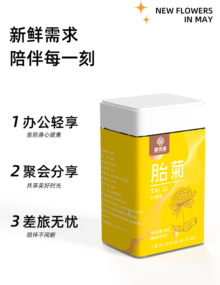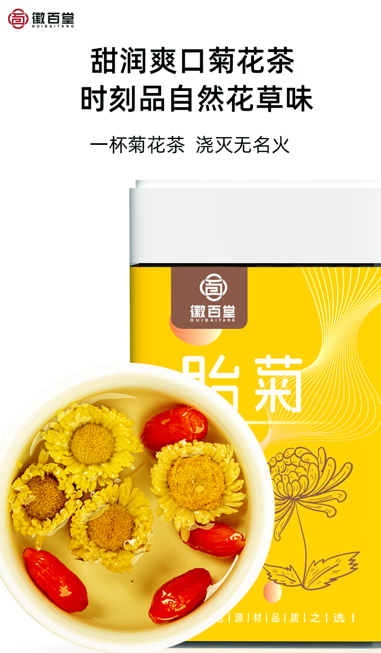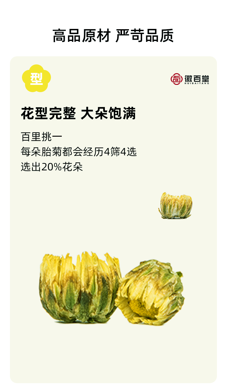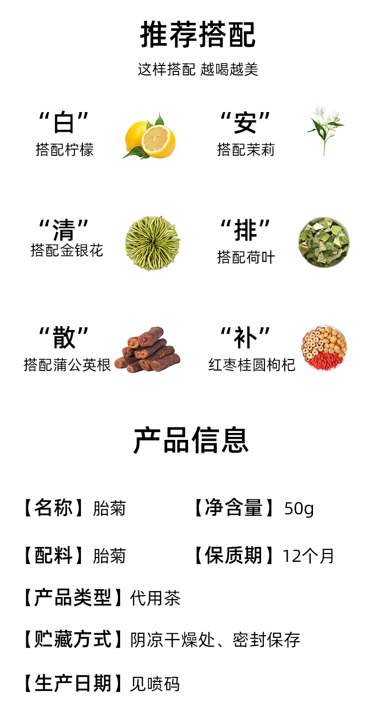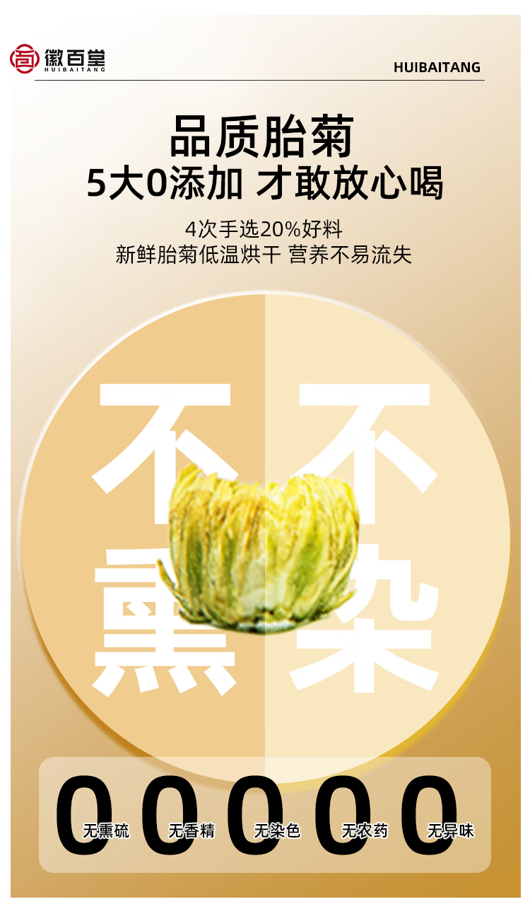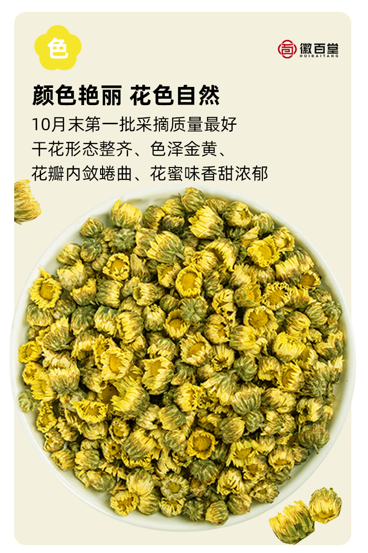 徽百堂胎菊桐乡头茬含苞无熏硫菊花泡茶50g杭白菊养生茶凉茶可搭配枸杞