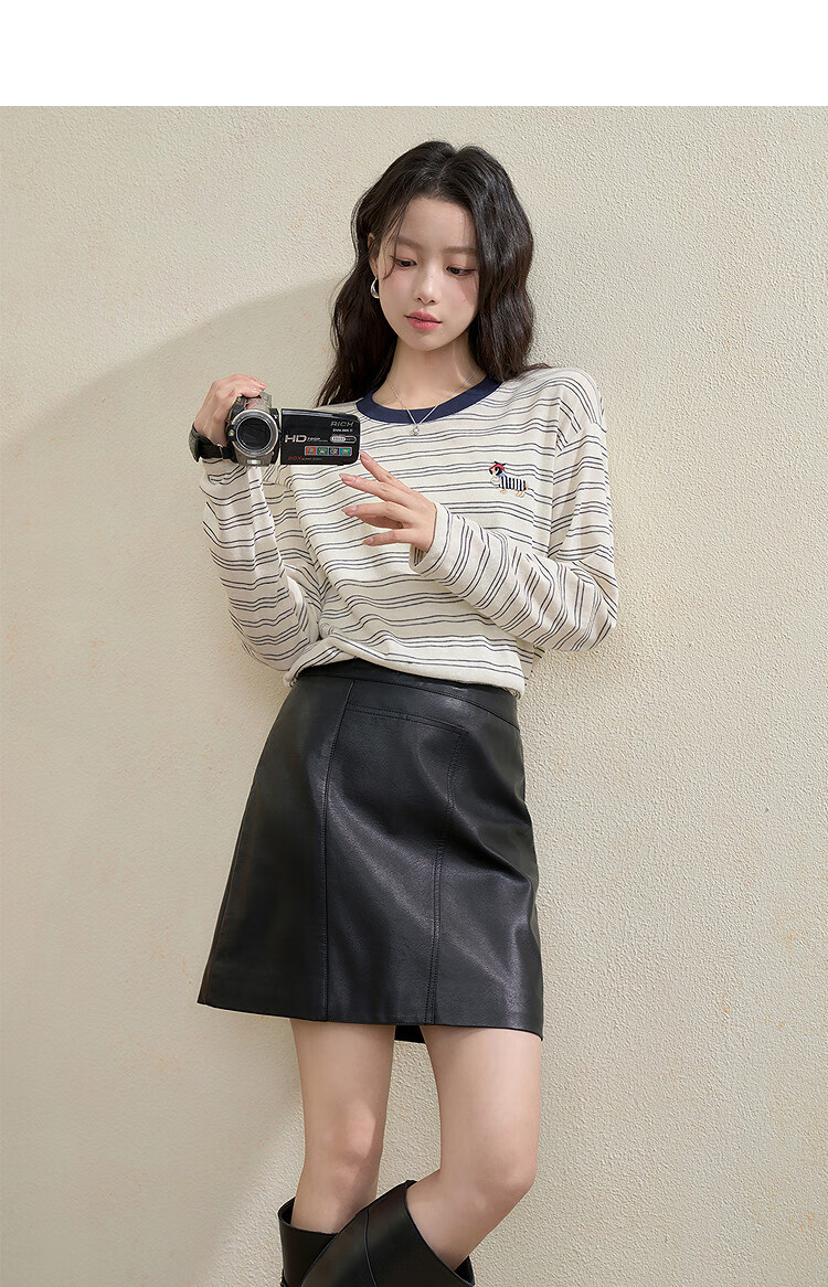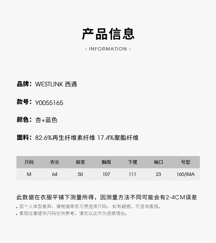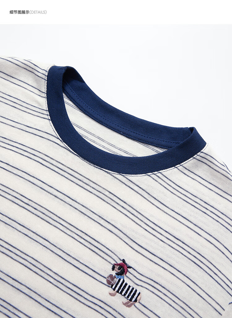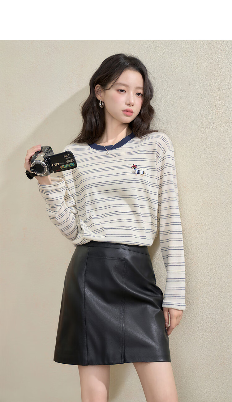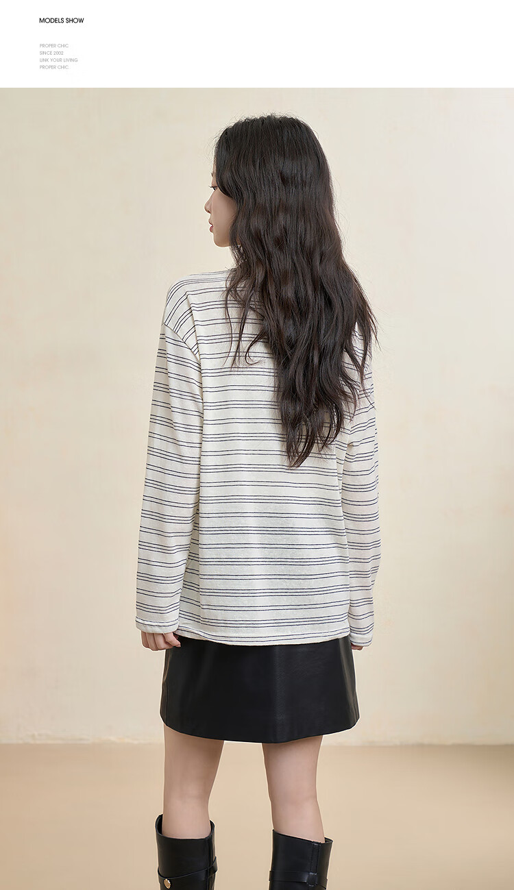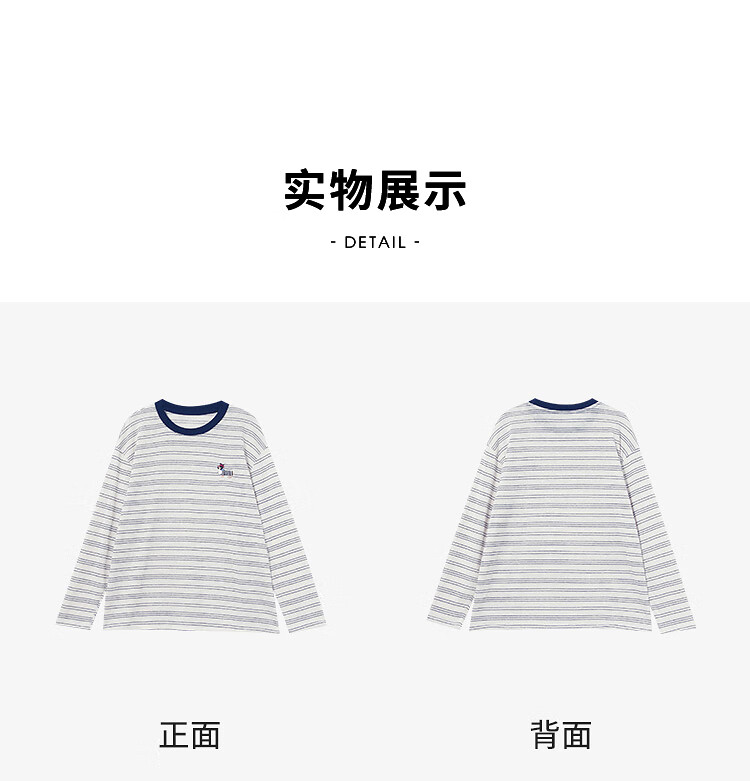 西遇(Westlink)西遇撞色条纹长袖T恤女秋季新款慵懒松弛圆领宽松内搭上衣 杏+蓝色 (预售15天) M (160)