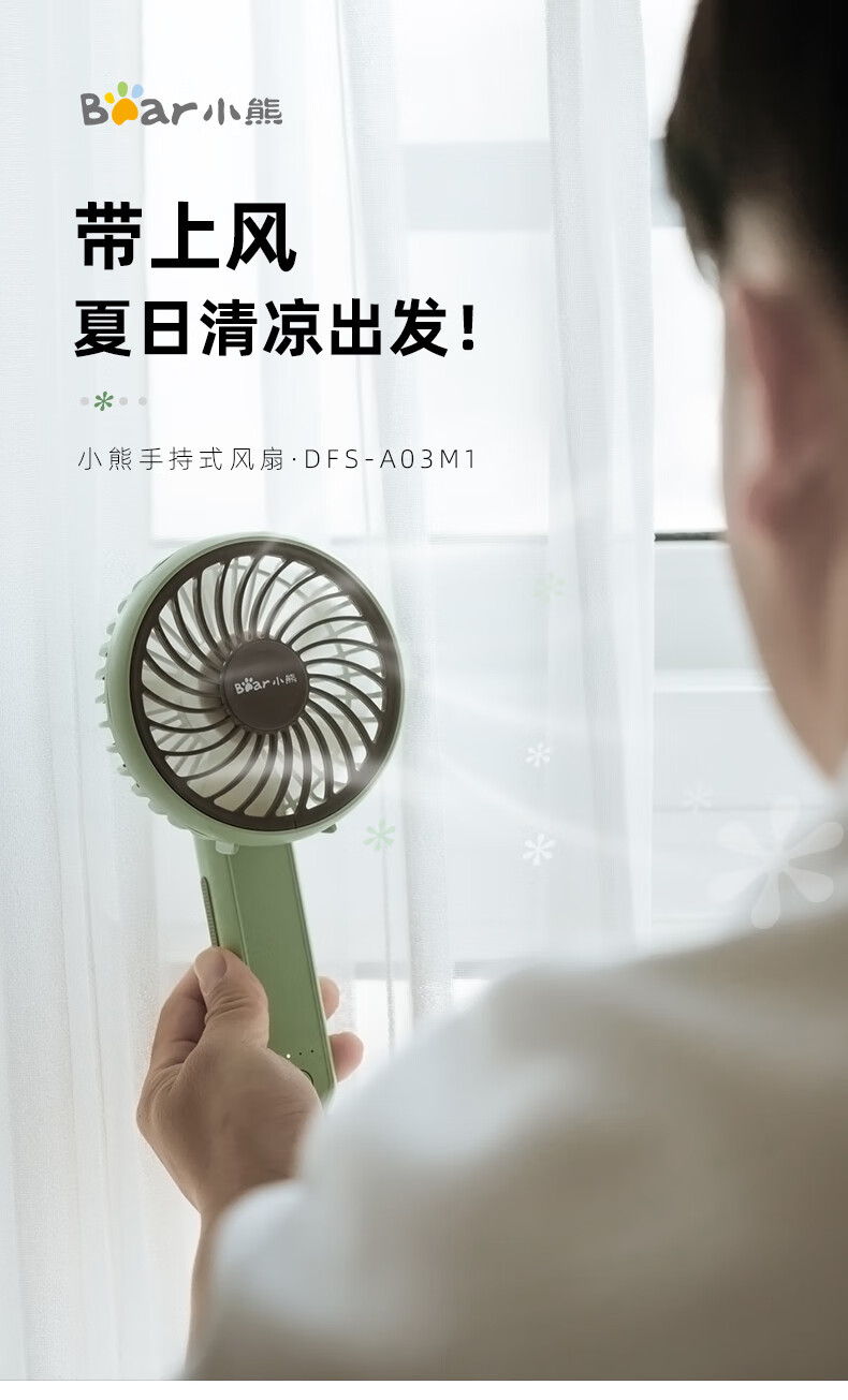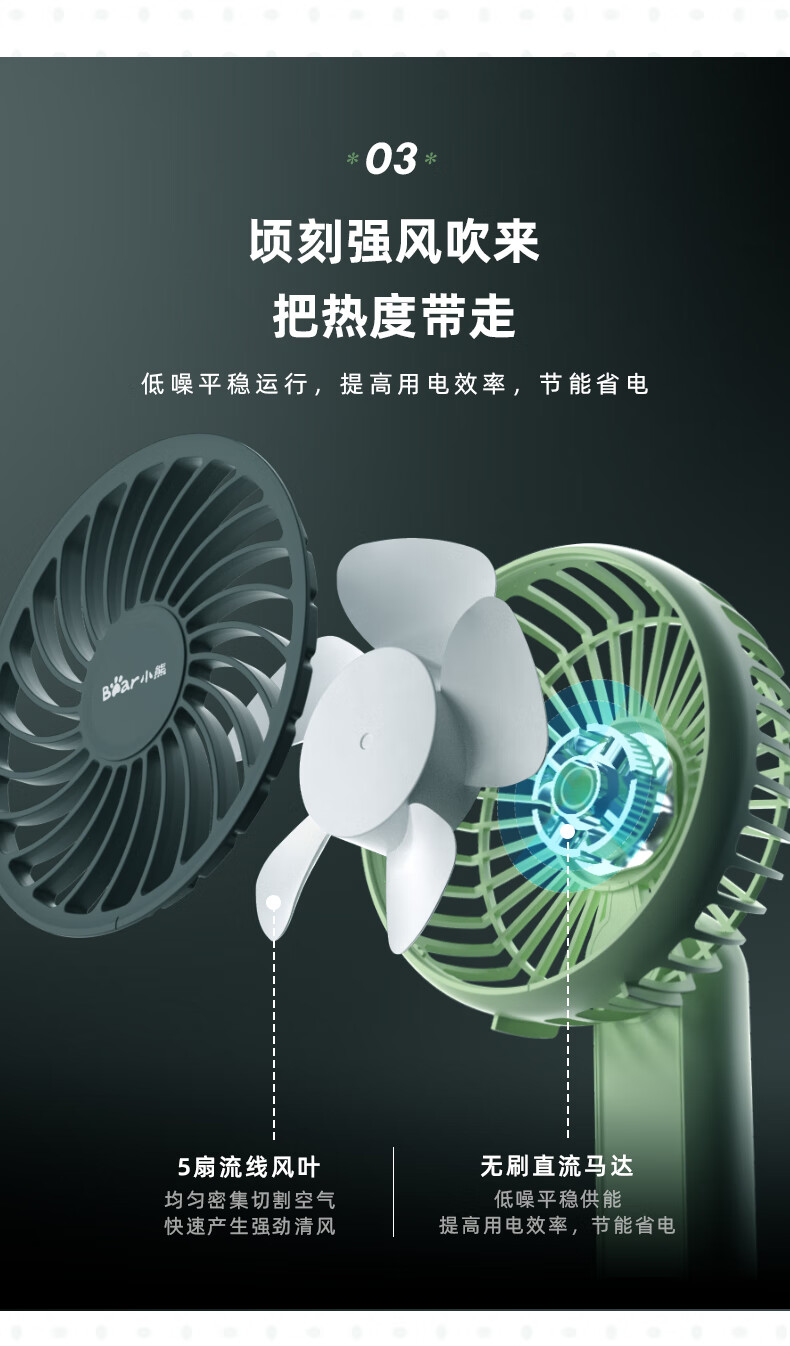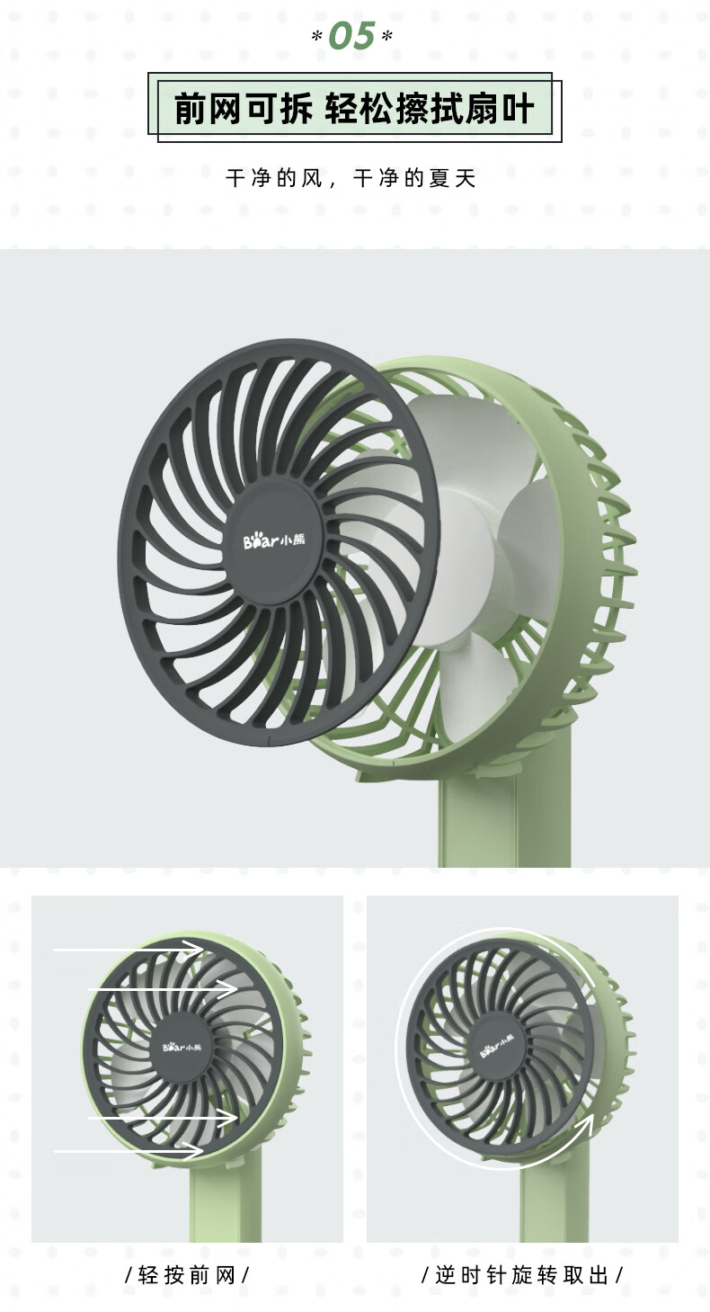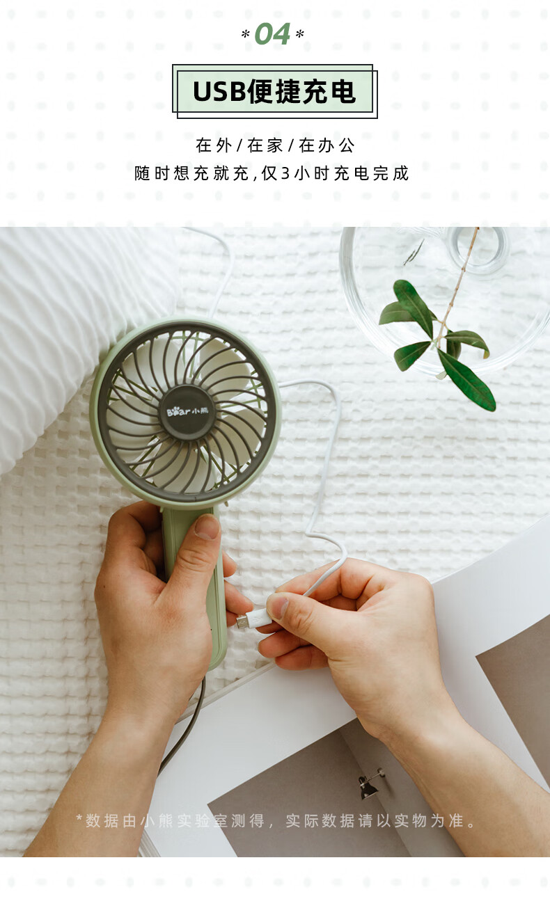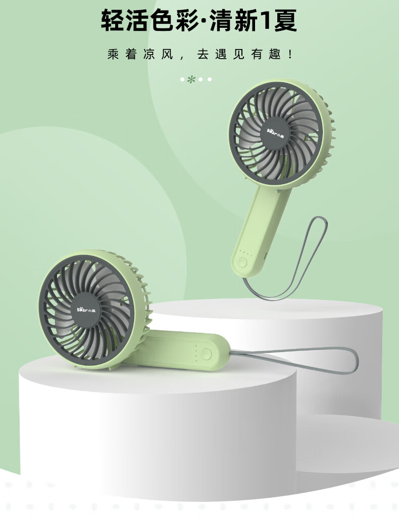 小熊(Bear)车载USB小风扇迷你手持便携式电风扇小型可充电宿舍桌面折叠低噪