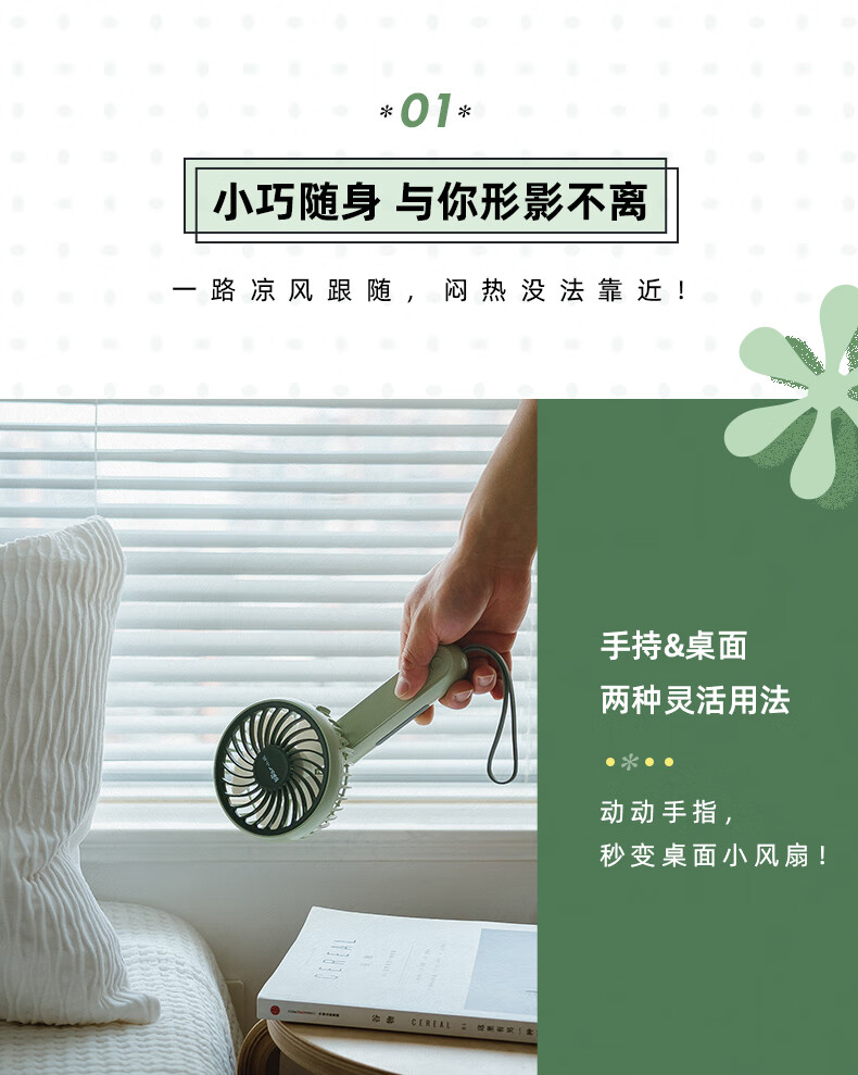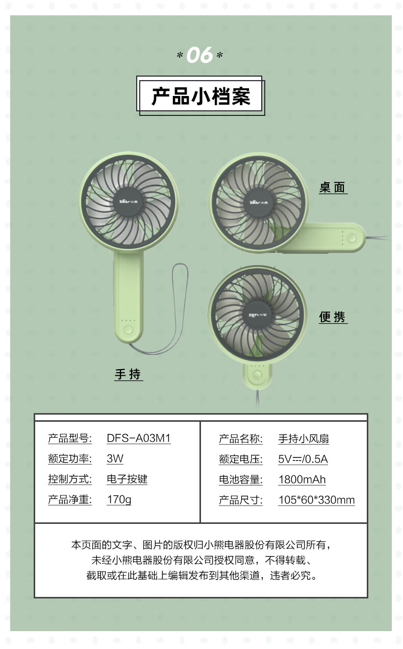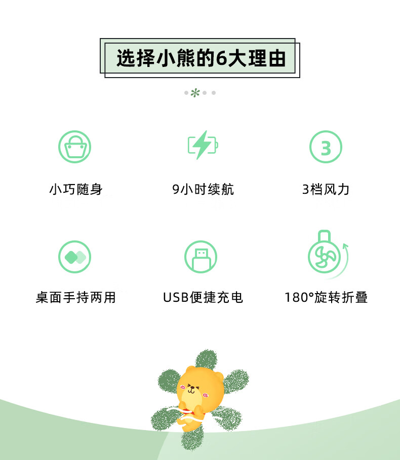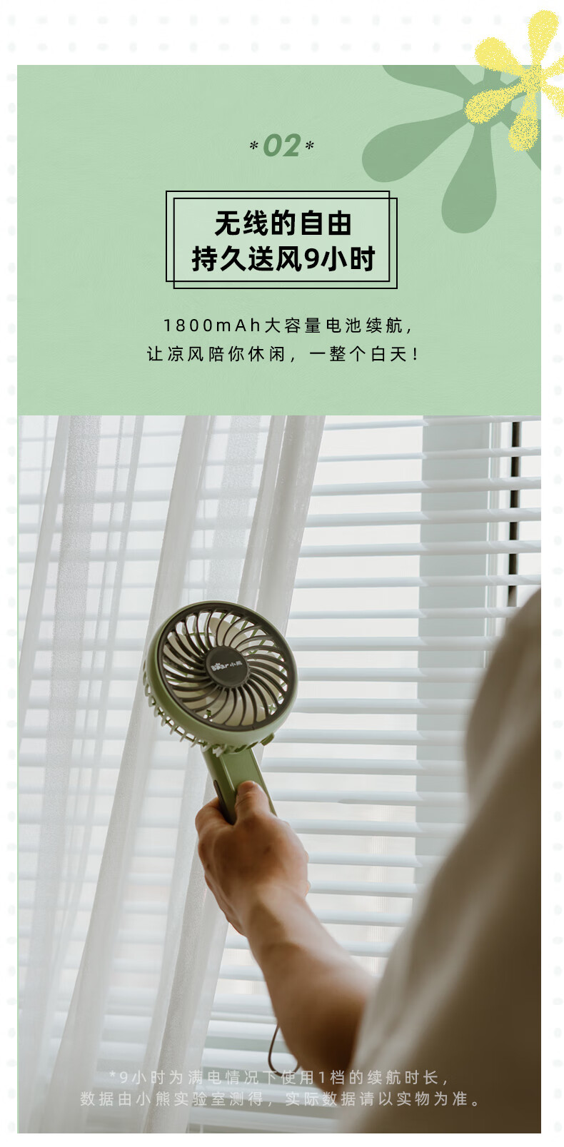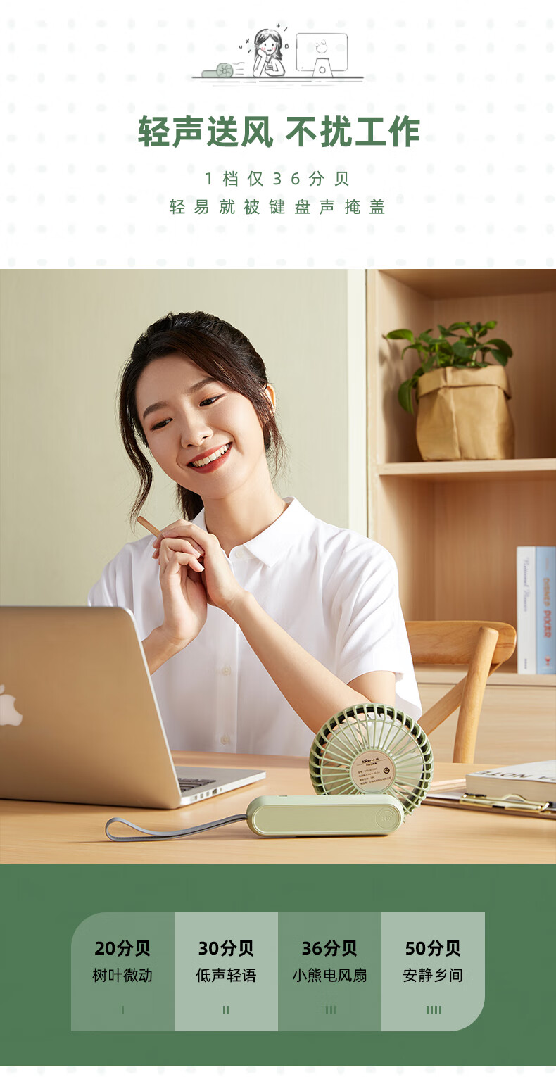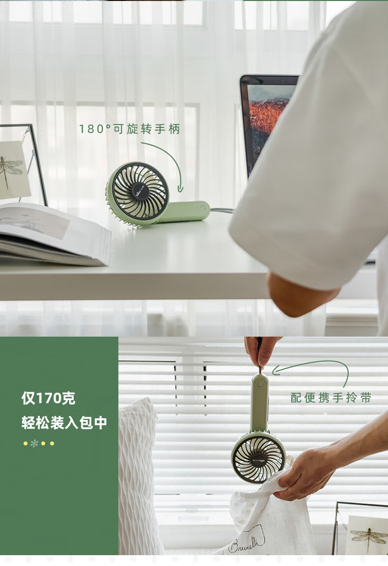 小熊(Bear)车载USB小风扇迷你手持便携式电风扇小型可充电宿舍桌面折叠低噪
