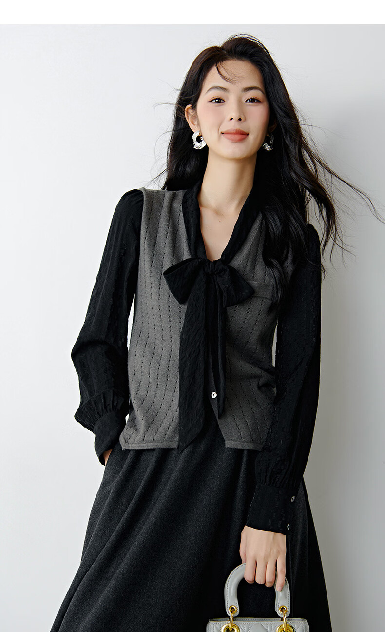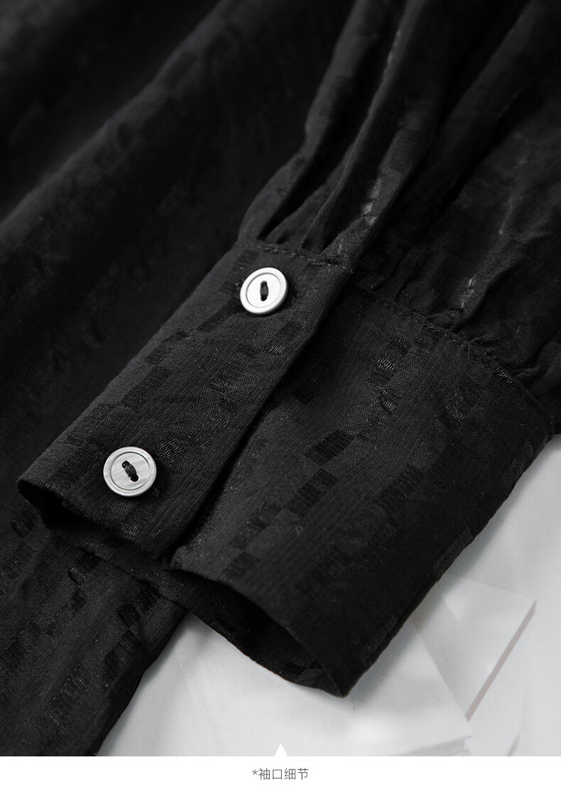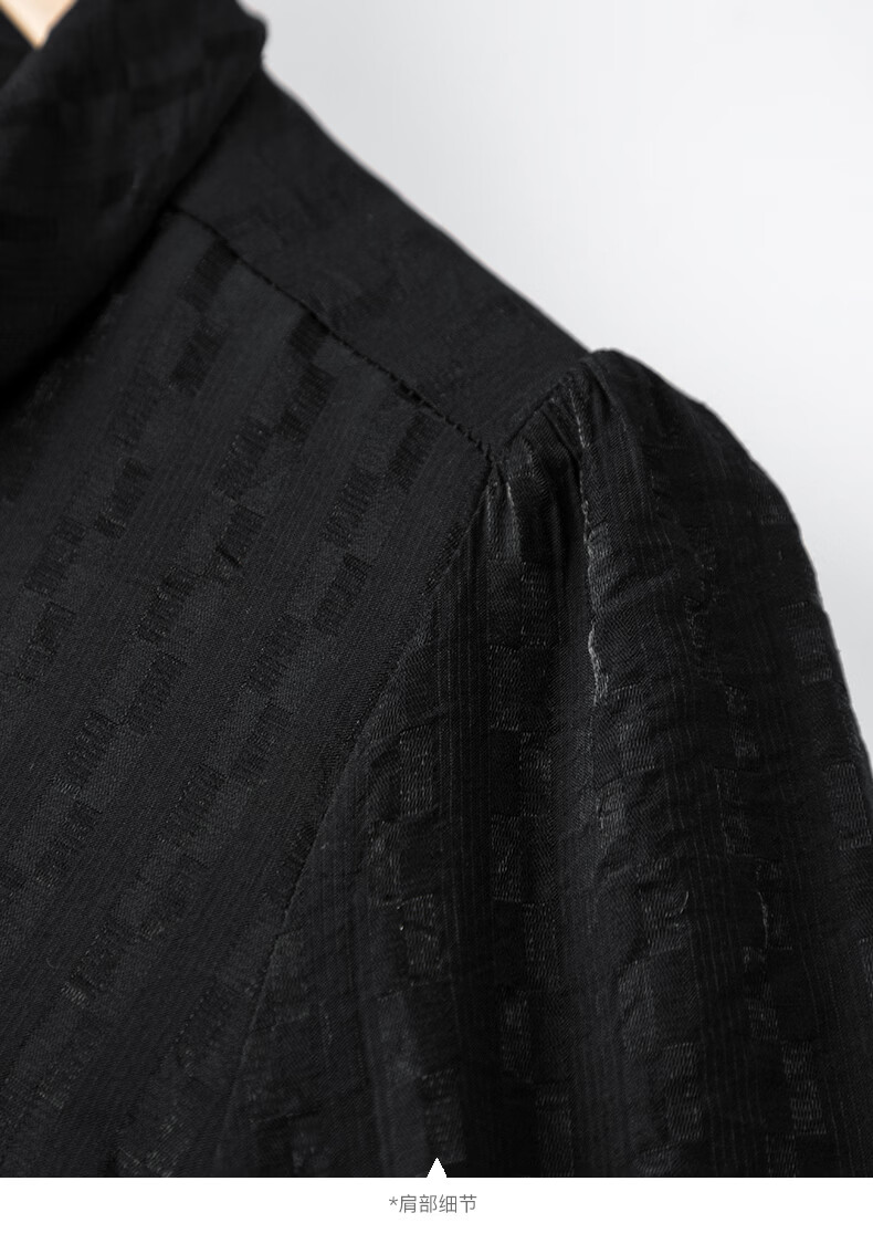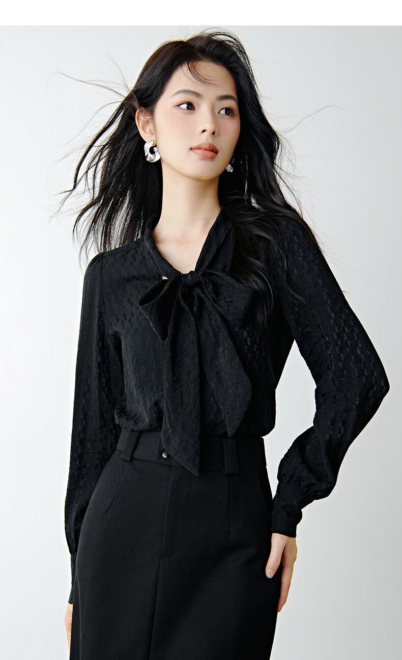 晚白【新品】2026年春款时尚暗纹系带蝴蝶结领上衣垂顺知性通勤衬衫女 黑色 L