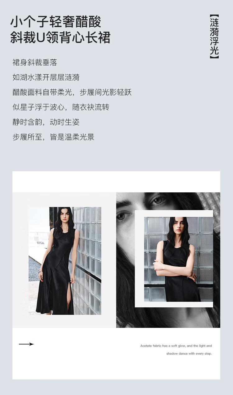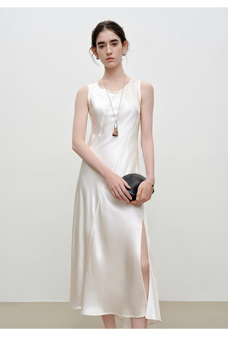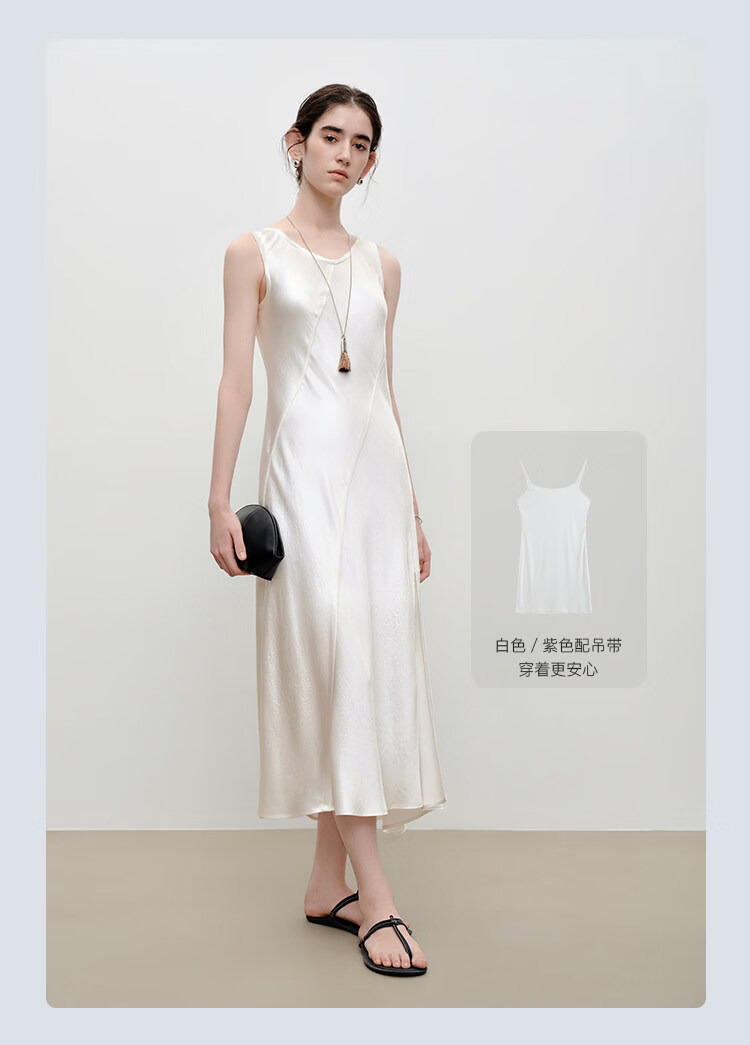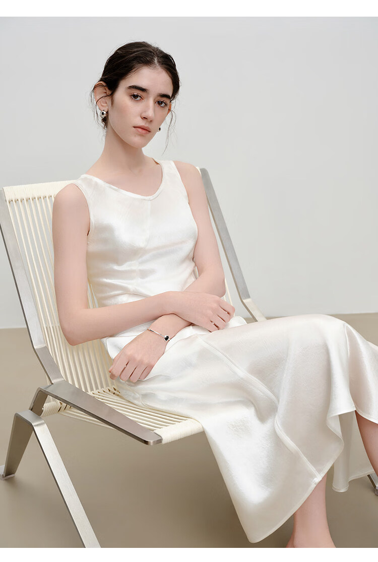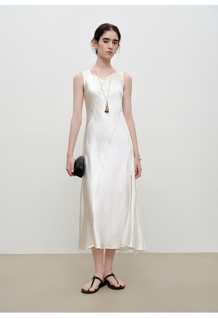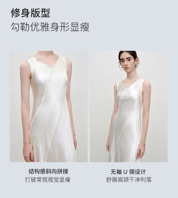 自巧【涟漪浮光】小个子轻奢醋酸斜裁U领背心长裙2026年夏季新品 雅白色 M (尺码:4)