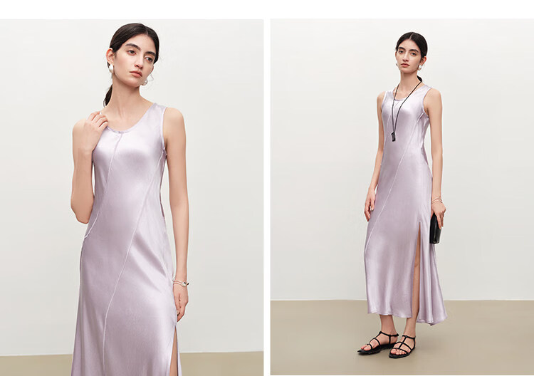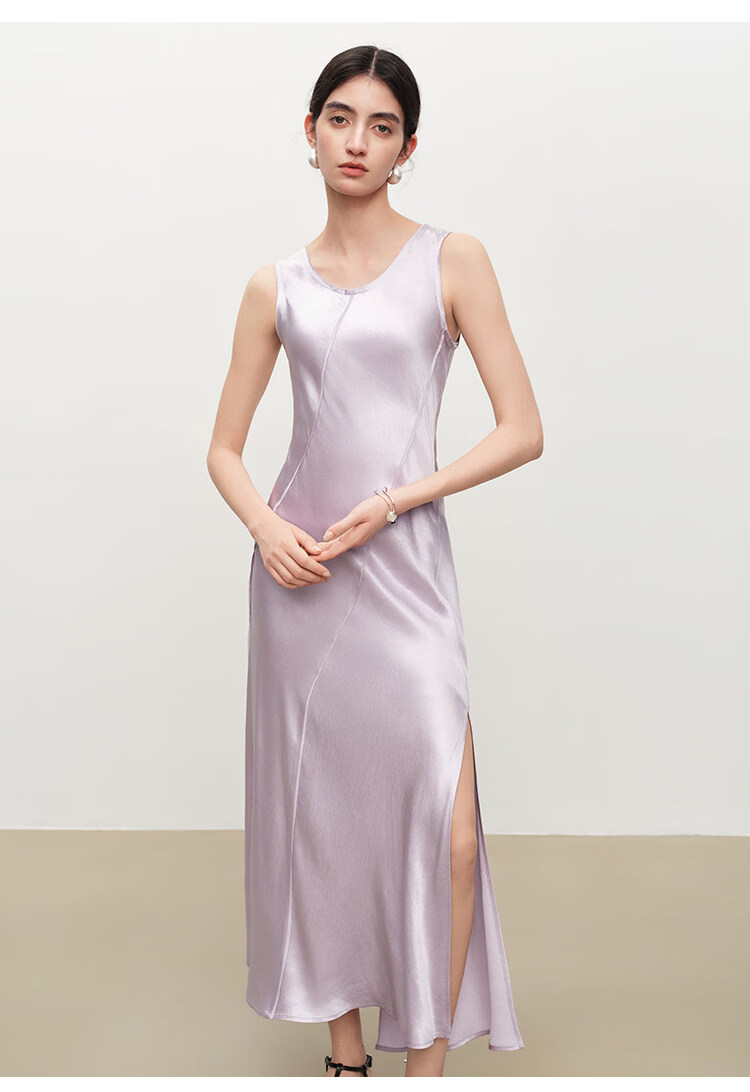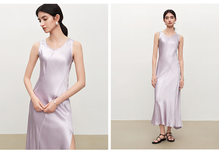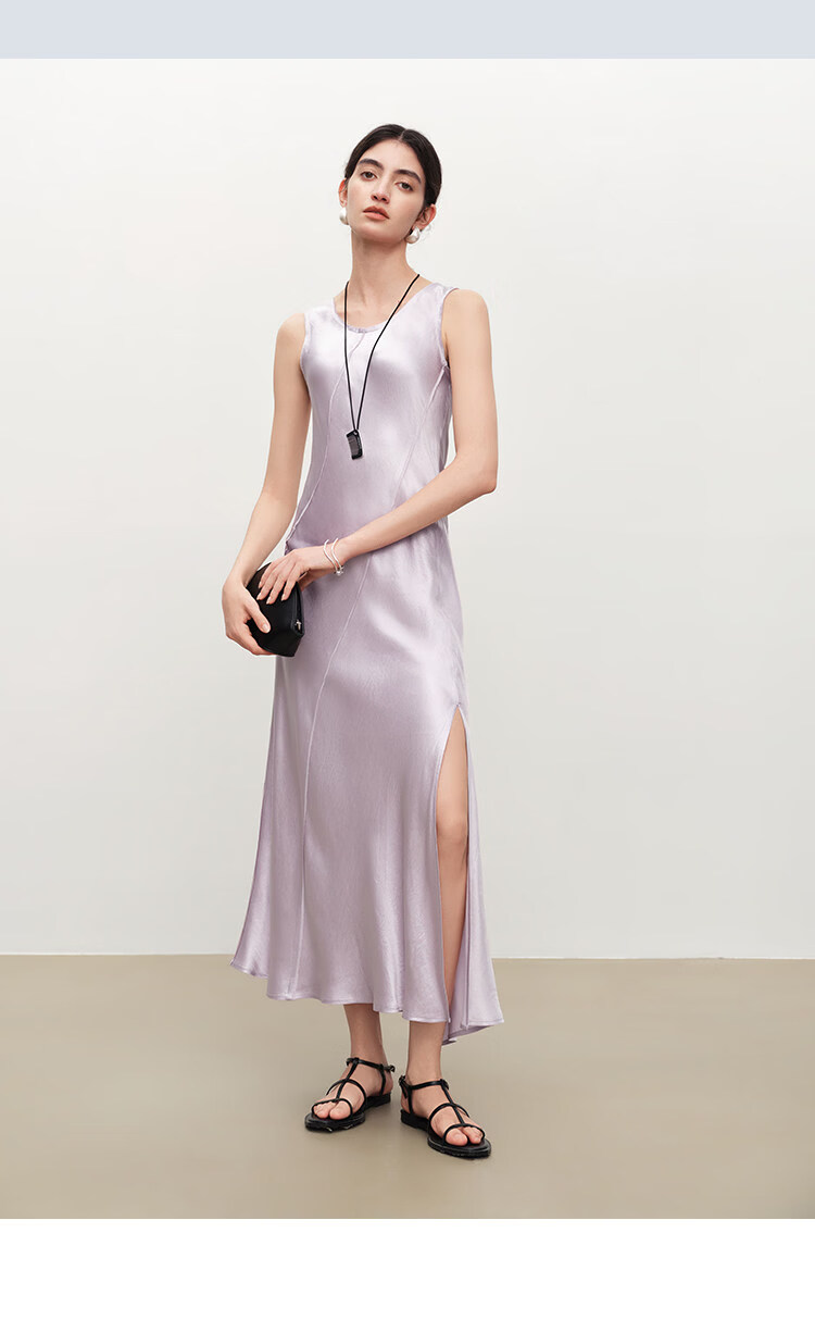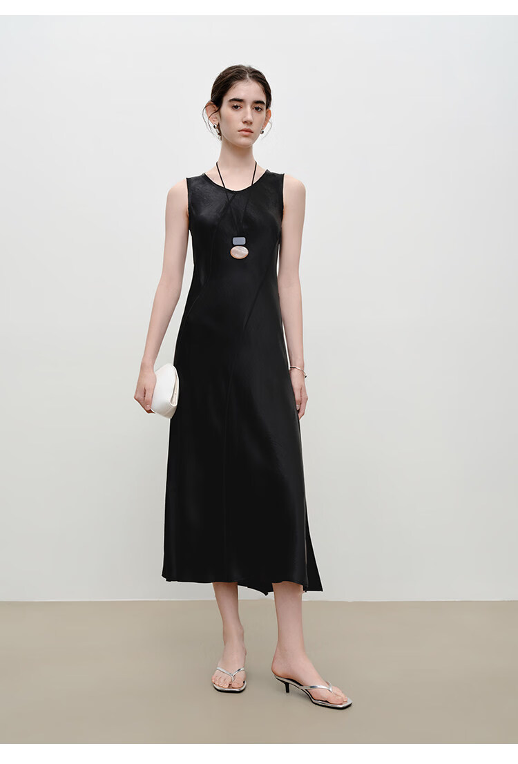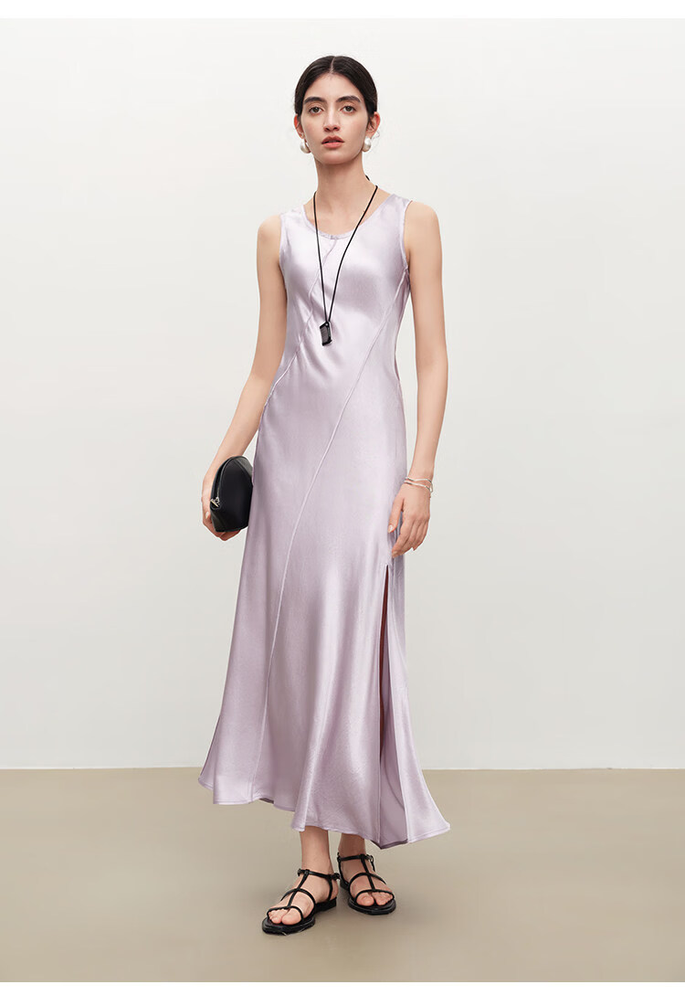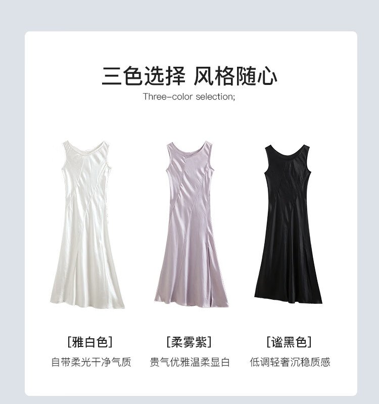 自巧【涟漪浮光】小个子轻奢醋酸斜裁U领背心长裙2026年夏季新品 雅白色 M (尺码:4)
