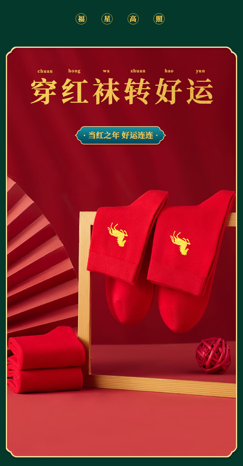 蕉内(Bananain)红色计划520C女士棉袜子本命马年抗菌防臭秋冬季长筒礼盒3双装