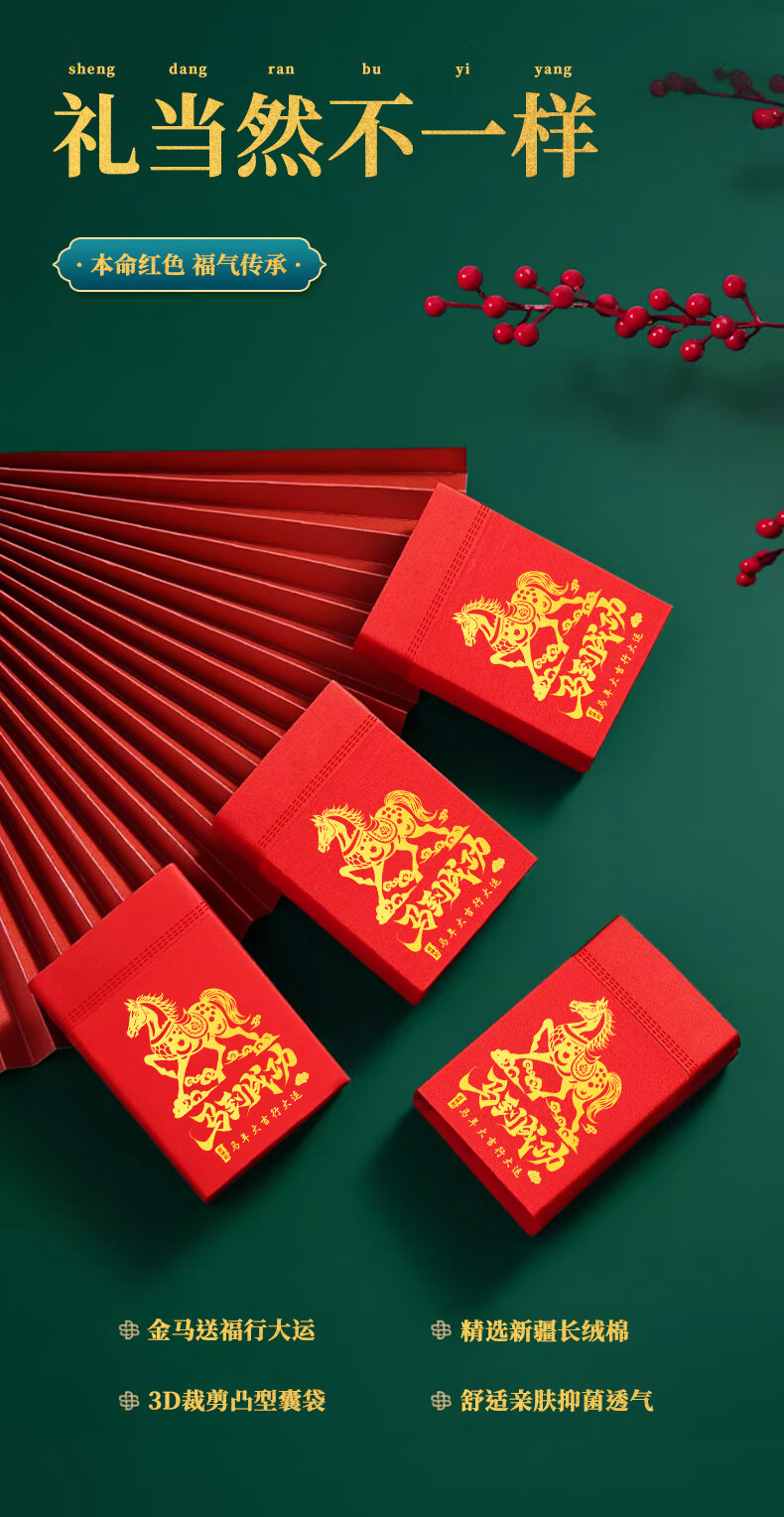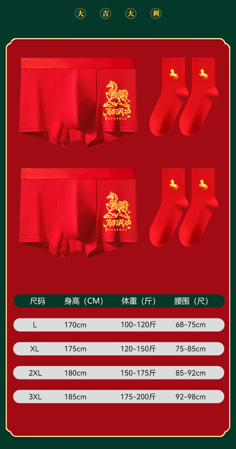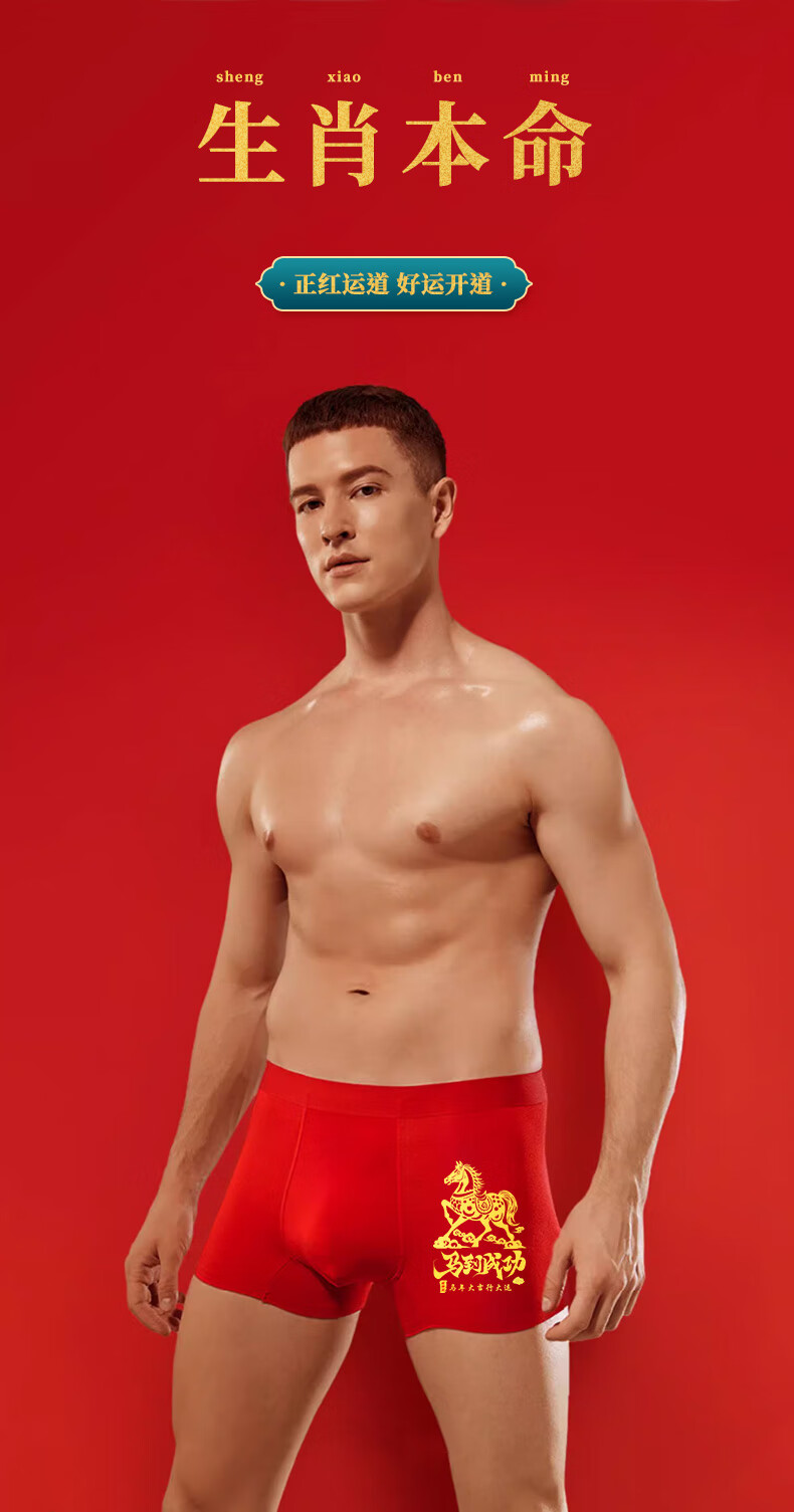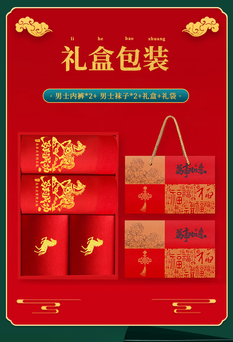 雅鹿【马年限定】本命年男士内裤男纯棉套装大红色礼物短裤衩袜子礼盒