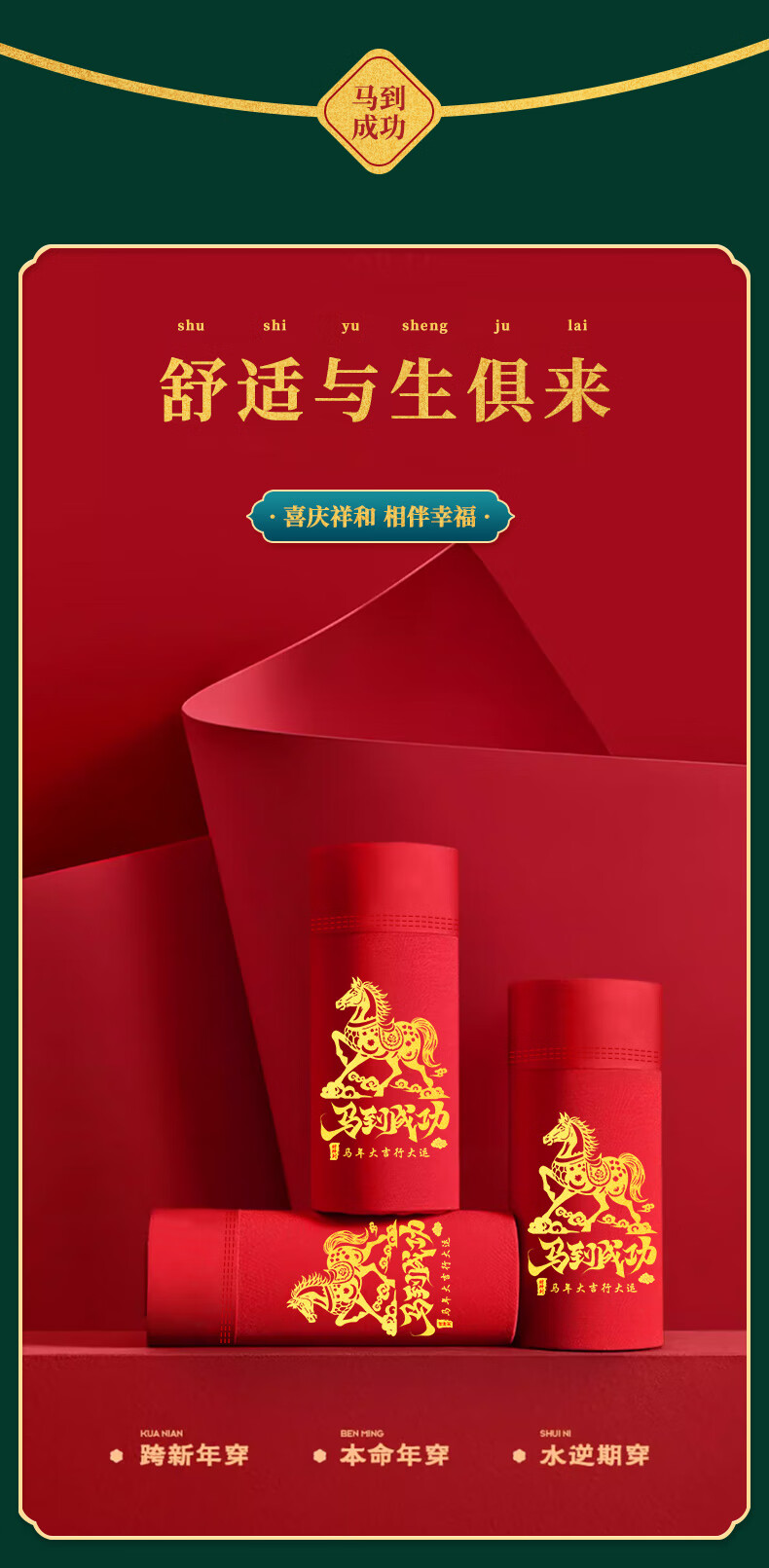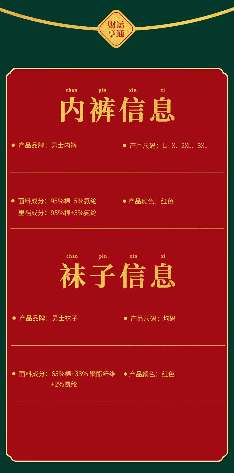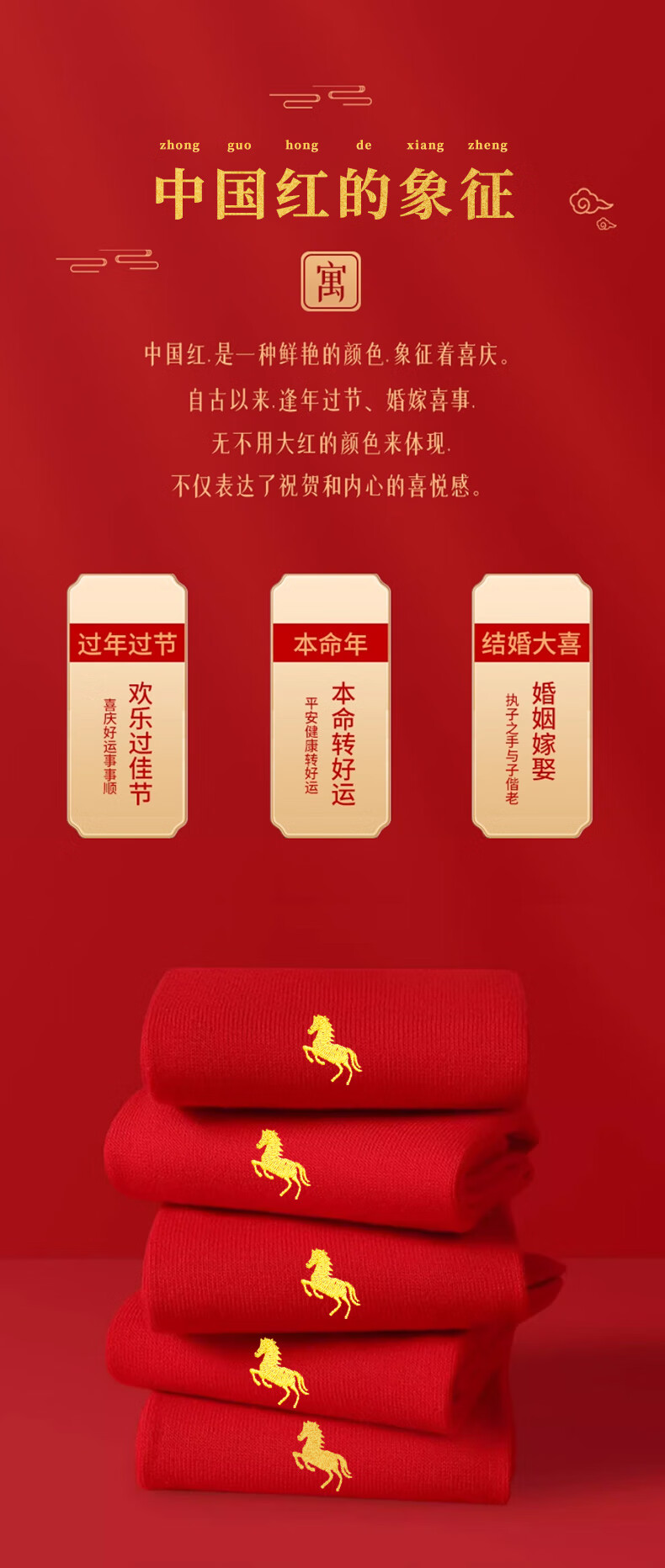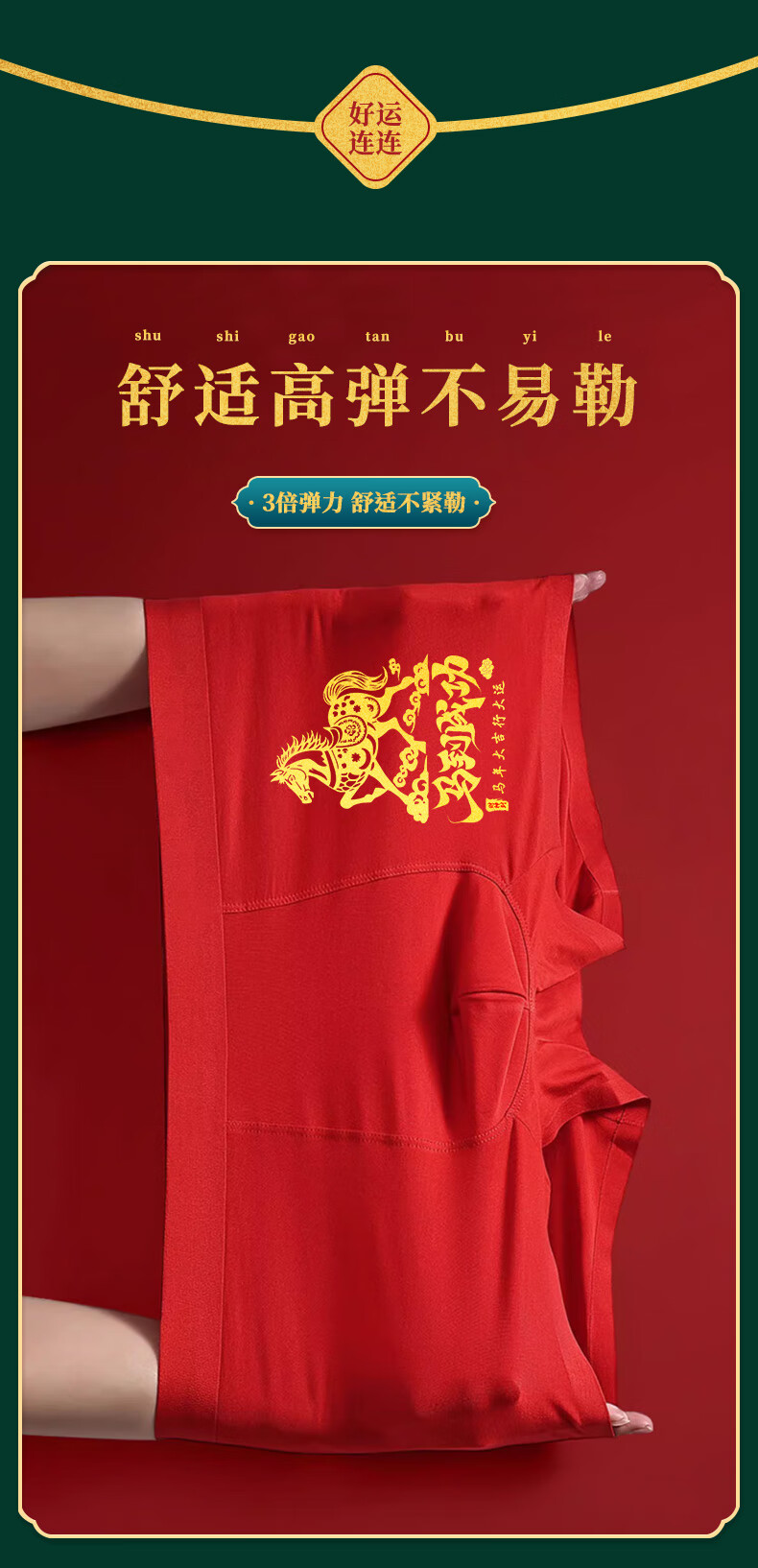 雅鹿【马年限定】本命年男士内裤男纯棉套装大红色礼物短裤衩袜子礼盒