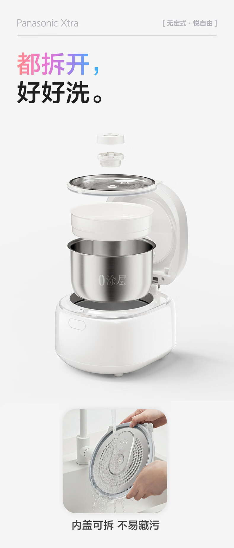 松下(Panasonic)【国家补贴】Xtra零零煲青春版电饭煲0涂层4-5人家用无涂层电饭锅不锈钢内胆煮饭4升容量SR-DKS151