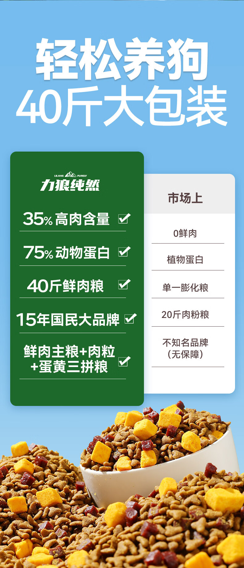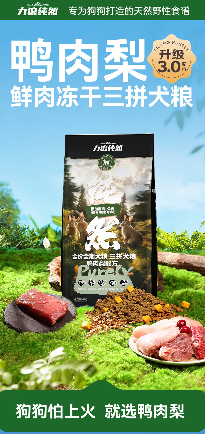 力狼狗粮 纯然金毛阿拉斯加40拉布拉多萨摩耶马犬德牧中大型犬粮 鸭肉梨|肉粒三拼|鲜肉犬粮40斤