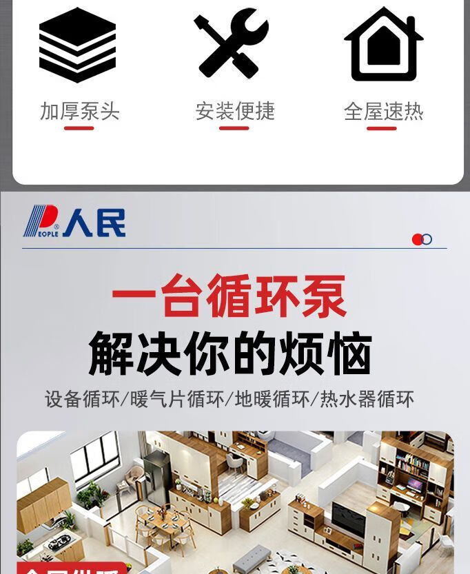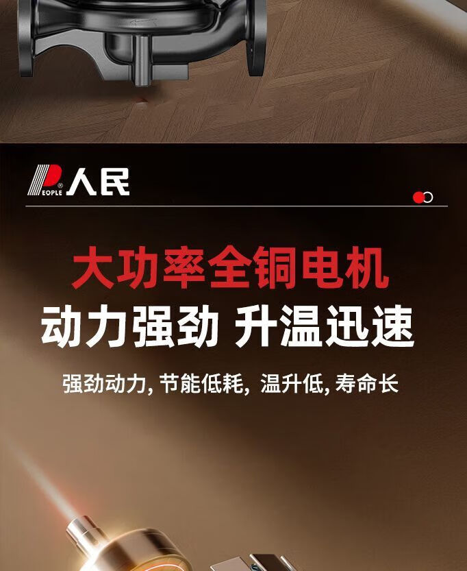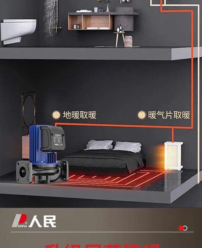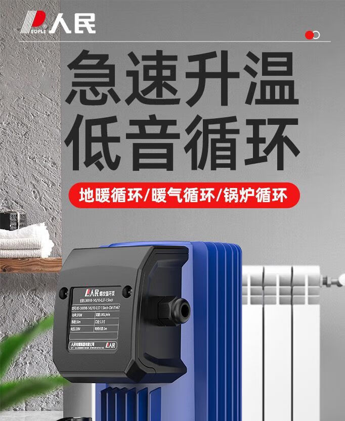 人民热水循环泵屏蔽泵家用暖气锅炉地暖管道泵水泵220v大功率 循环泵圆法兰款370W-1.5寸