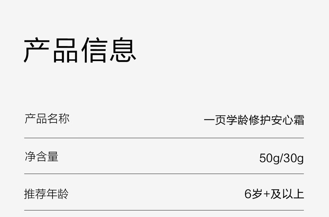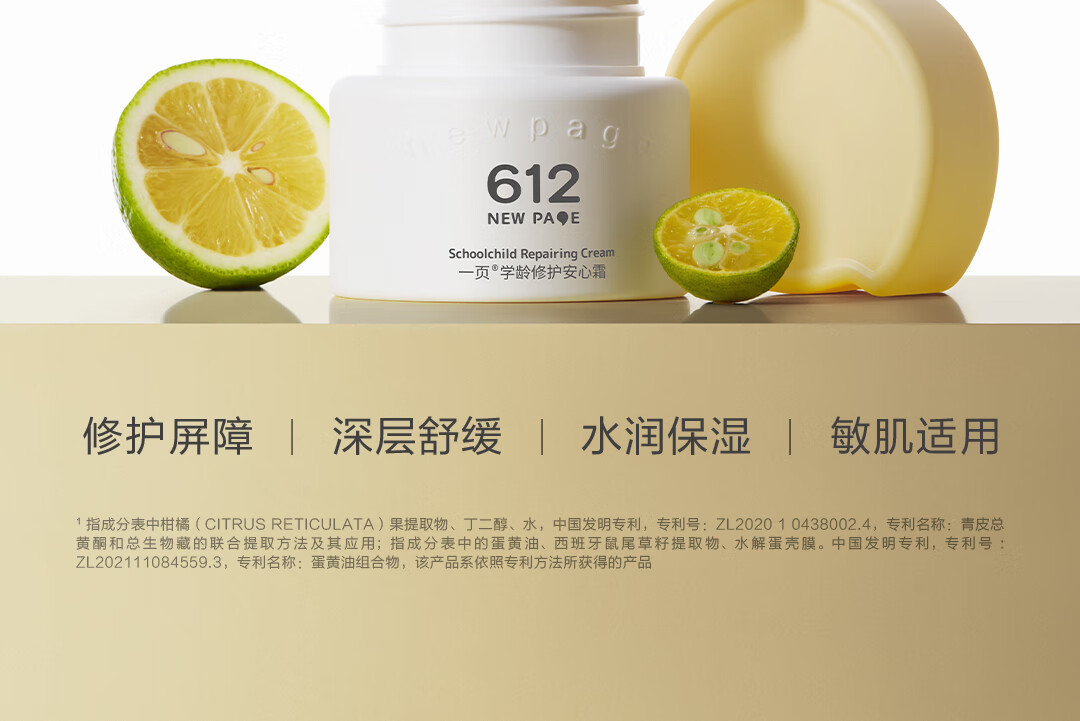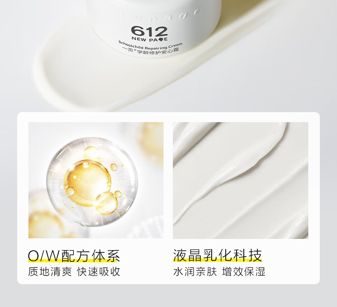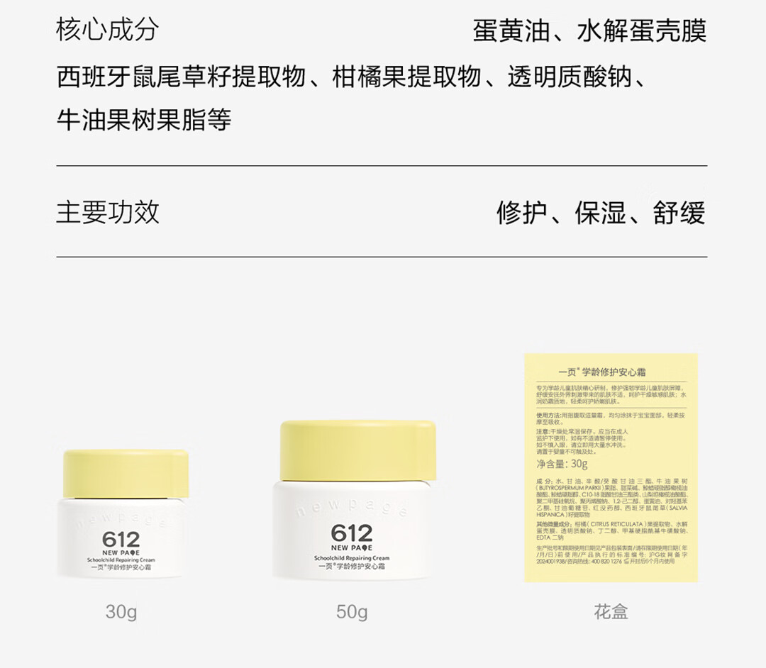 一页612学龄修护保湿安心霜50g青少年护肤小学生保湿补水儿童面霜