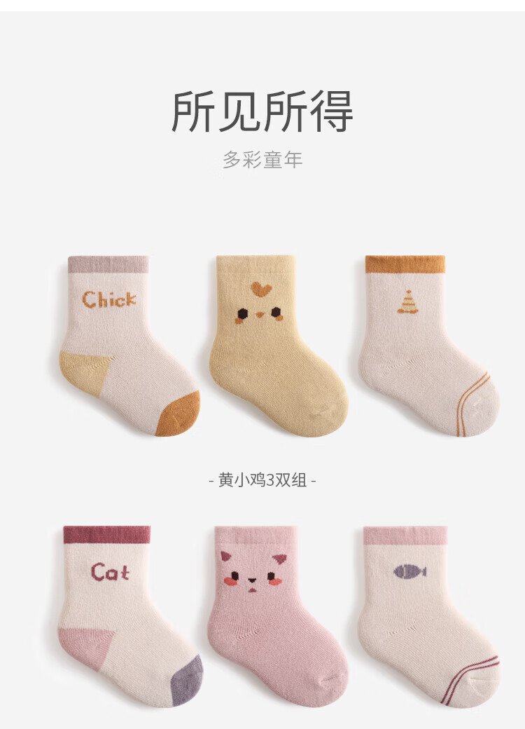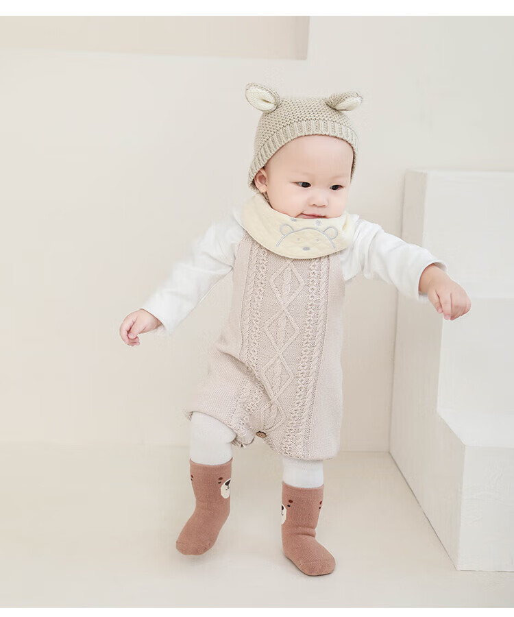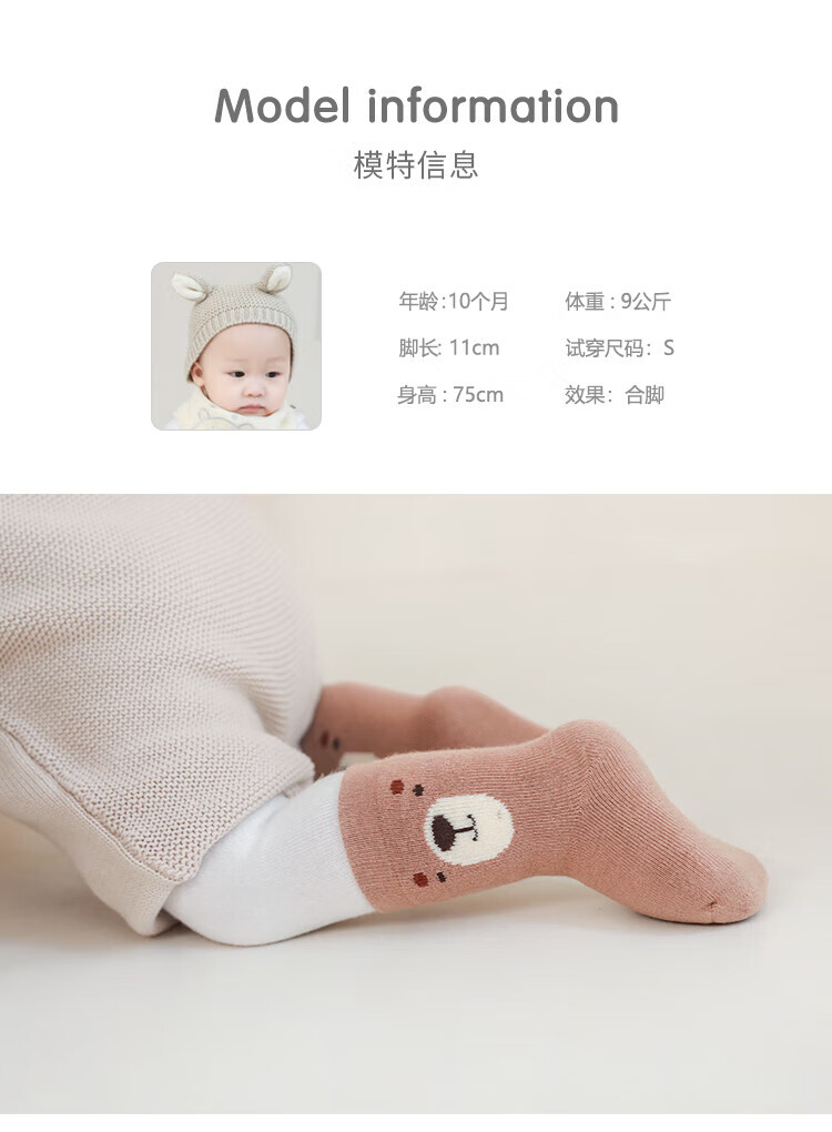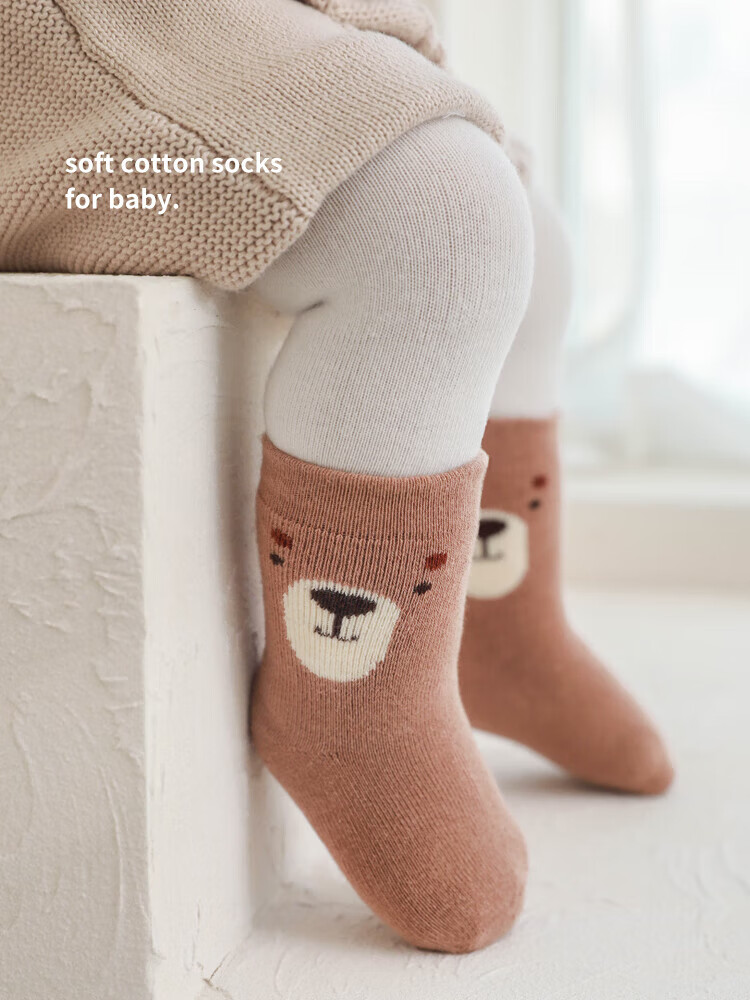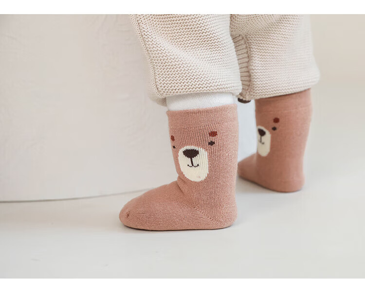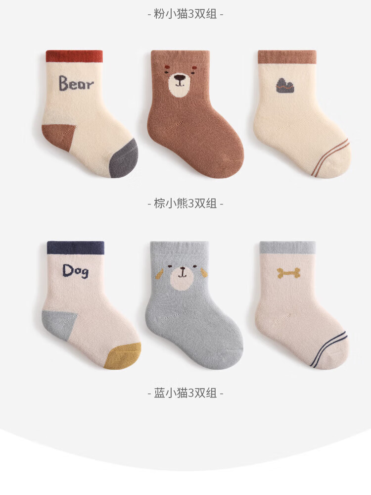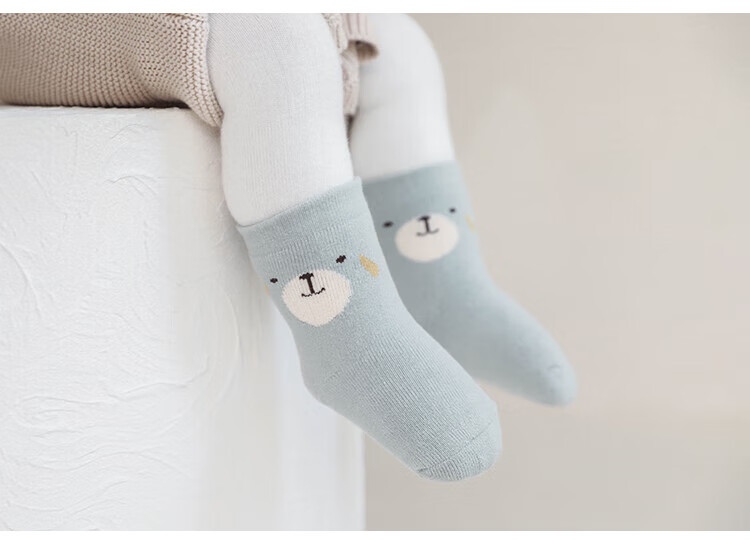 贝肽斯婴儿袜子春秋宝宝新生幼儿男女儿童卡通中筒棉袜 蓝考拉-3双-秋冬款-毛圈加厚 0-6月 【适合脚长6-8cm】