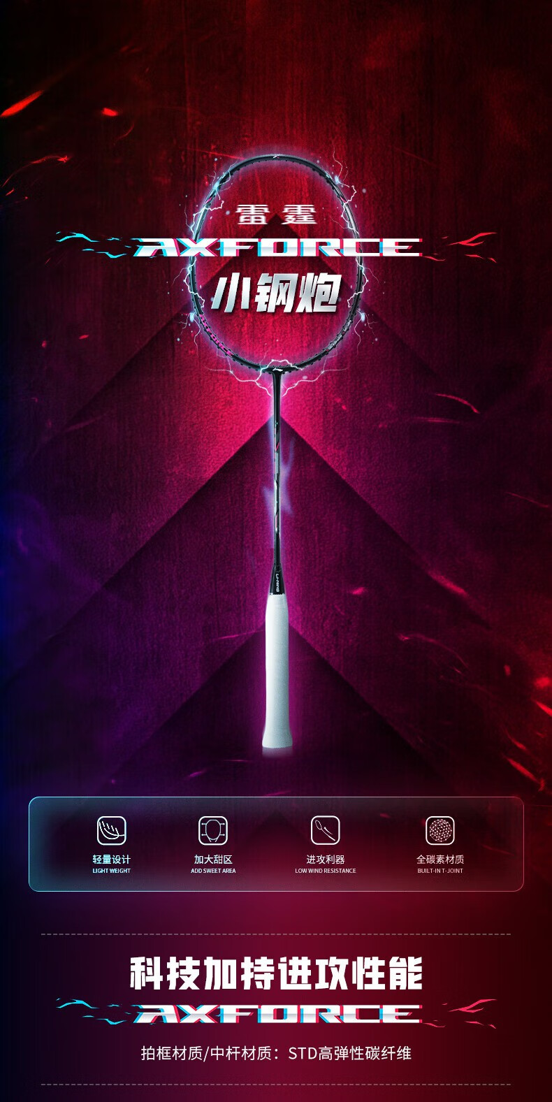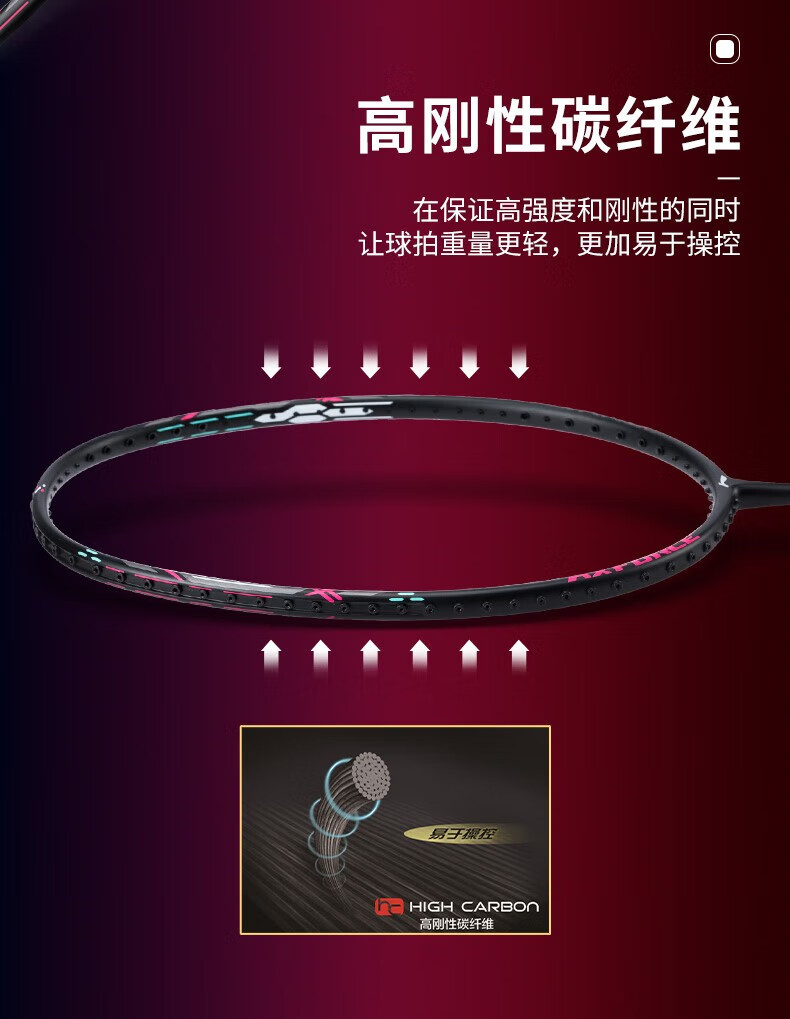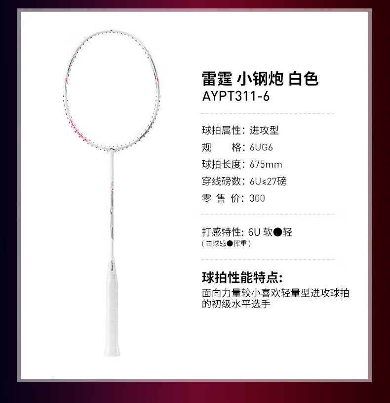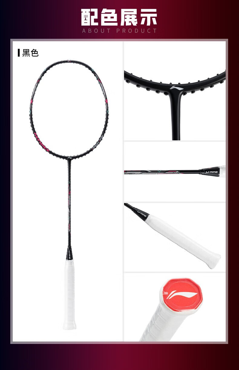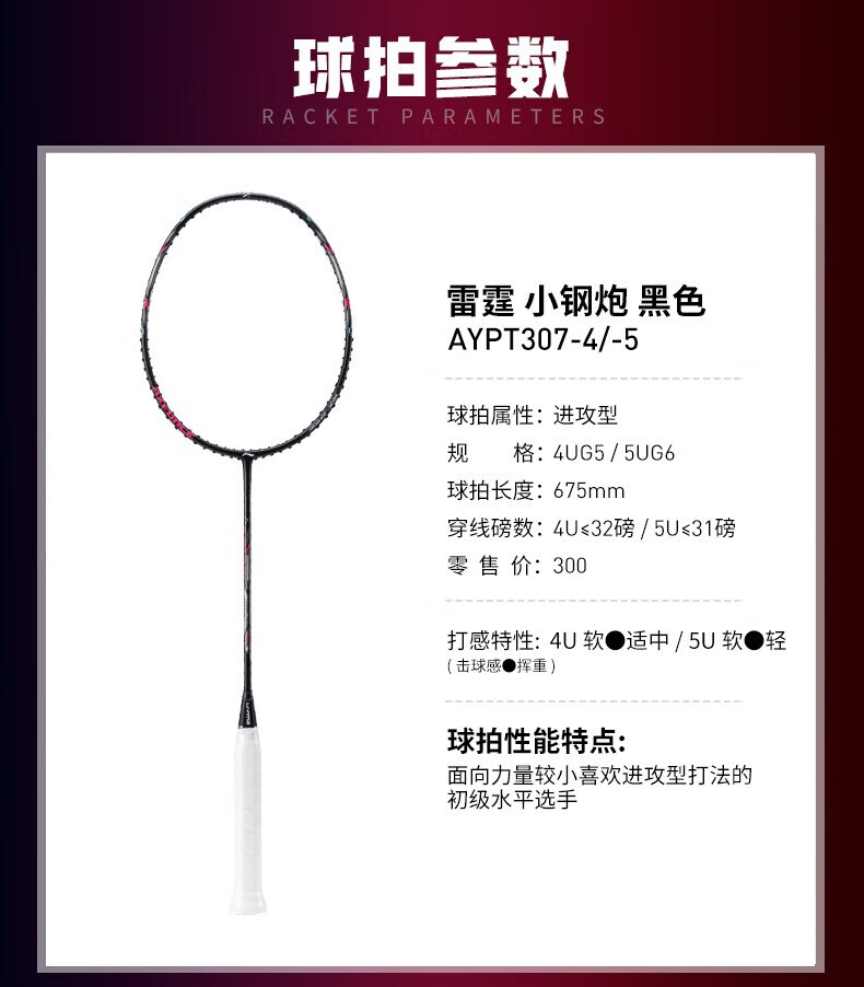 李宁(LI-NING)羽毛球拍单拍 初学者新手碳纤维超轻高磅 入门级耐打雷霆小钢炮 雷霆小钢炮 黑色4U+手胶+拍套+羽线+球*3 默认穿线24磅左右/联系客服定制磅数