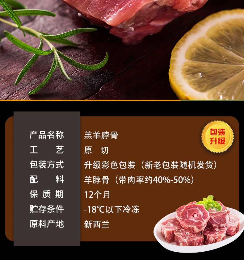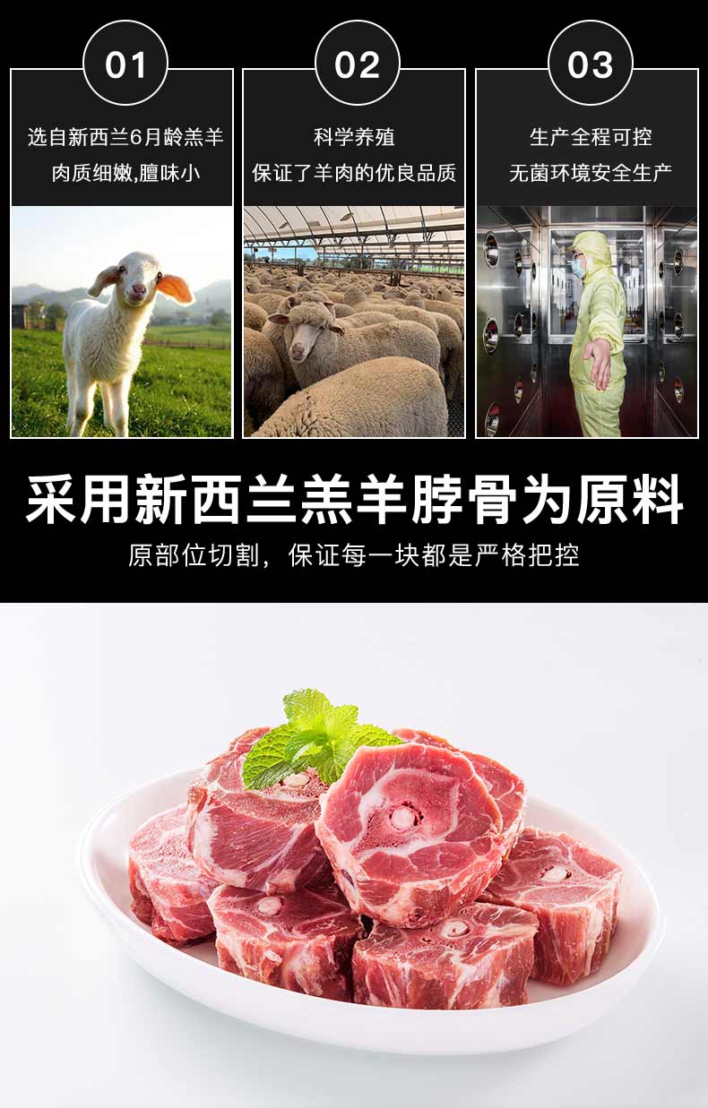 天顺源新西兰原切满肉羔羊脖骨羊蝎子 2斤 年货炖煮食材春节也送货