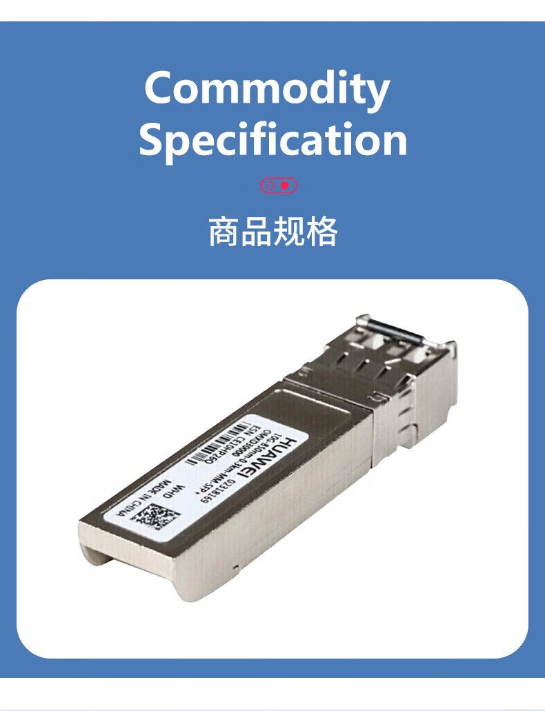 华为(HUAWEI)OMXD30000 万兆多模光模块-SFP+-10G交换机双LC接口 (850nm,0.3km,LC) 搭配双芯光纤