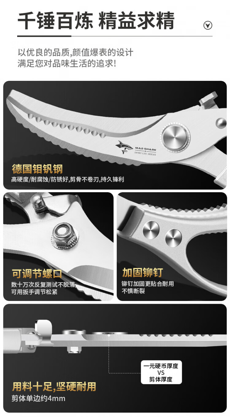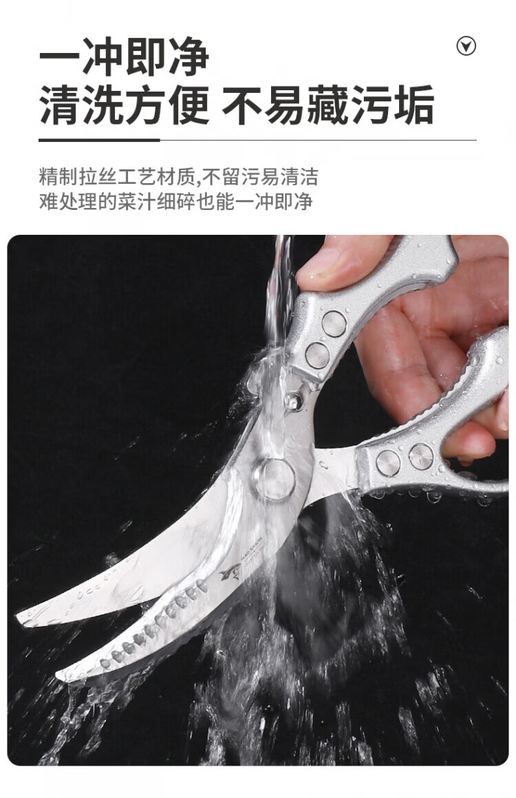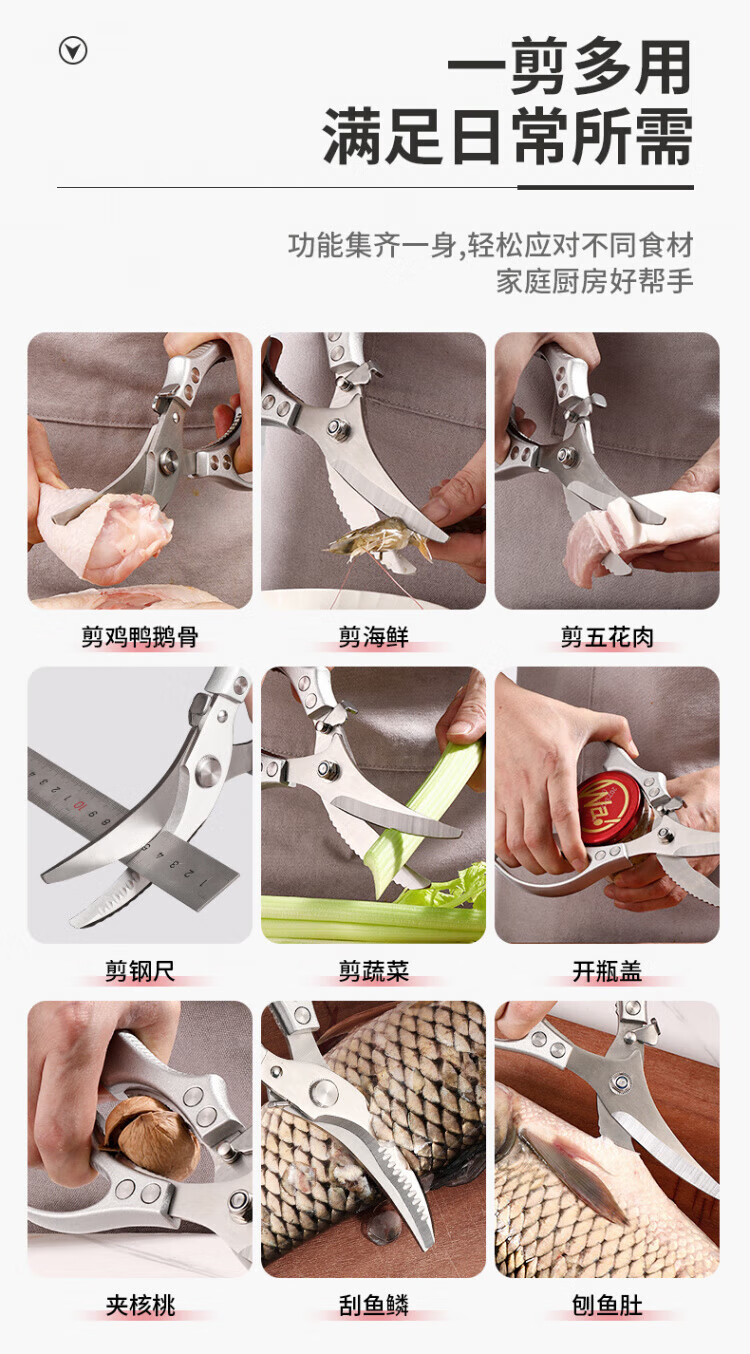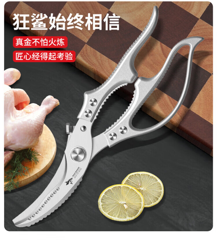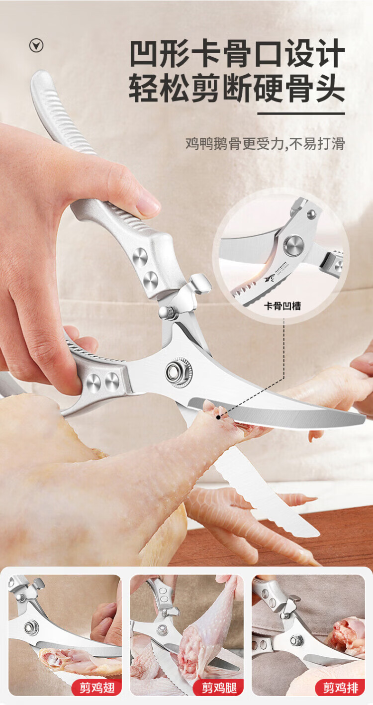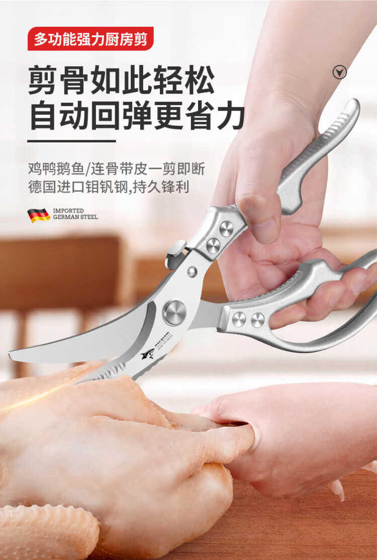 WCZ德国厨房剪刀食品级强力剪鸡鸭鹅骨头专用多功能不锈钢食物剪子 德国强力鸡骨剪(银)