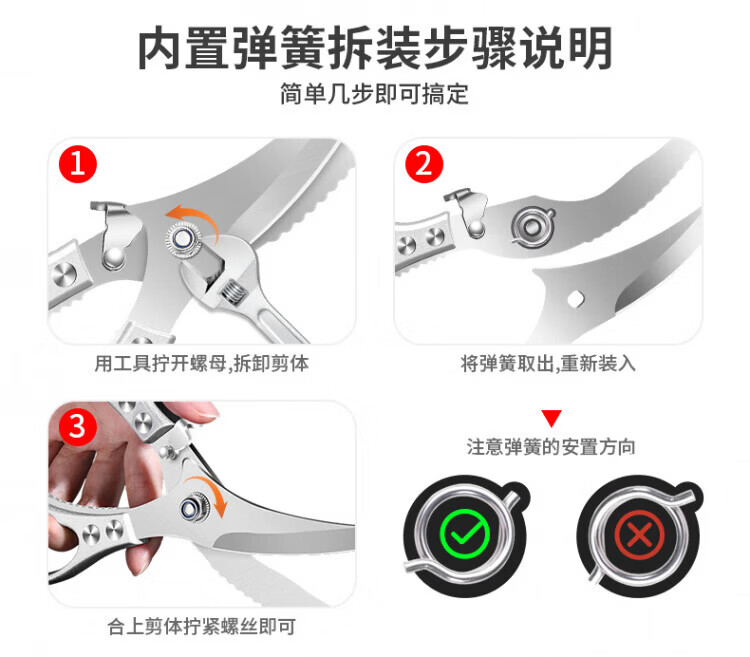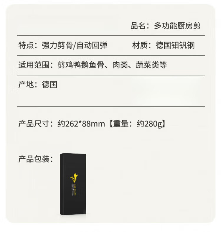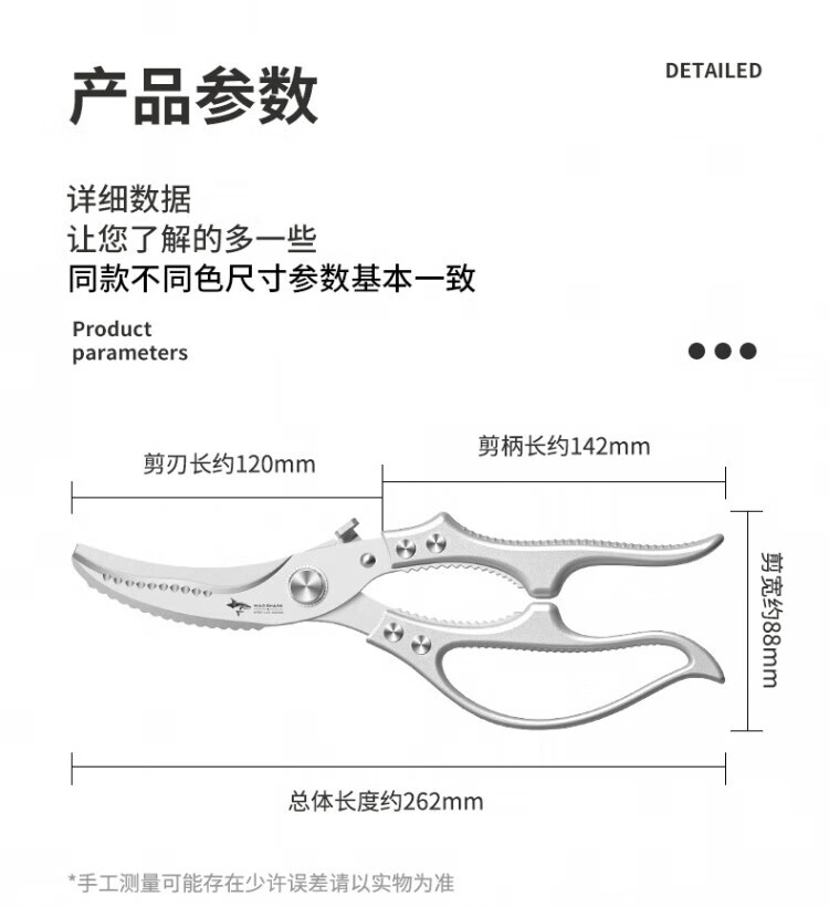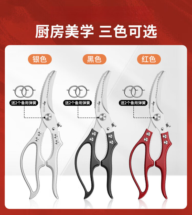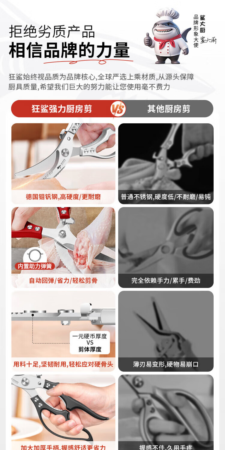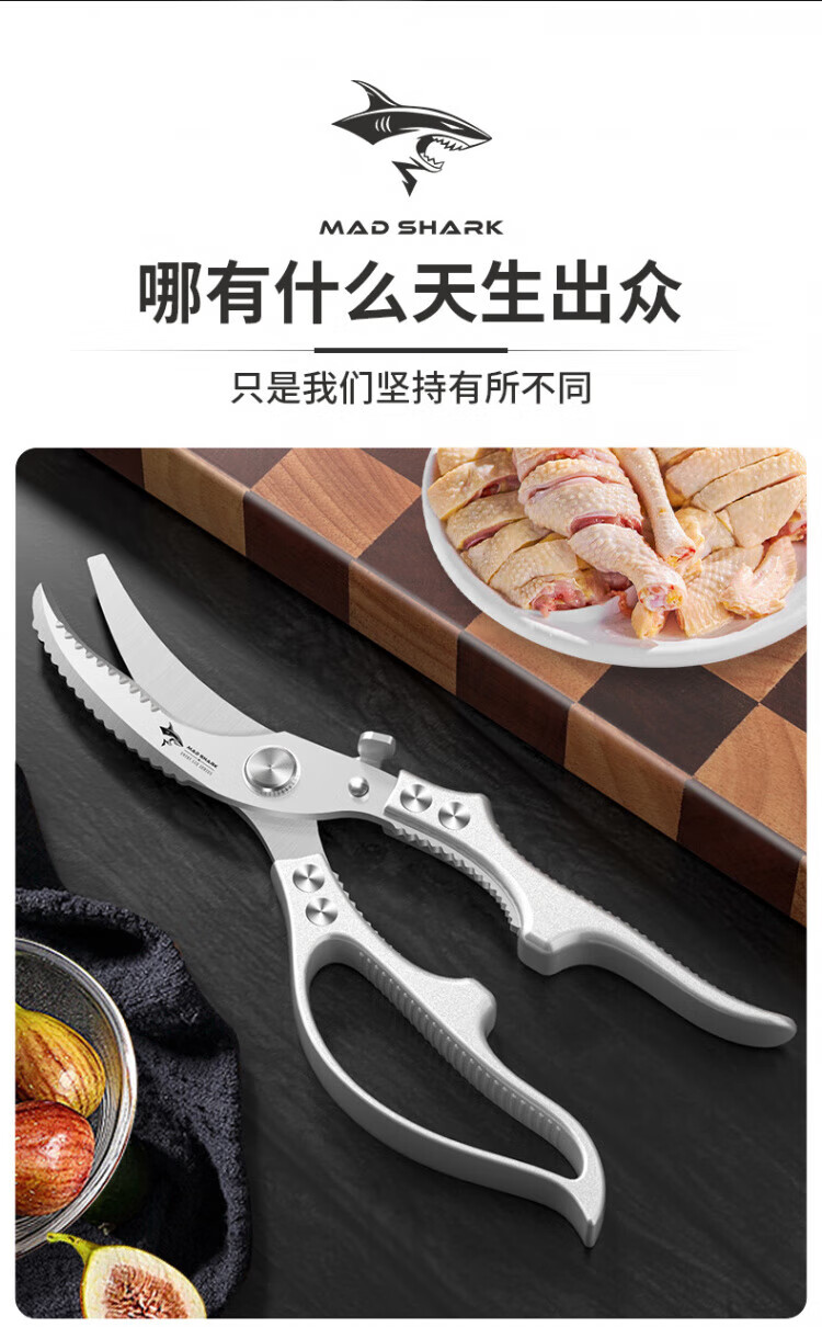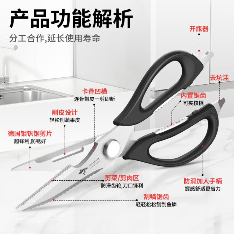 WCZ德国厨房剪刀食品级强力剪鸡鸭鹅骨头专用多功能不锈钢食物剪子 德国强力鸡骨剪(银)