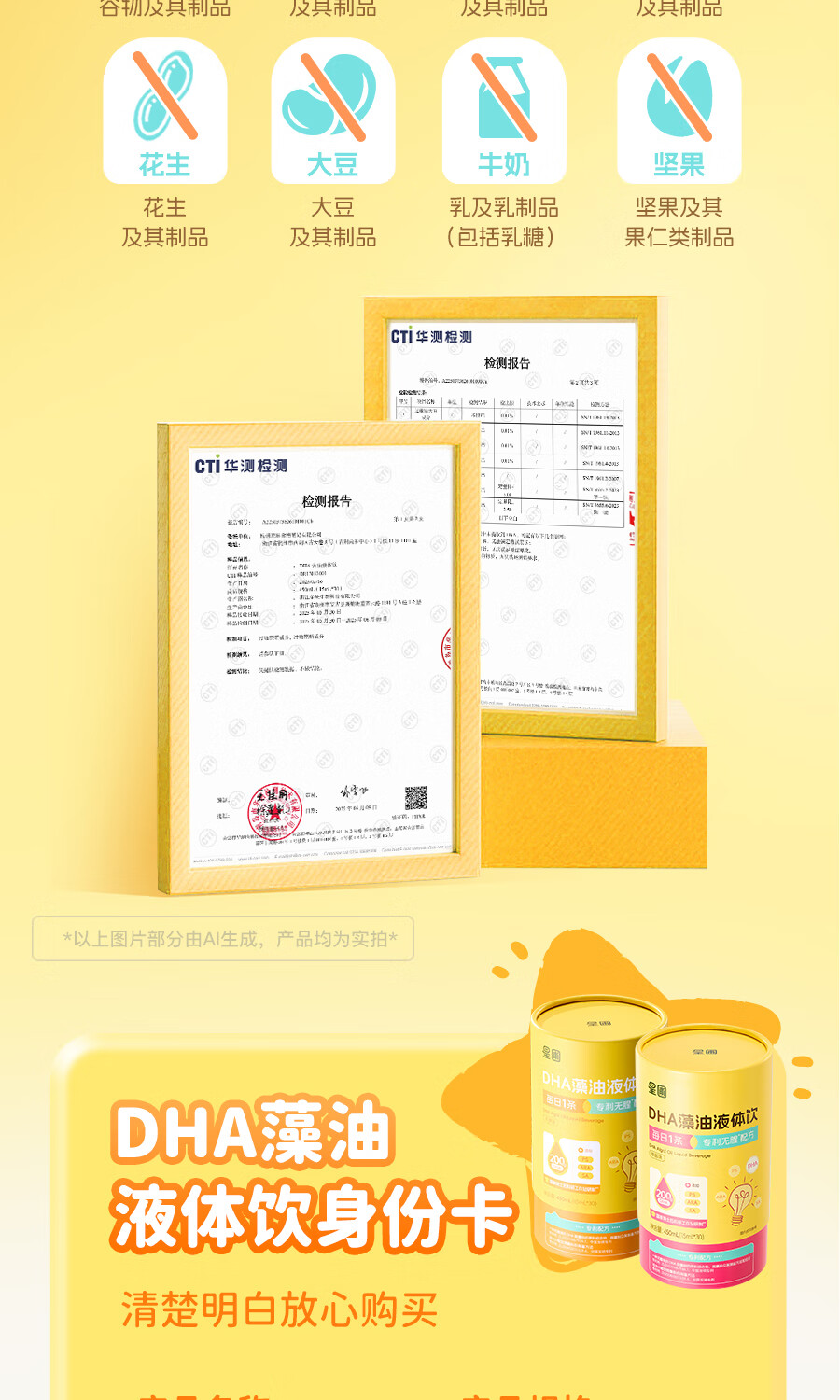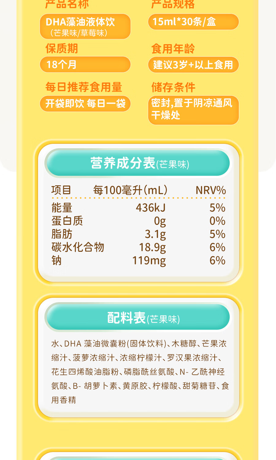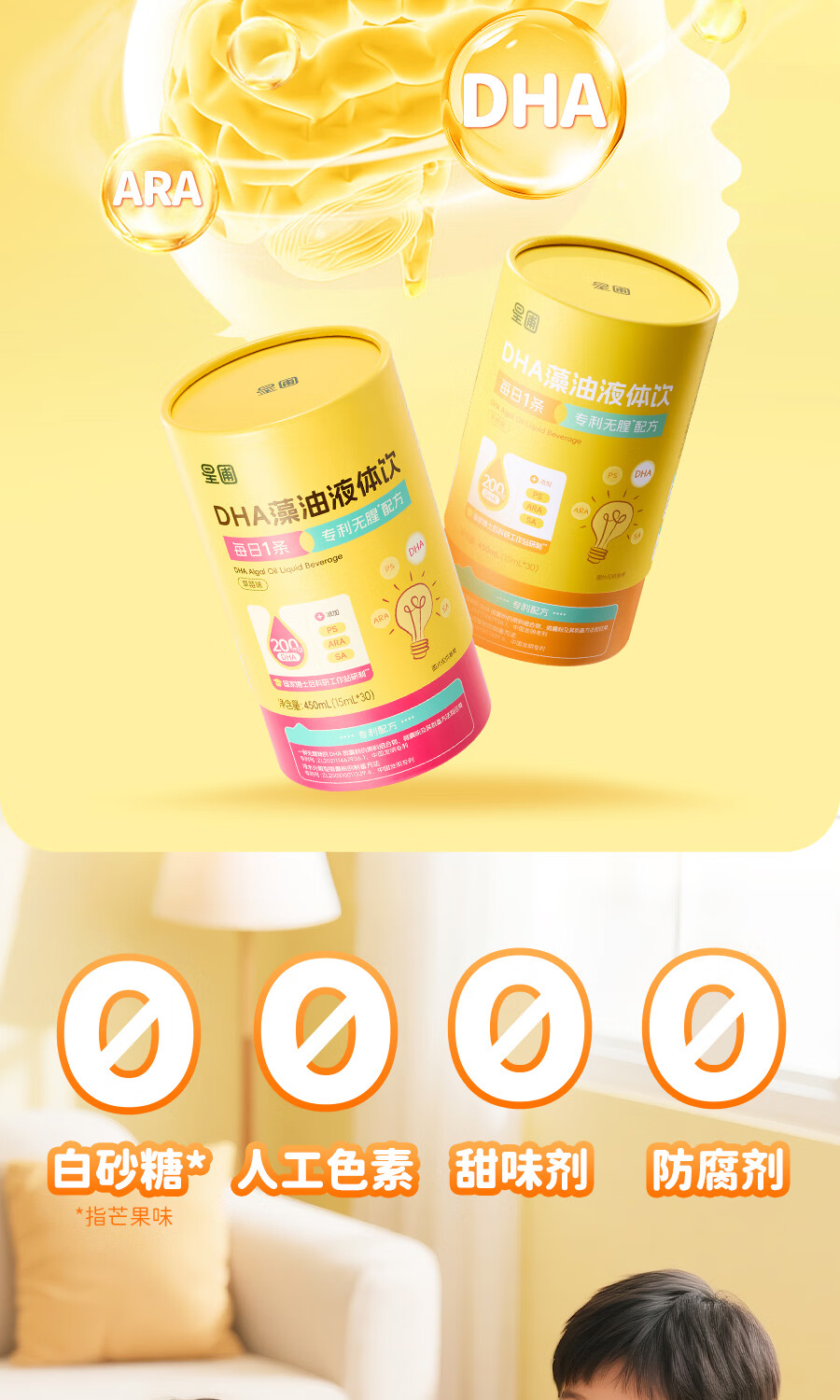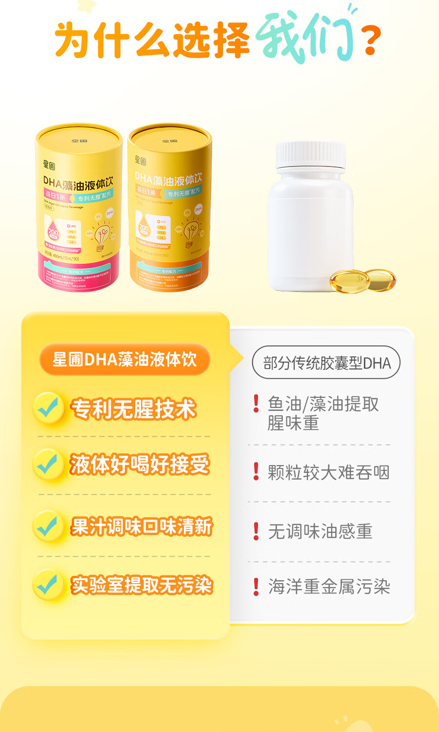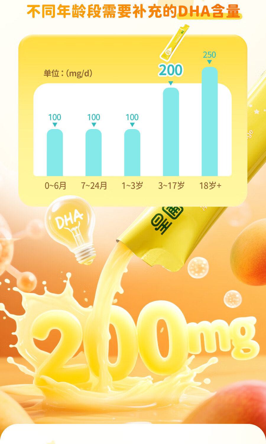 星圃DHA藻油液体饮无腥技术青少年学生专用儿童草莓饮料200mgDHA/条