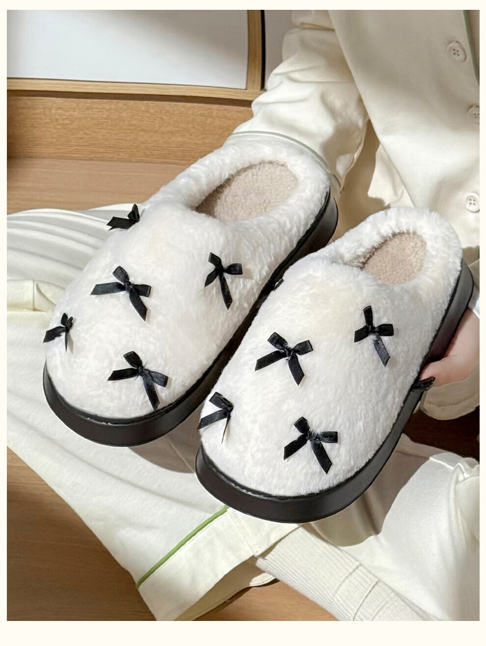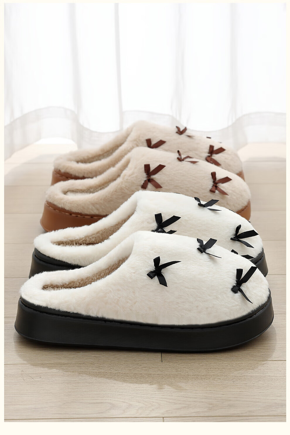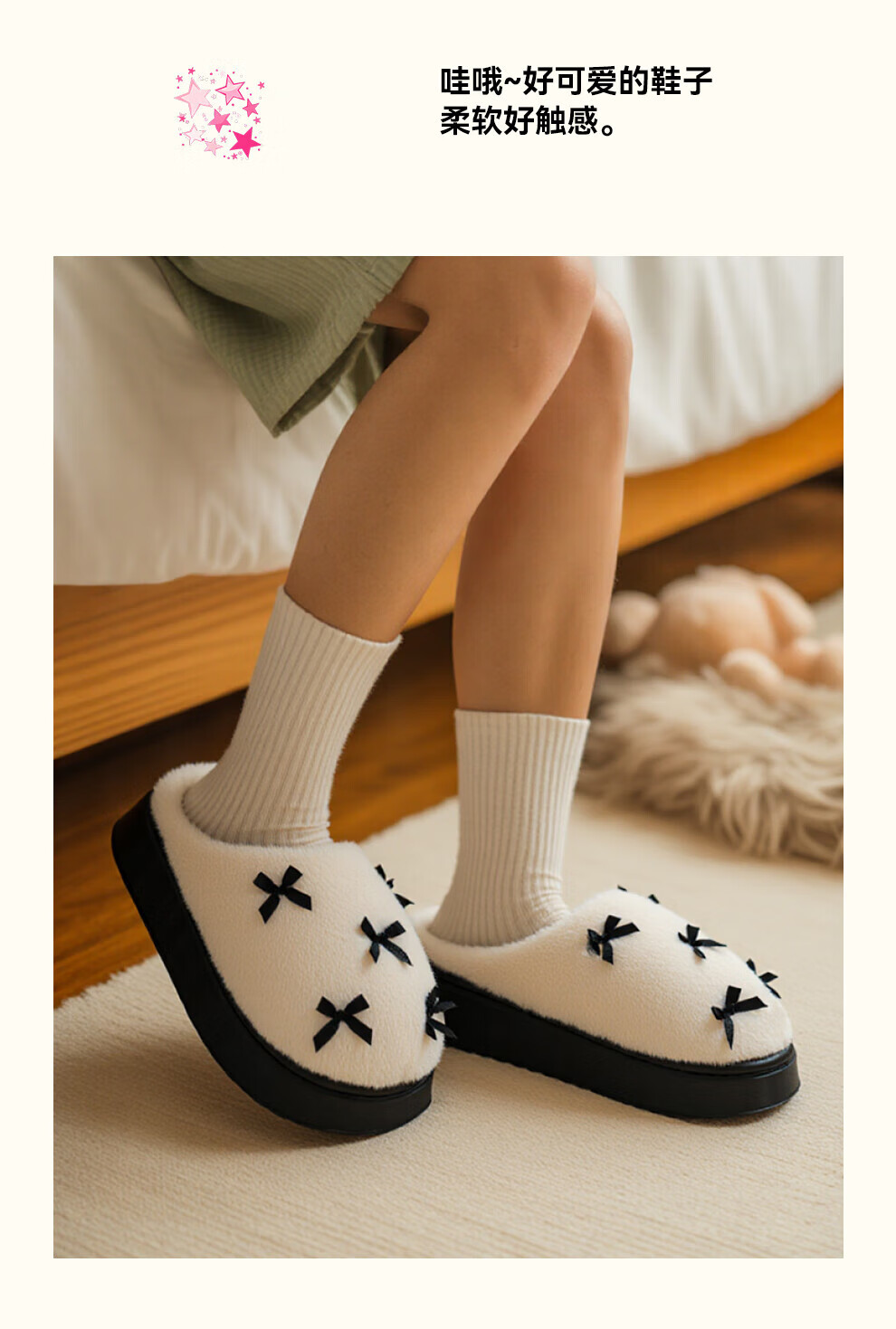 FZT蝴蝶结棉拖鞋女款2025新款冬季室内居家厚底防滑保暖棉拖鞋外穿女 卡其 36-37 标准码