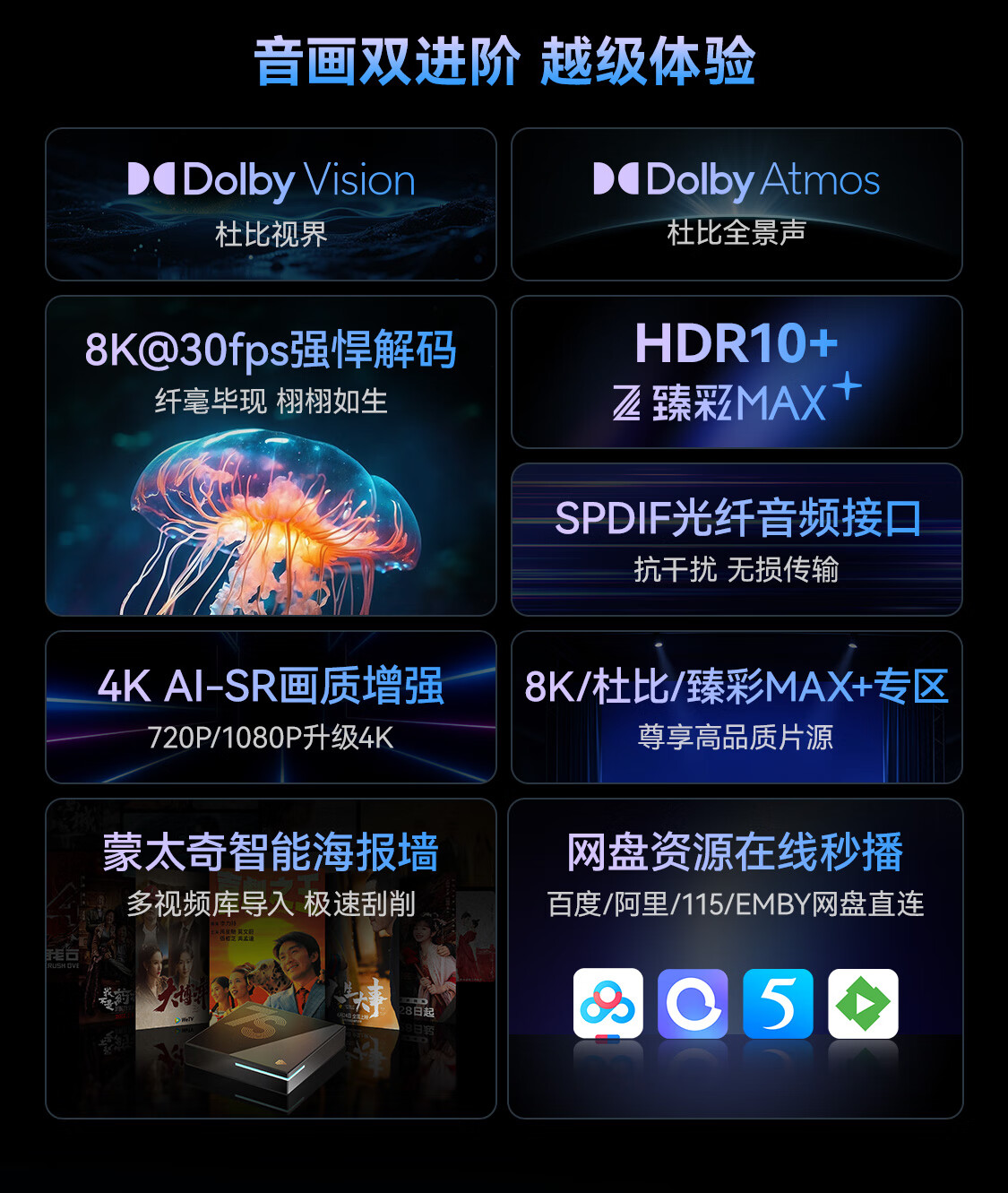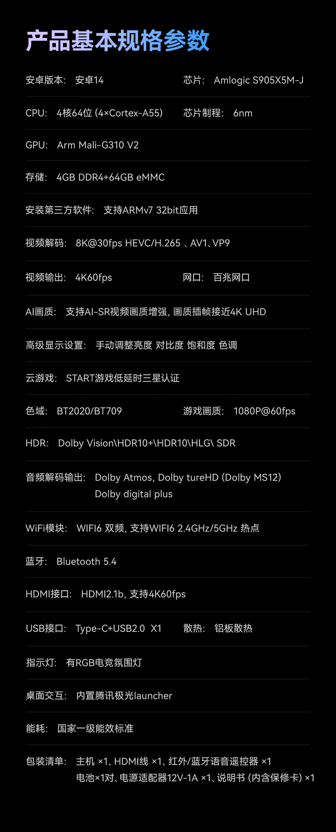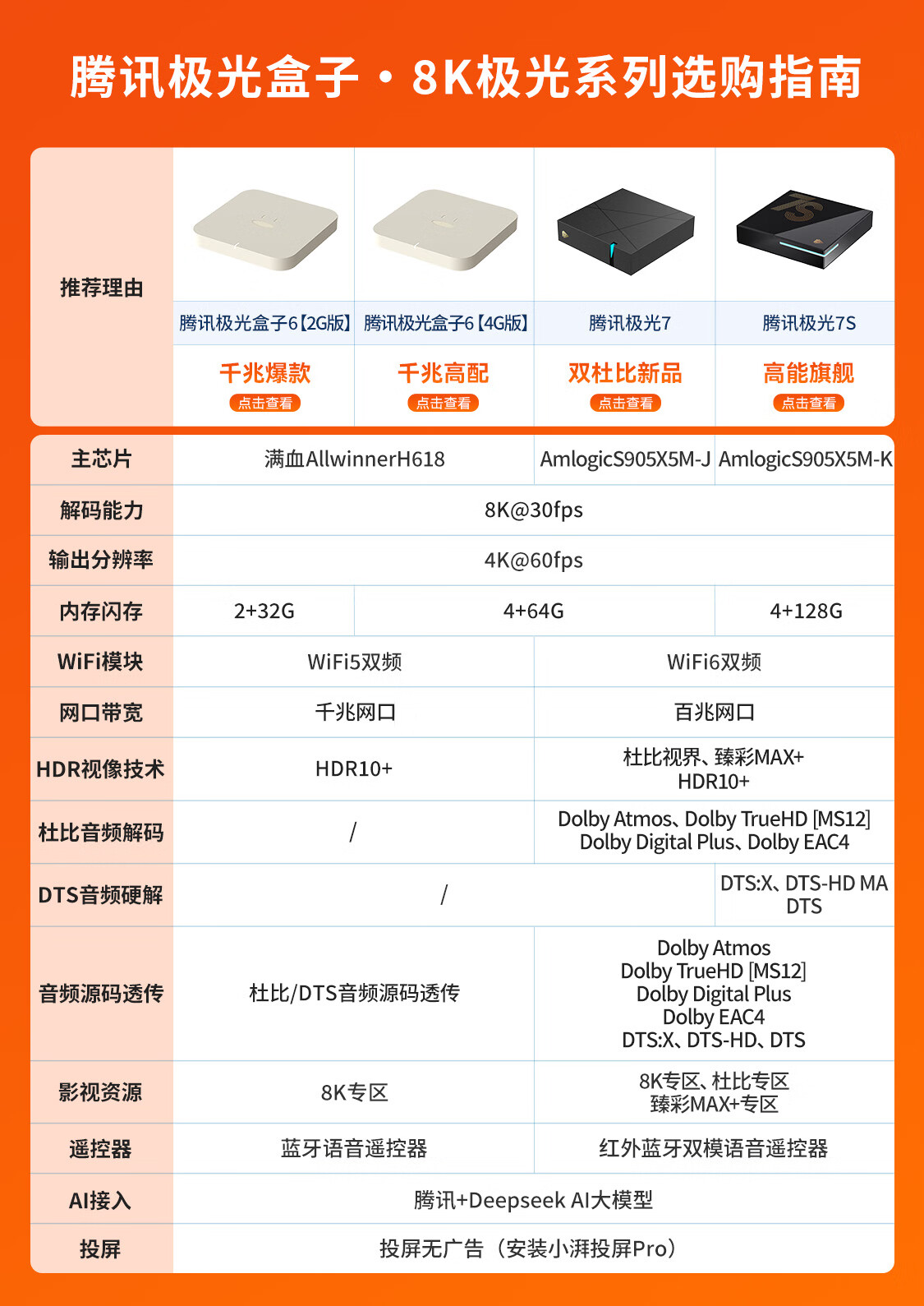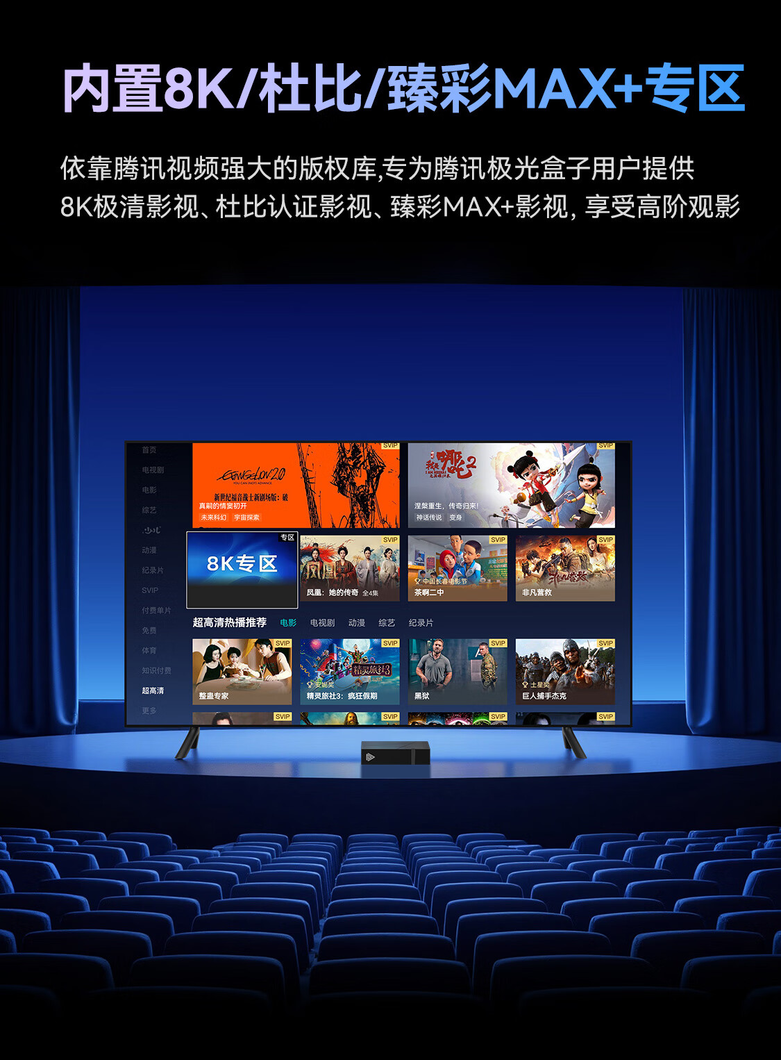 腾讯极光盒子7 8K高清电视盒子 智能网络电视机顶盒 杜比视界全景声 4+64G 双频WiFi6 START云游戏