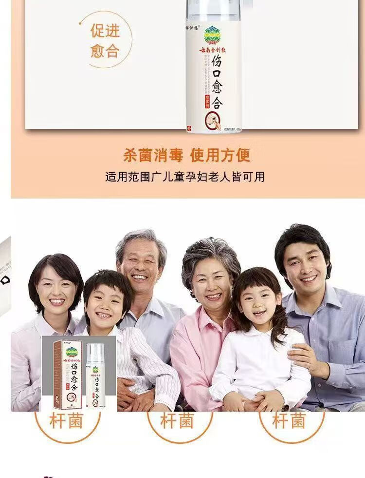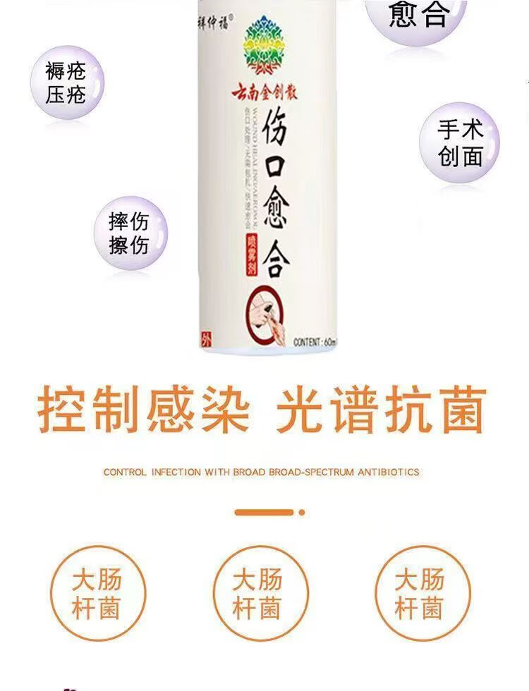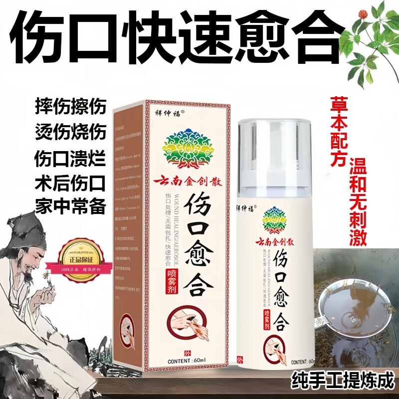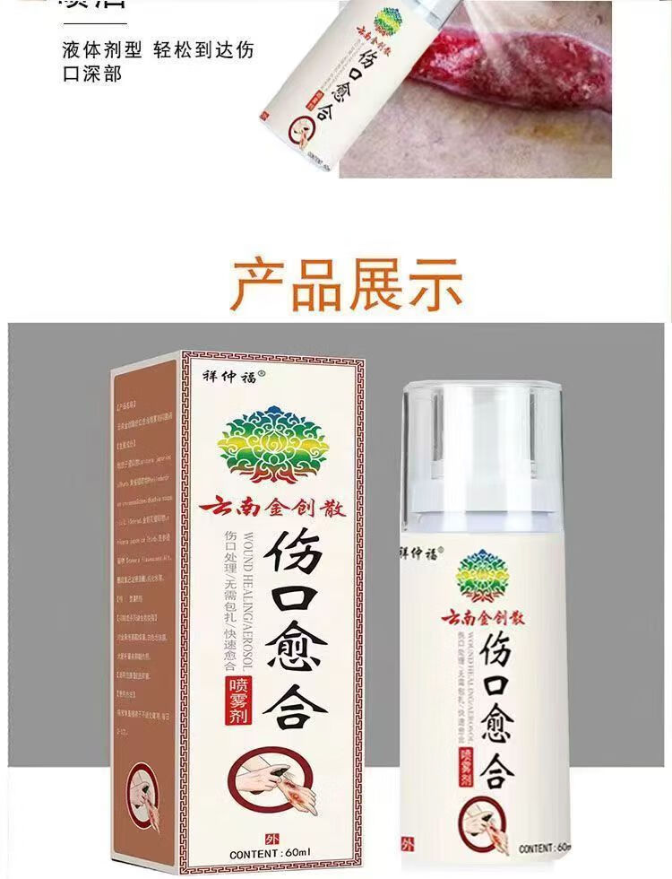 云南金创散伤口愈合药喷雾剂皮肤损伤修复快速结痂褥疮侧切手术后烧烫伤创面敷料家庭药箱急救包 【伤口快速愈合药喷雾剂】5瓶60ml-实惠装