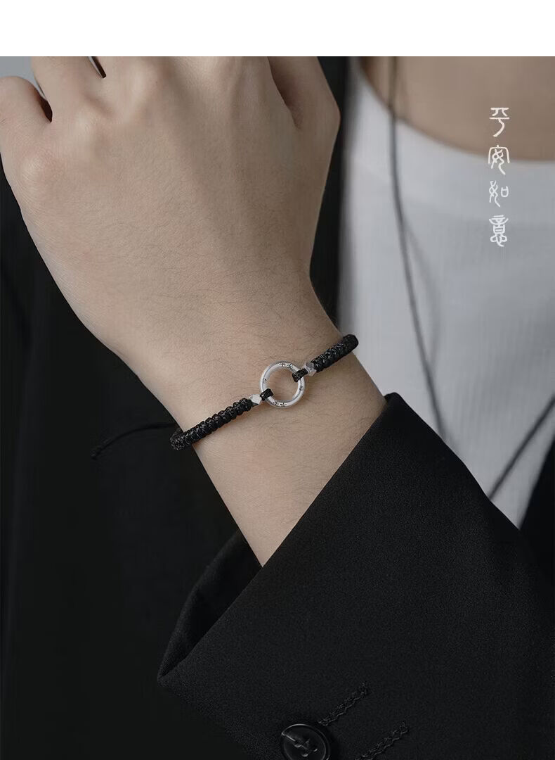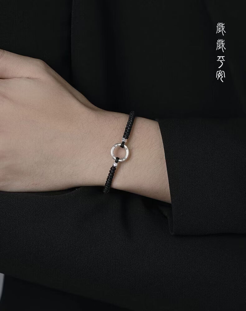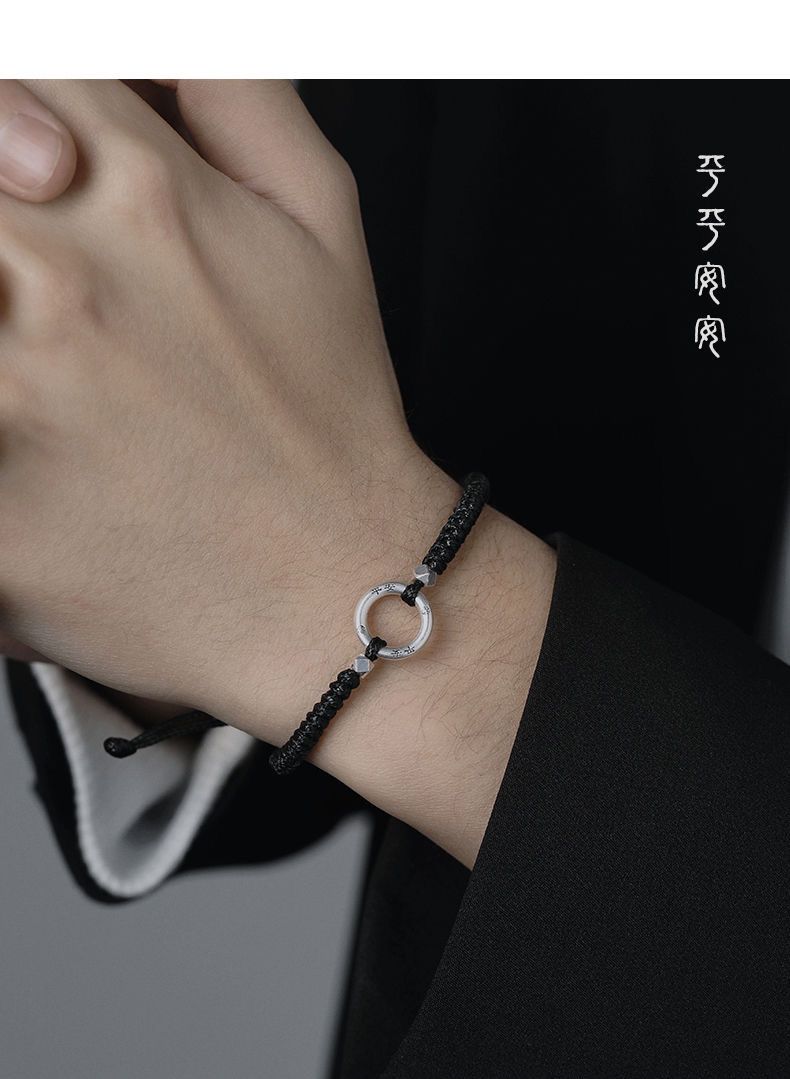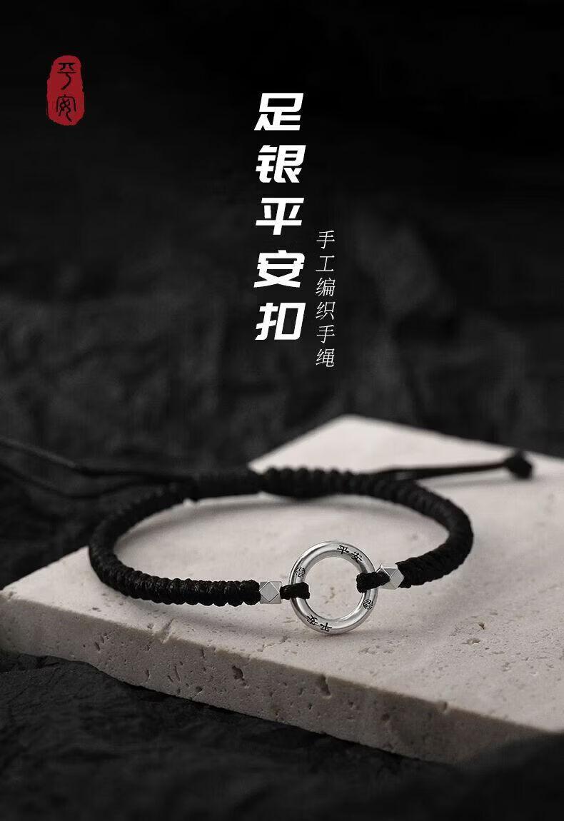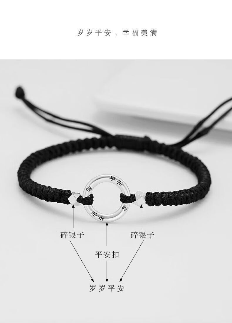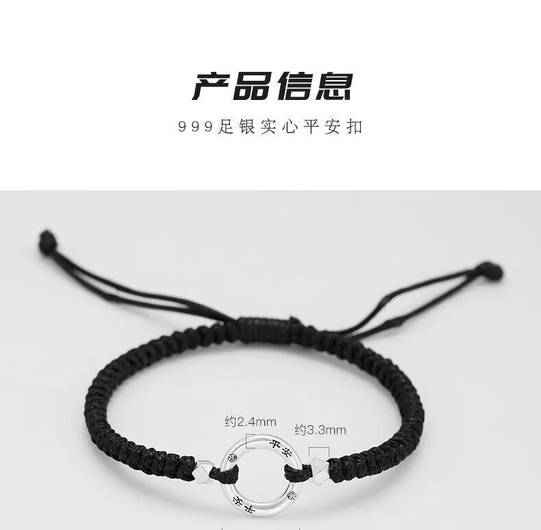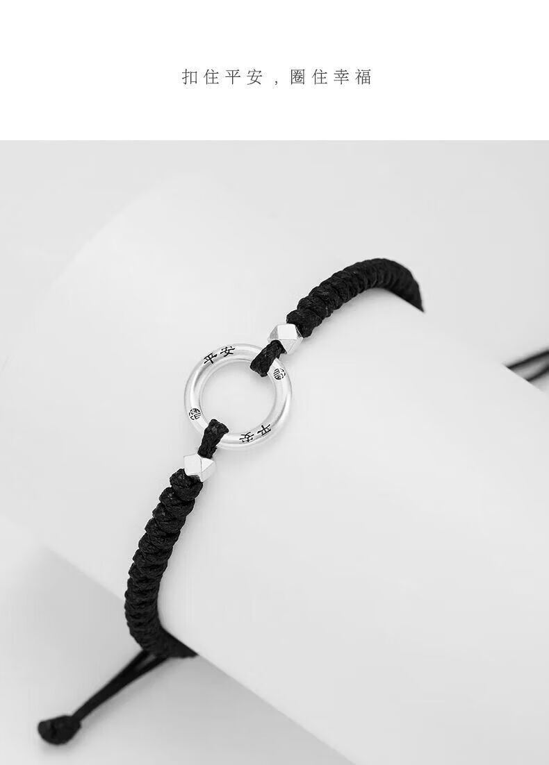 CHD纯银平安扣手链男女 999足银实心情侣编织手绳一对碎银子银饰男士 岁岁平安扣-男女同款(红绳)