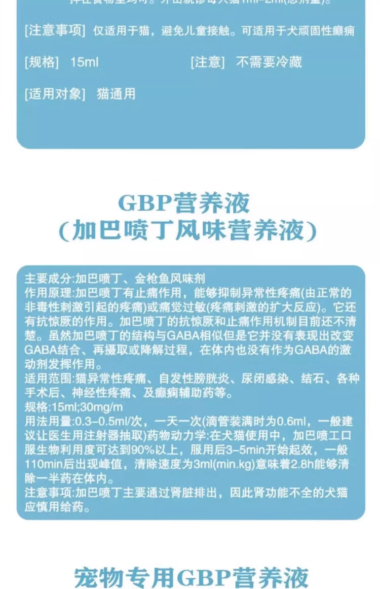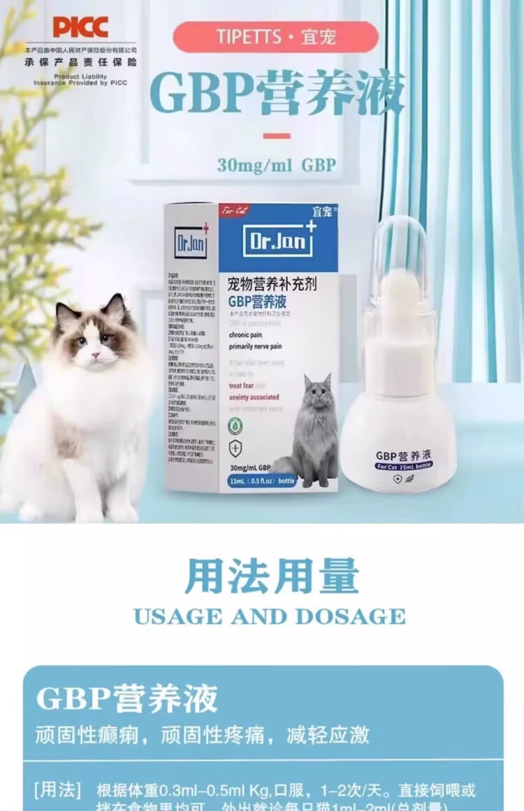 宜宠【顺丰当日发】加巴喷丁猫咪GBP营养液猫咪应激抵抗防应激反应异 GBP营养液20ml/瓶 顺丰快递-当日发