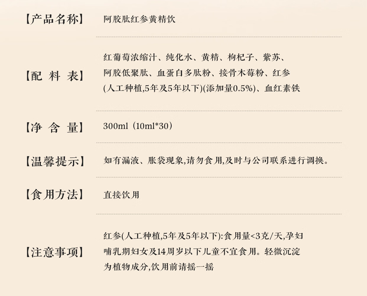 嘉膳之和红参饮气通血足膳和红参饮膳膳红参饮好气色嘉膳红参饮亮肤色 单盒体验装 300ml*1盒