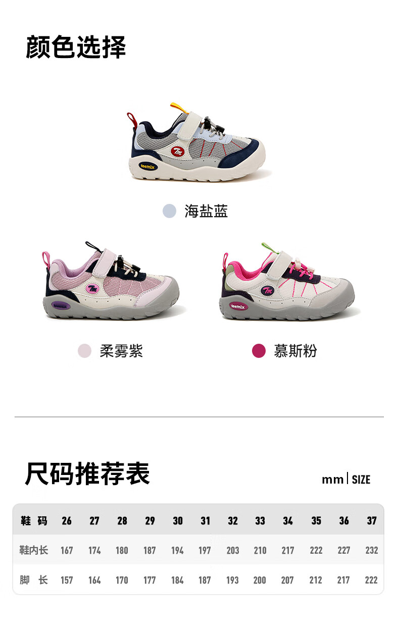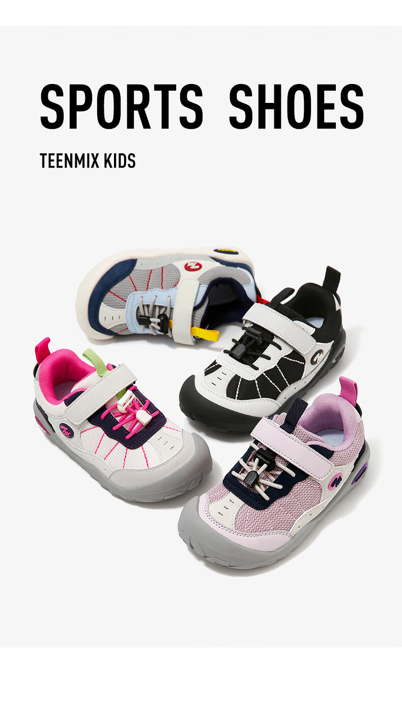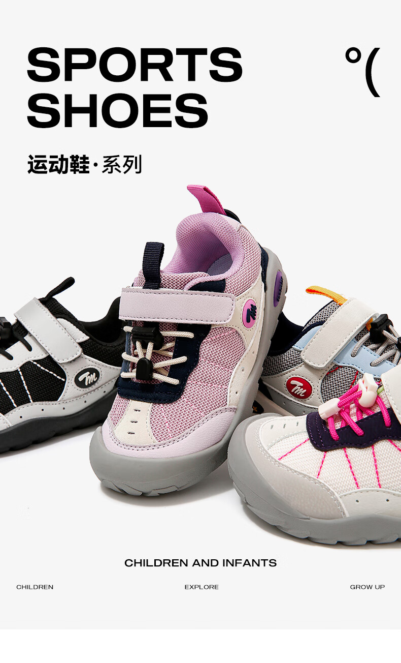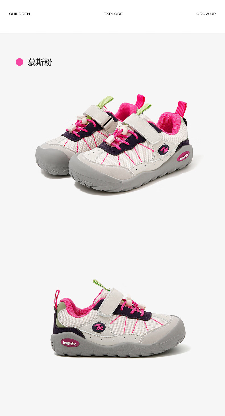 天美意2025秋冬季新款童鞋魔术贴运动跑步鞋中大童男女宝宝鞋子潮 慕斯粉 30