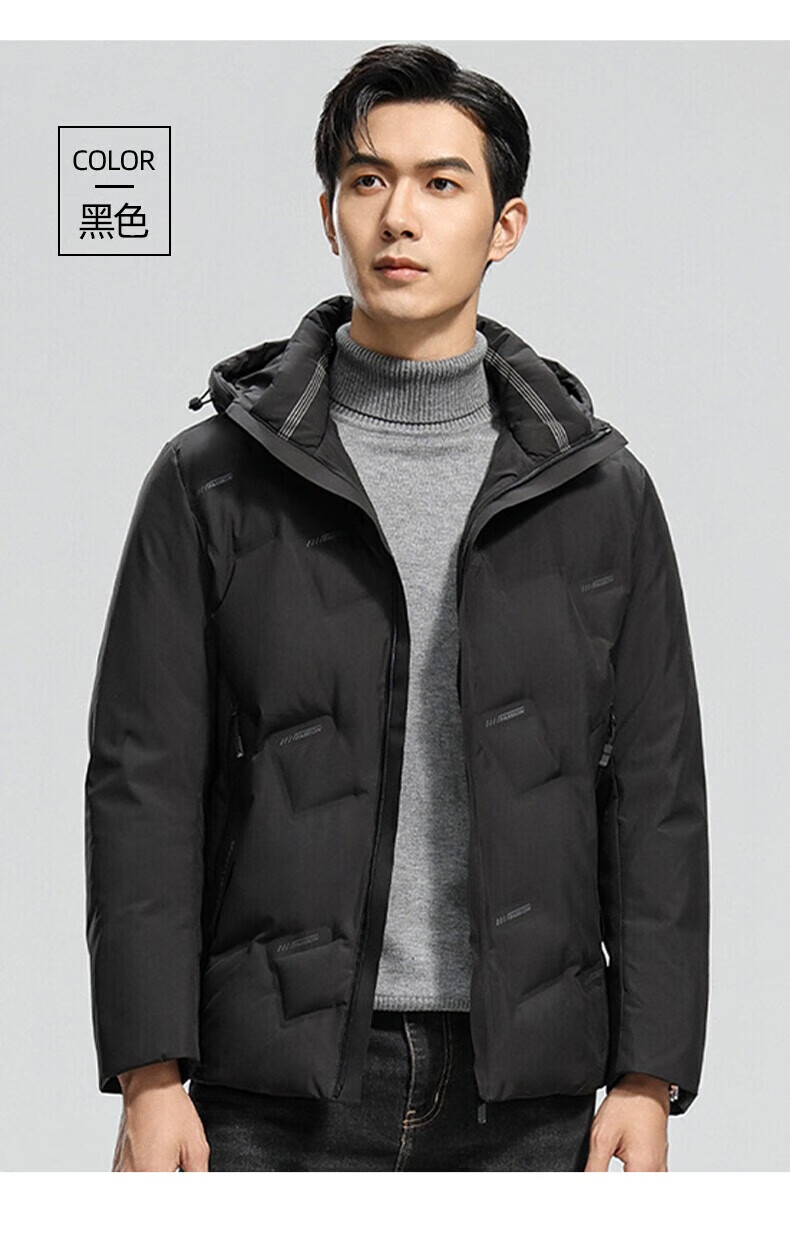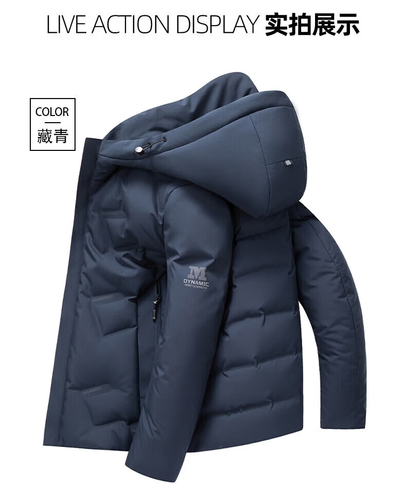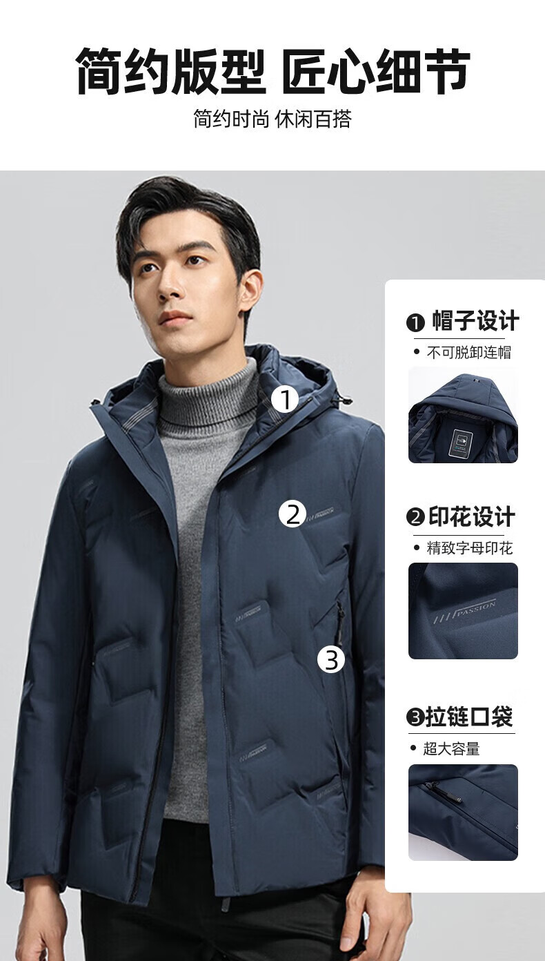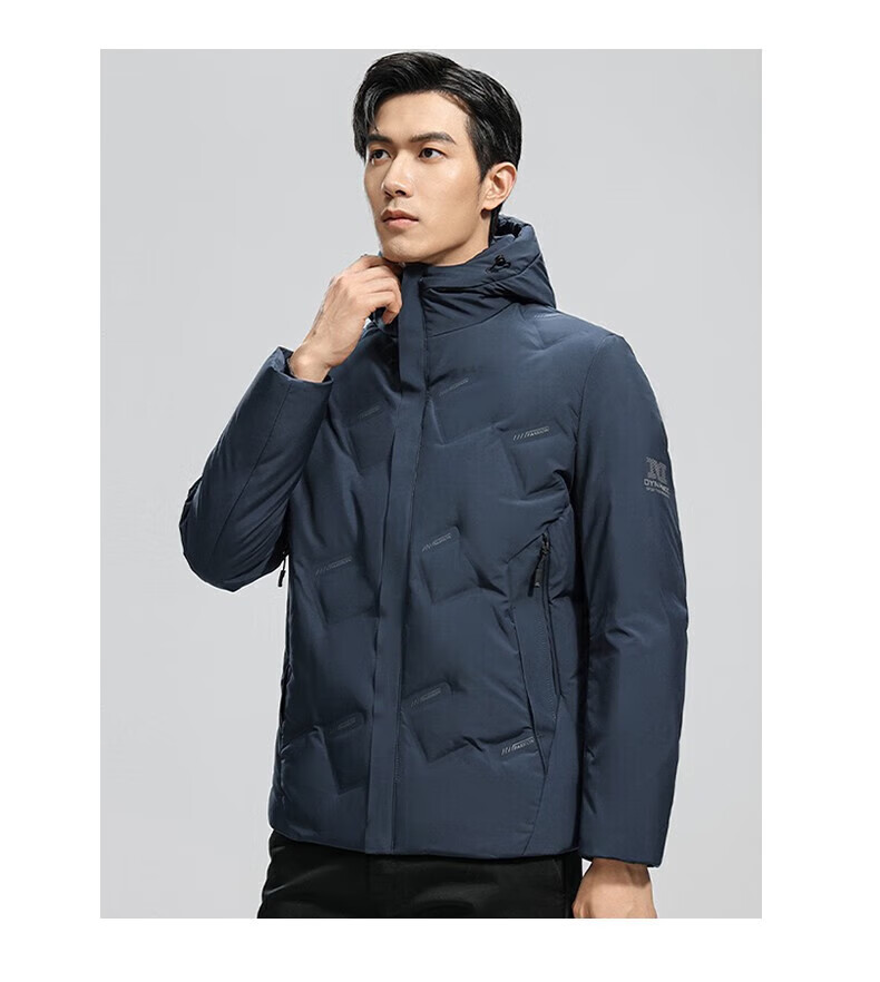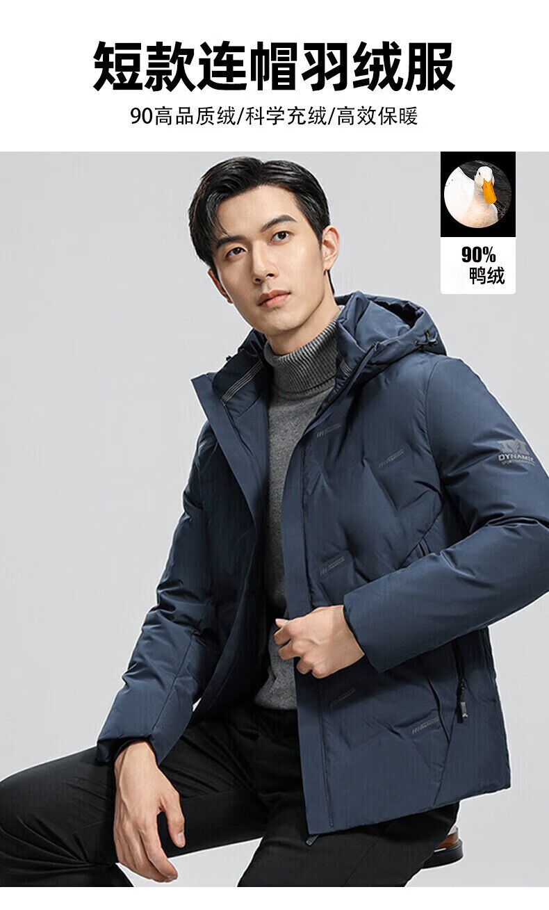 鸭鸭(YAYA)羽绒服男短款连帽立领厚款保暖青年冬季新年工装外套 藏青 3XL 190 (建议155-175斤)