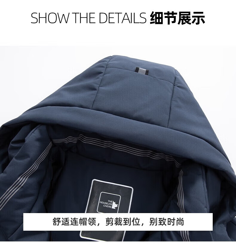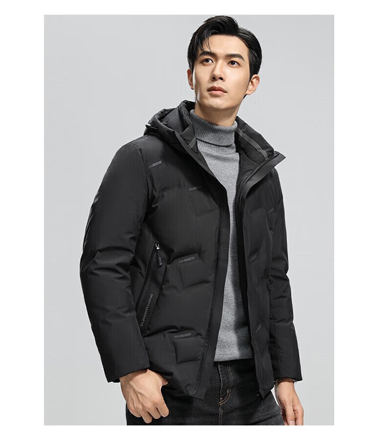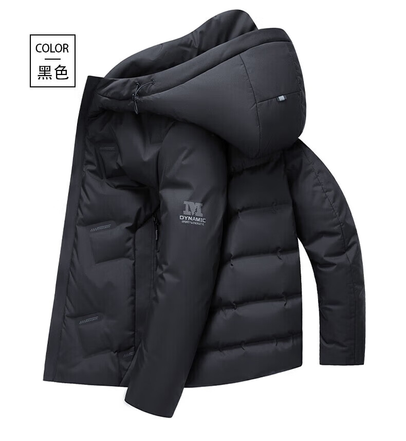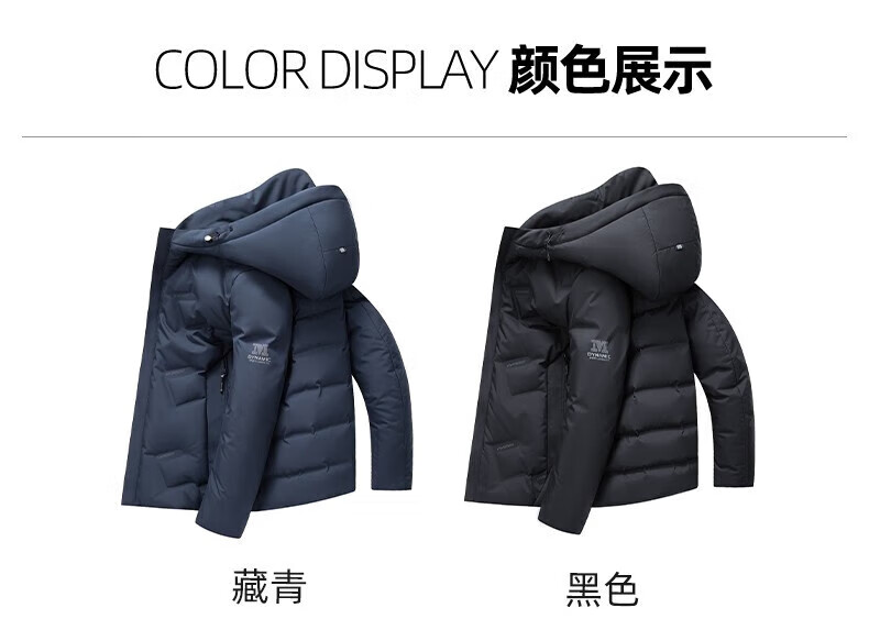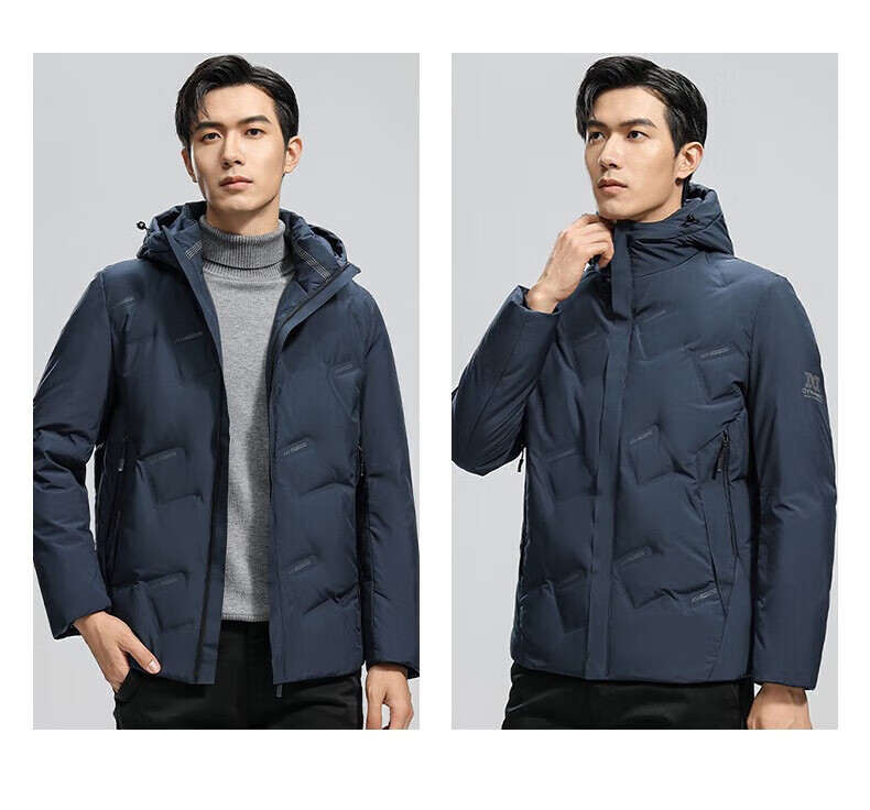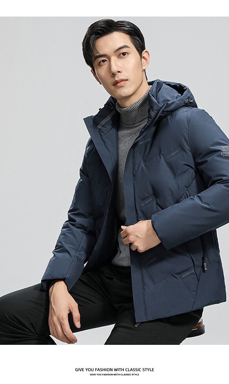 鸭鸭(YAYA)羽绒服男短款连帽立领厚款保暖青年冬季新年工装外套 藏青 3XL 190 (建议155-175斤)