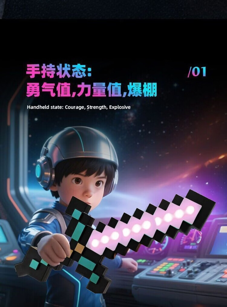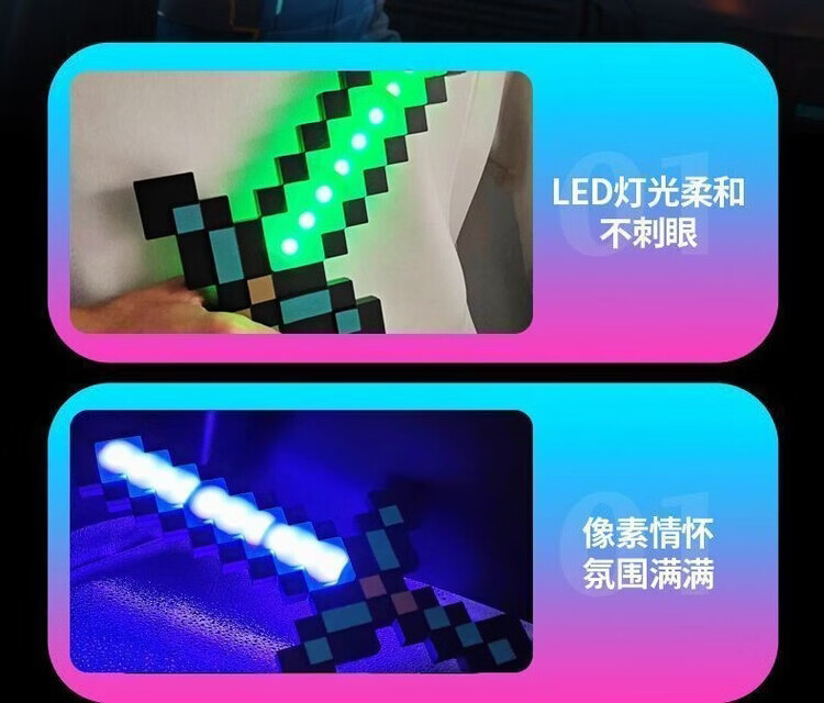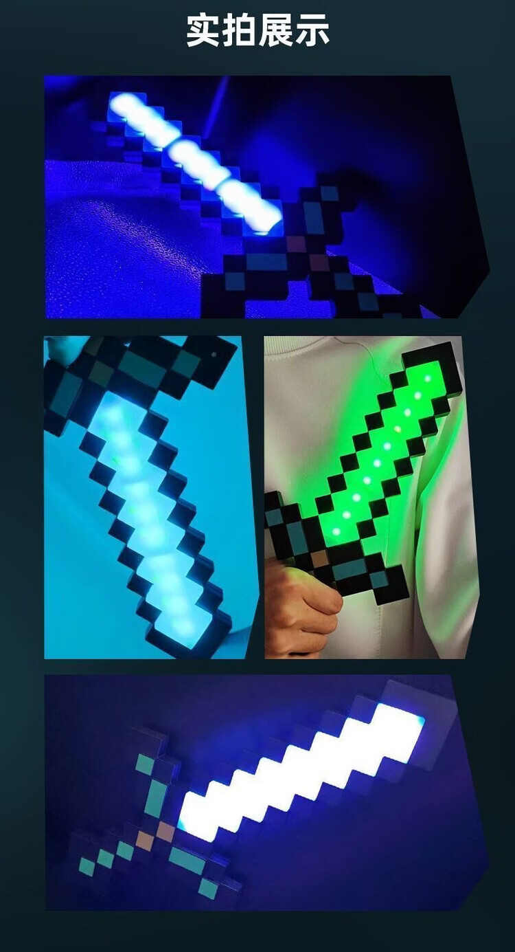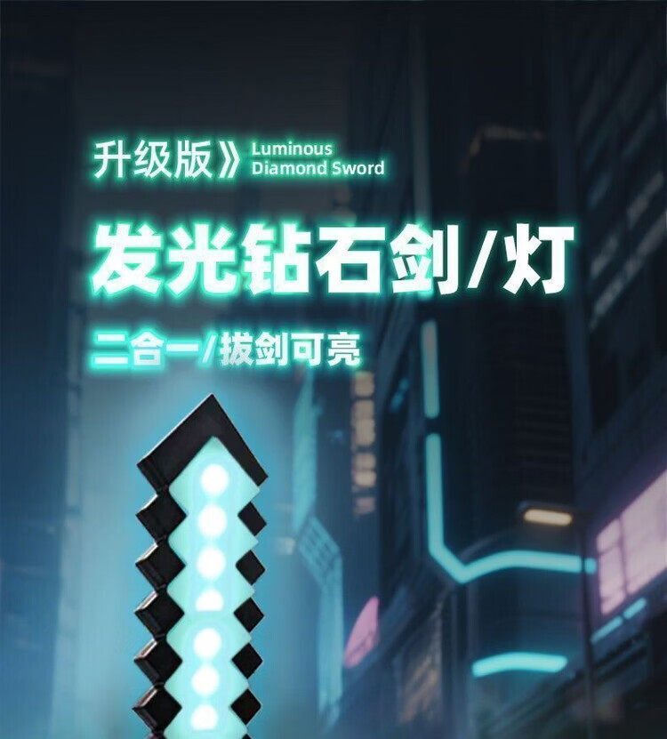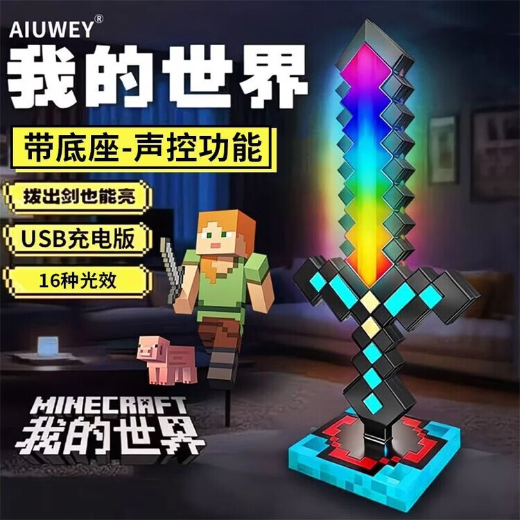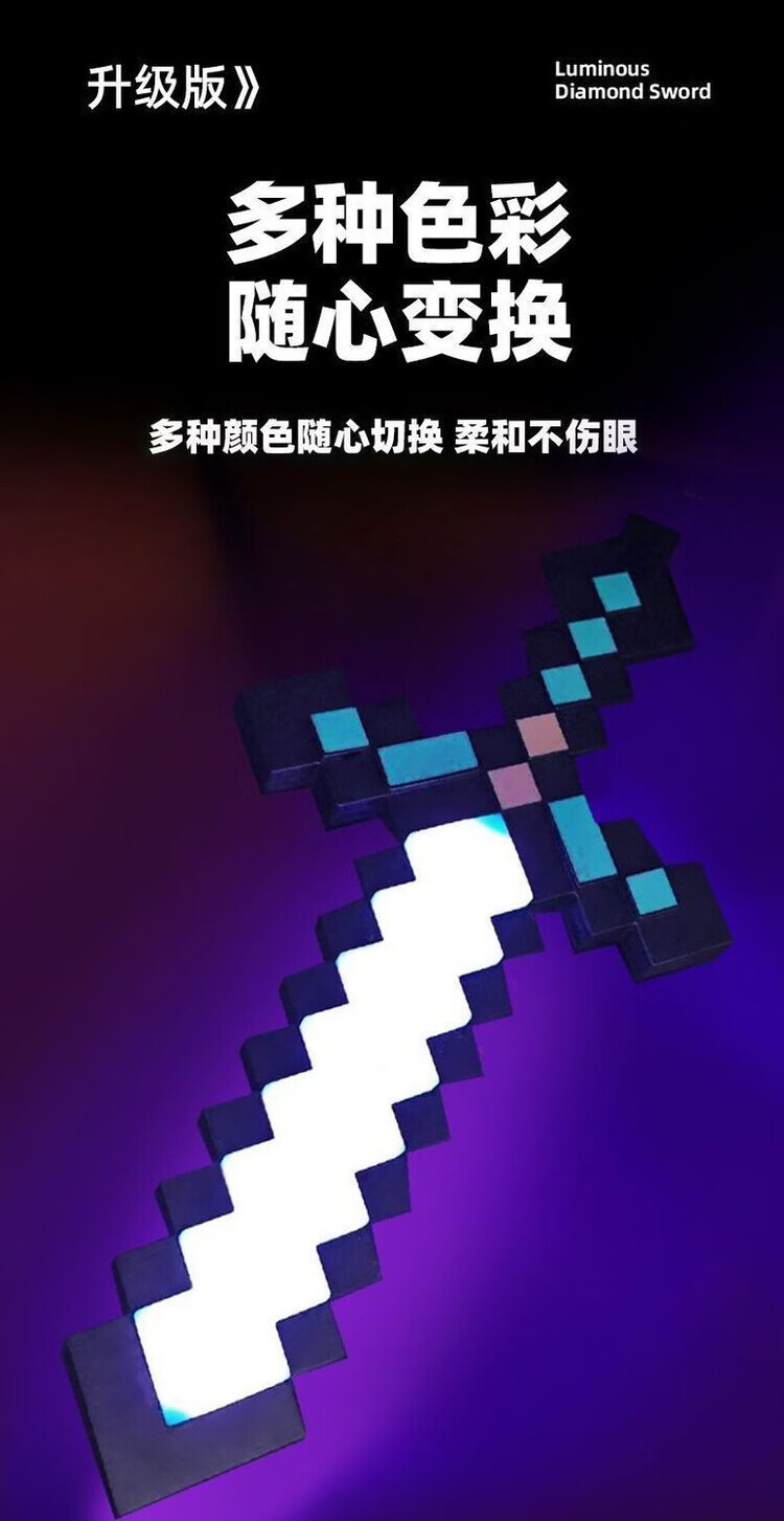 我的世界星辉死神手办我的世界钻石发光玩具武器mc周边手办男女孩 充电版-9色变换-无底座
