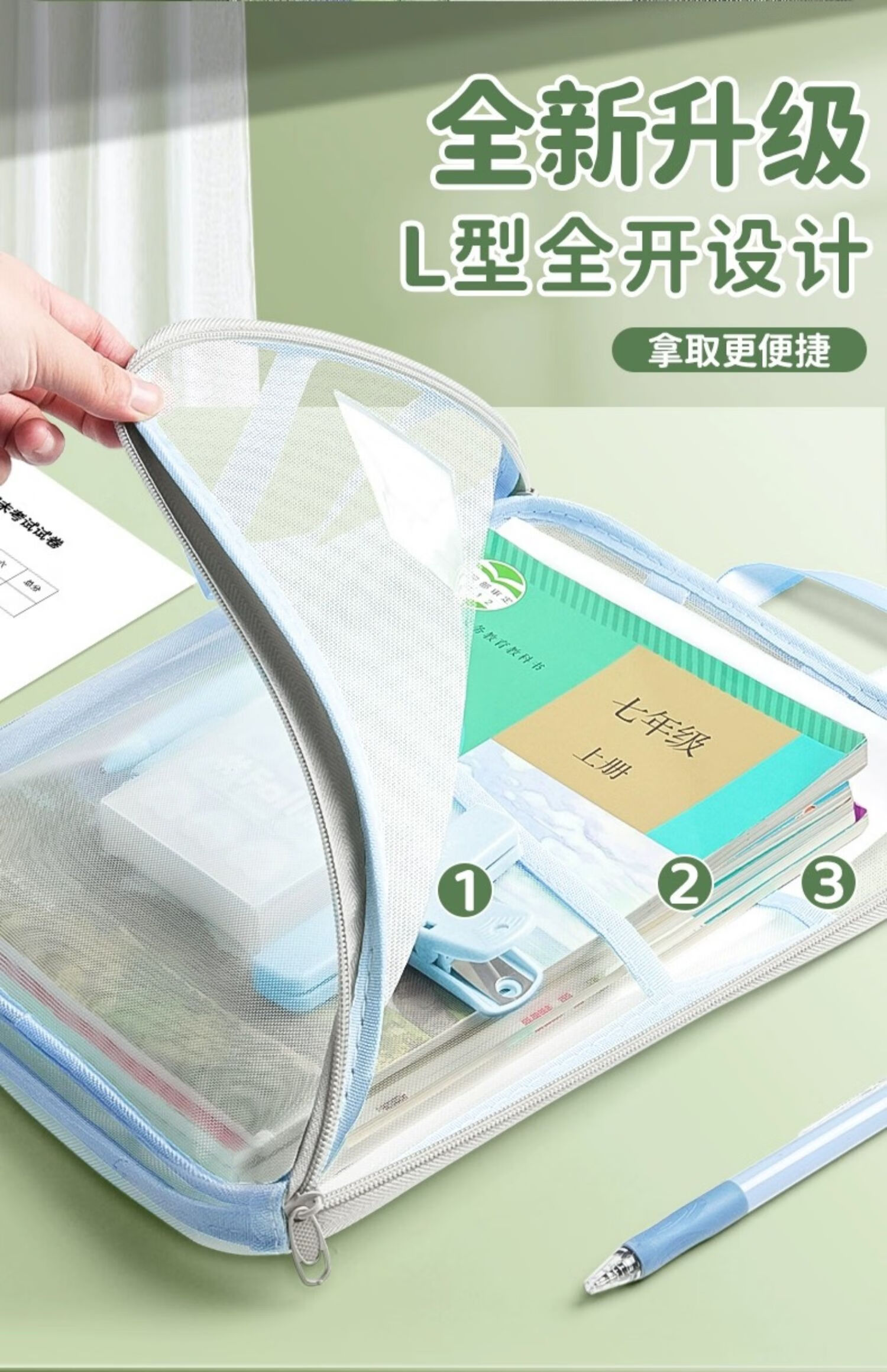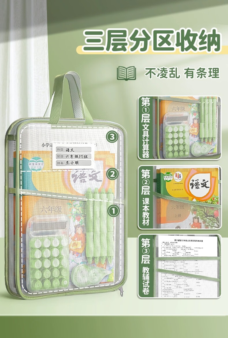 晨光(M&G)a4学科袋科目分类文件袋小学生双层超牢固抗皱透明网纱试卷收纳袋加厚大容量拉链式书袋课本作业袋 双层【语+数+英+综合+作业】各1/ 共5个