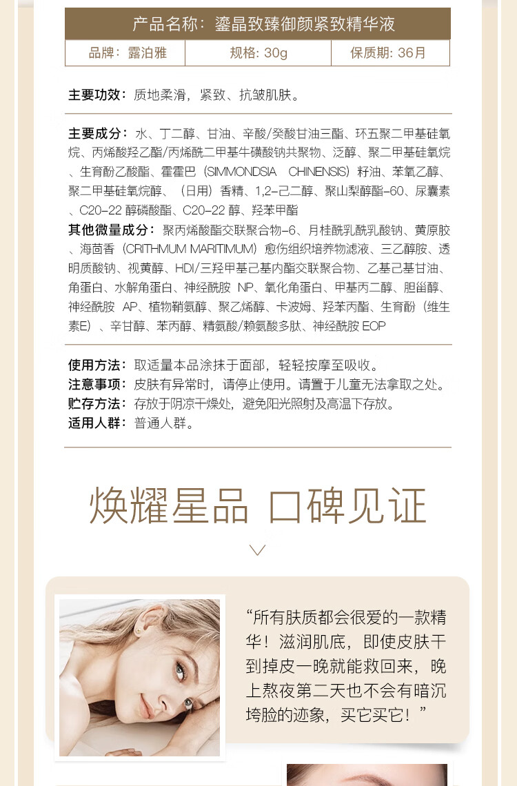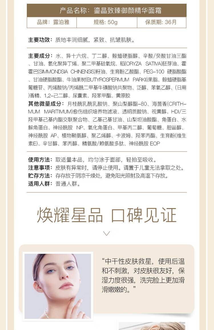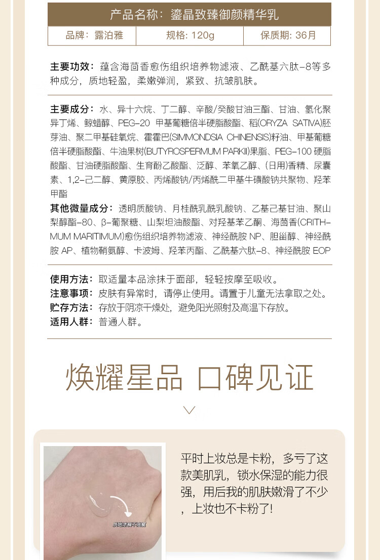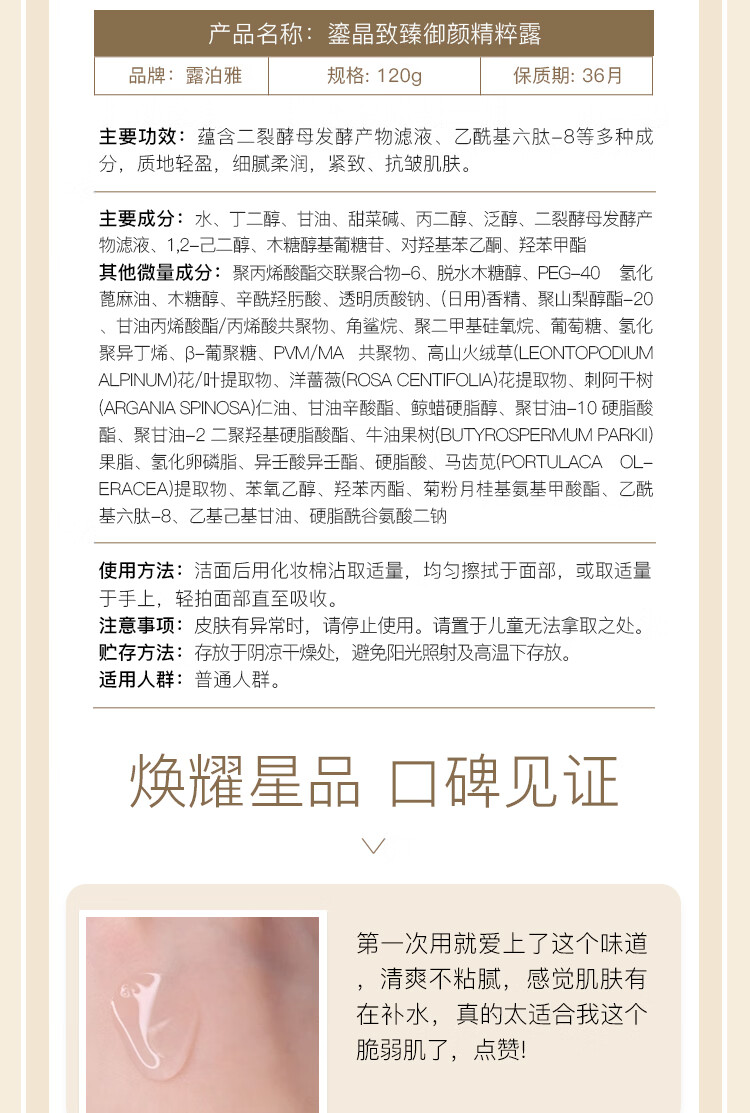 露泊雅致臻系列组合 补水保湿抗衰抗皱柔肤水乳液精华 鎏晶致臻御颜精华面霜