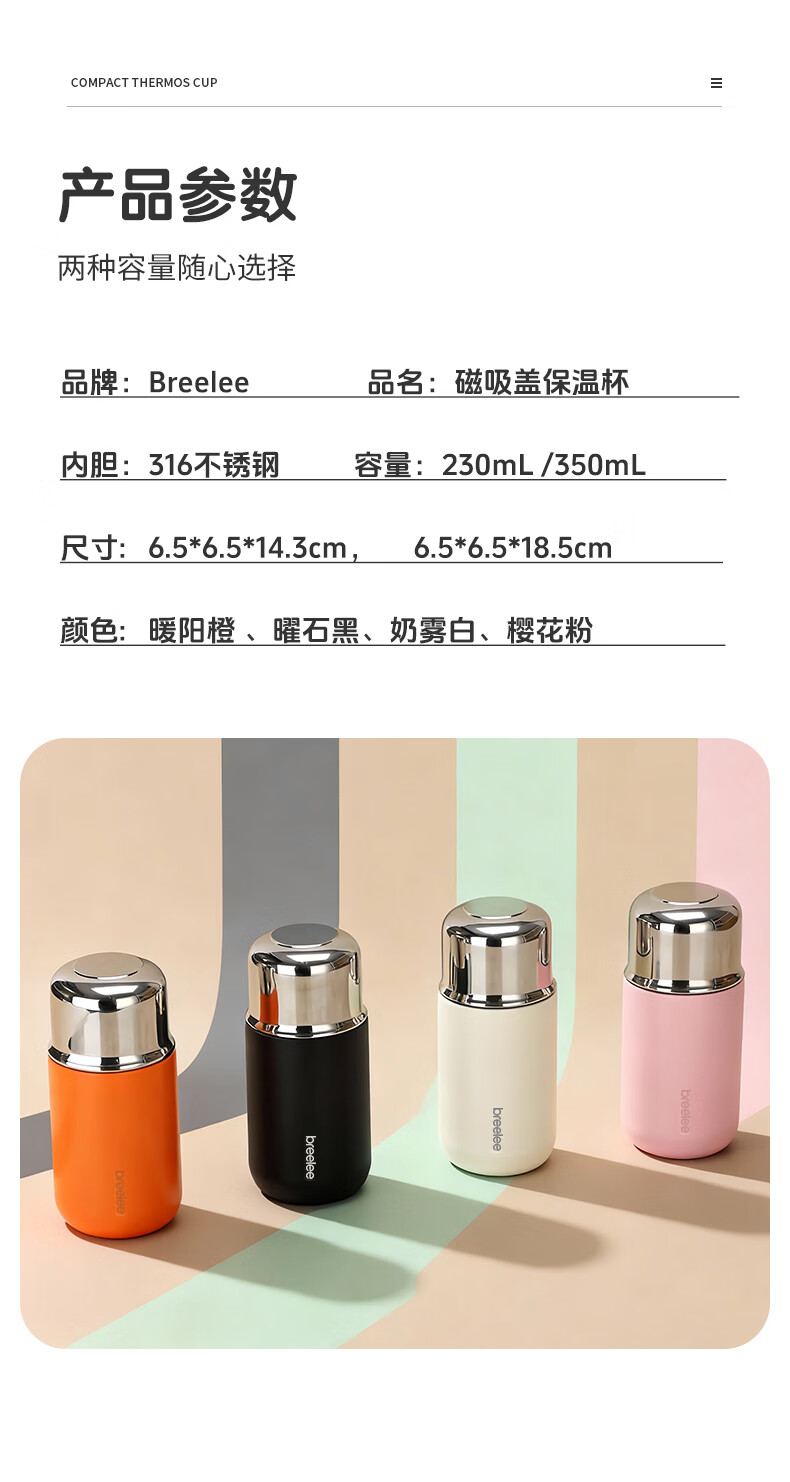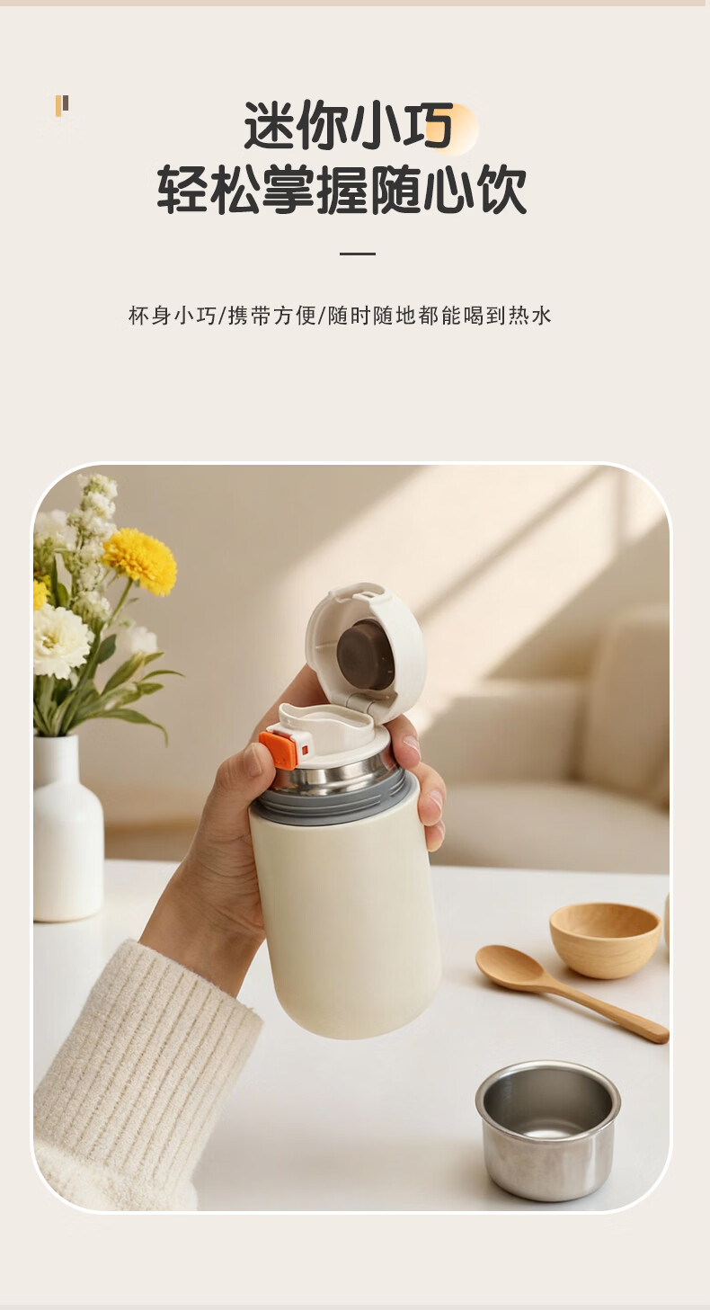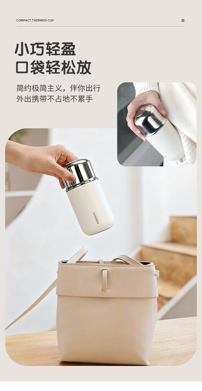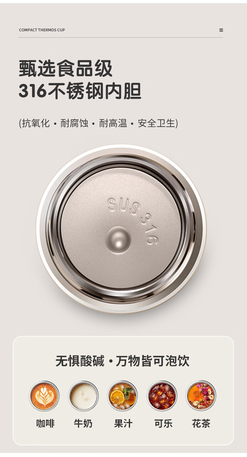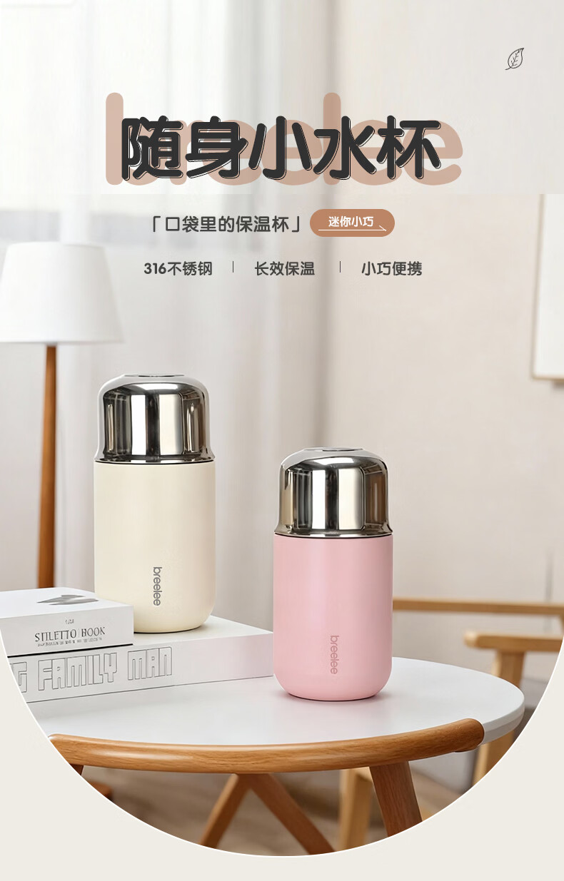 闲适生活迷你保温杯女生高颜值小巧便捷小容量口袋杯 316不锈钢随行水杯 曜石黑【230ml】