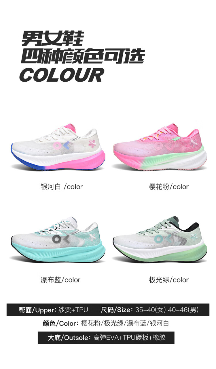 ONKE德国欧克跑步鞋男鞋透气轻便网面鞋碳板跑鞋女鞋轻便马拉松运动鞋 银河白 女款 35