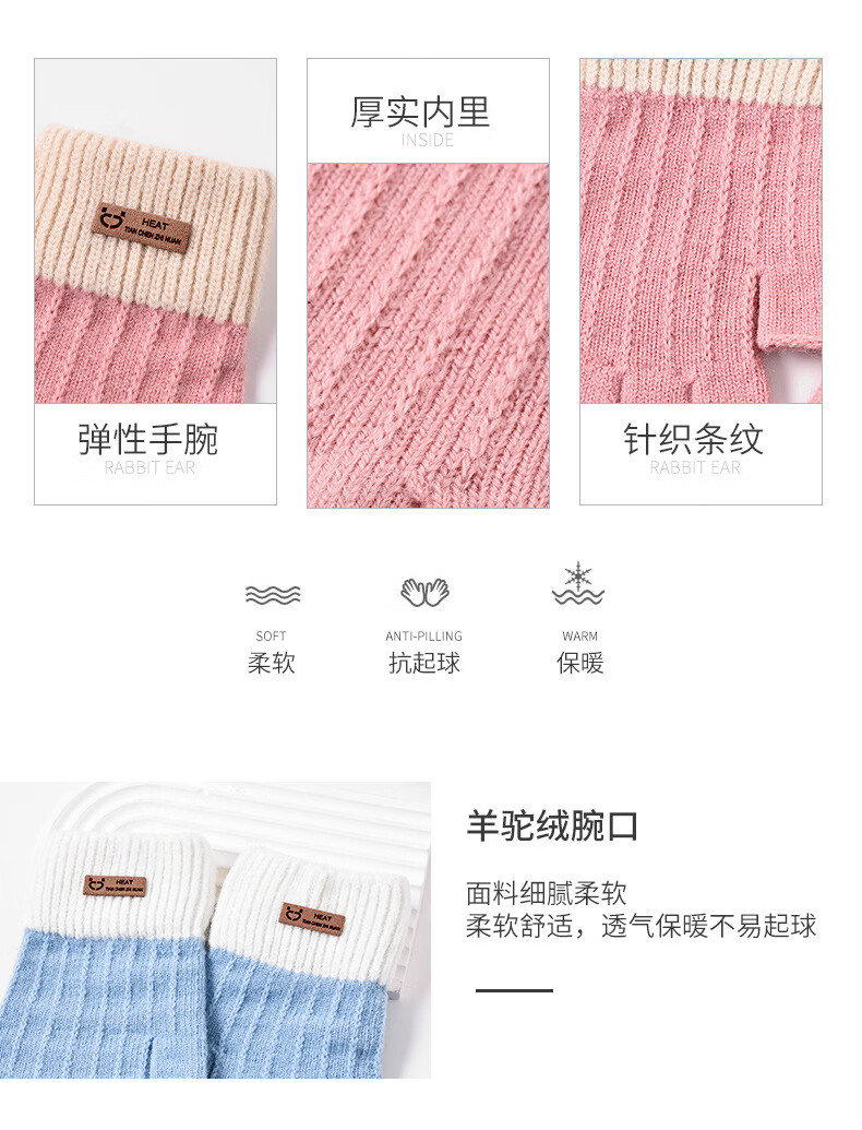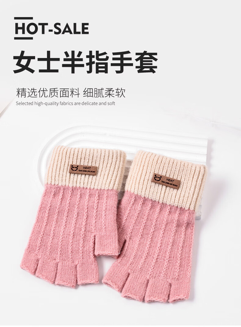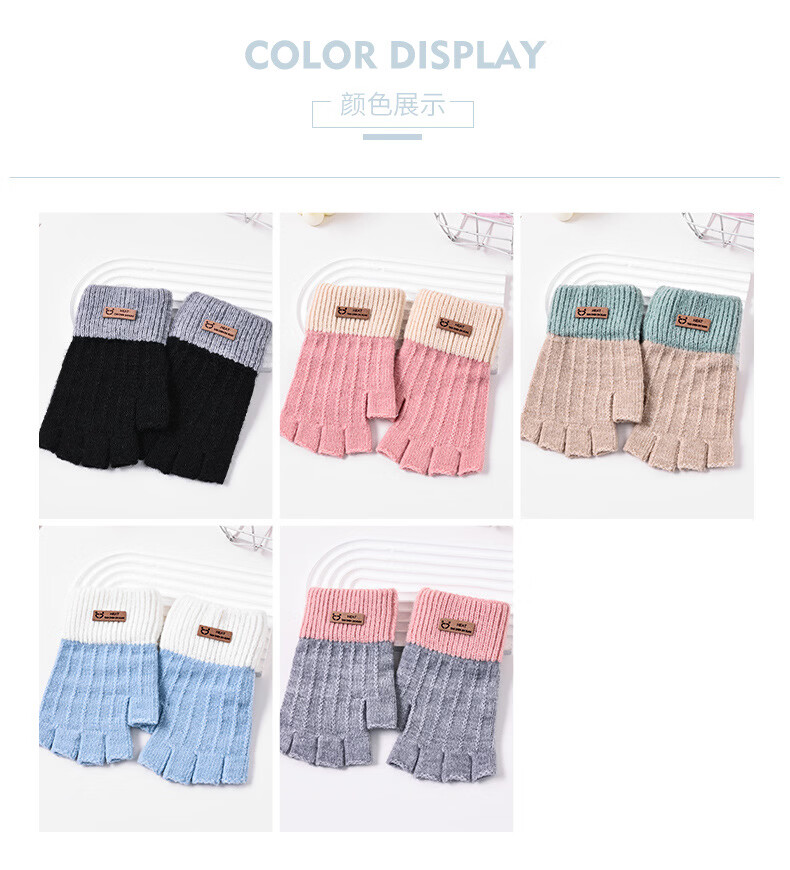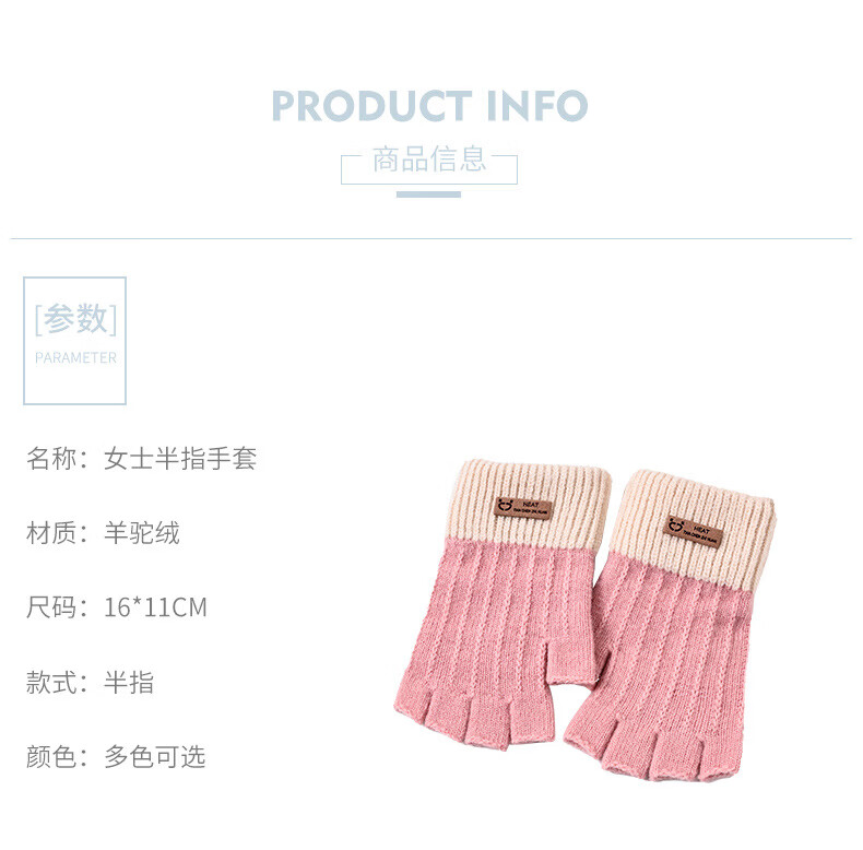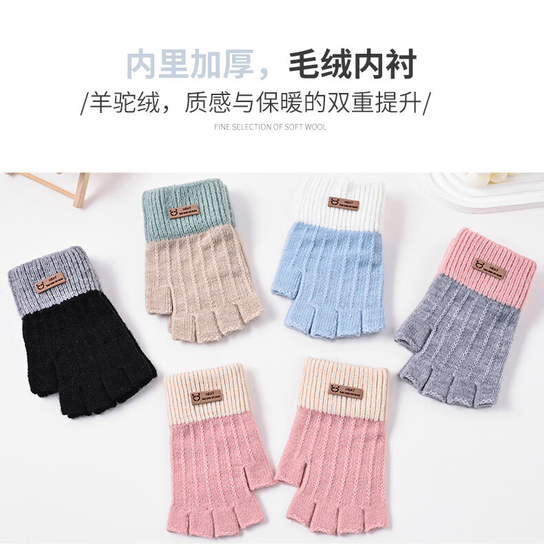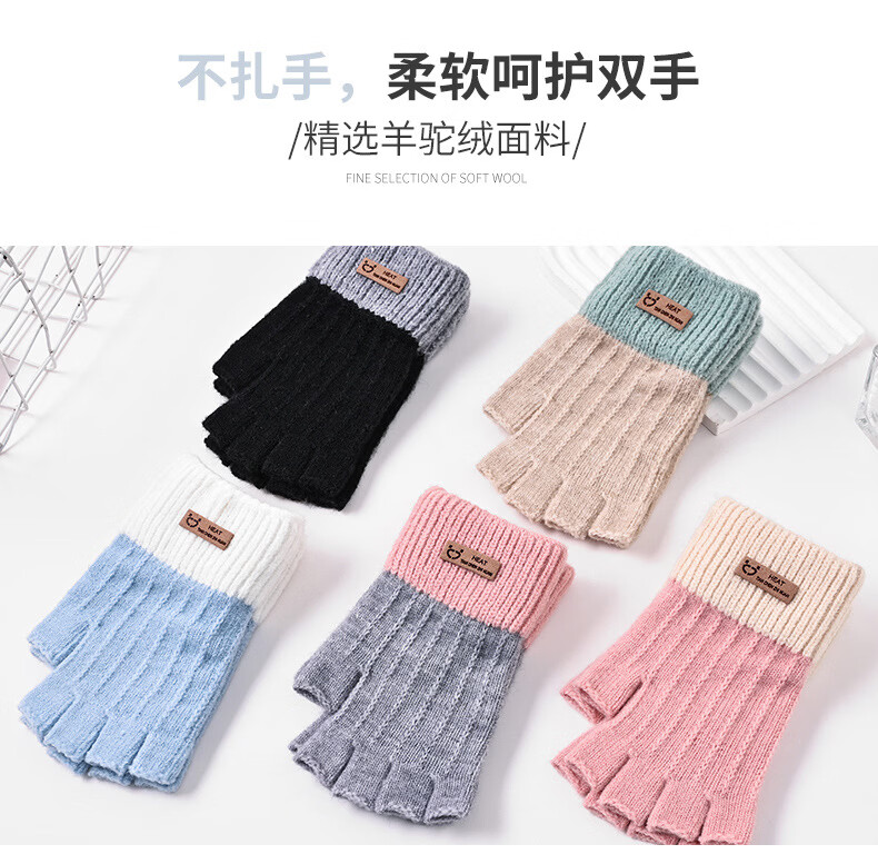 【精选直发】秋冬季半指手套女士学生加绒加厚骑行骑车写字防寒毛 浅灰色 均码