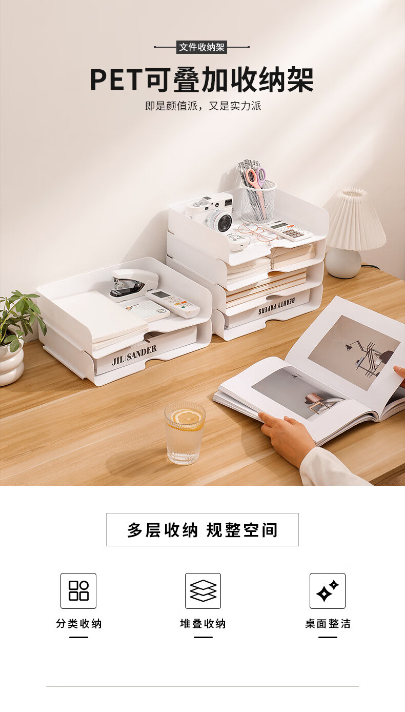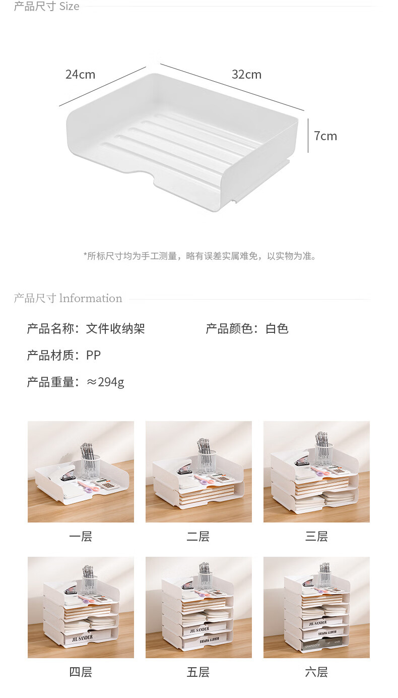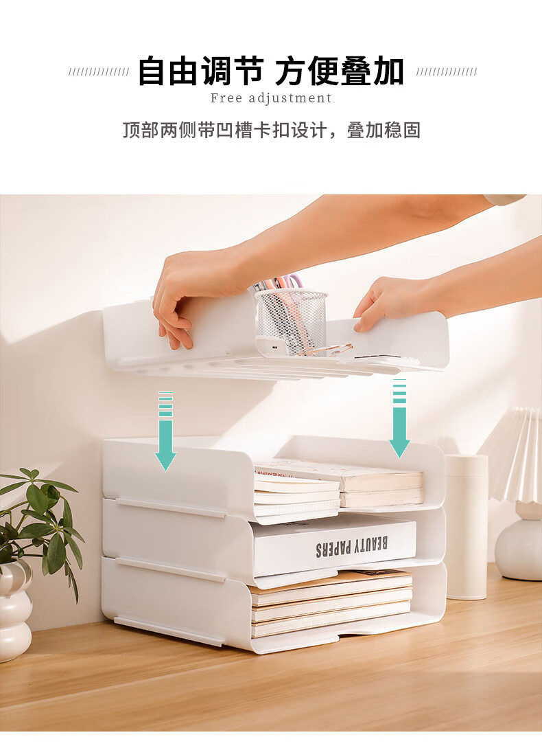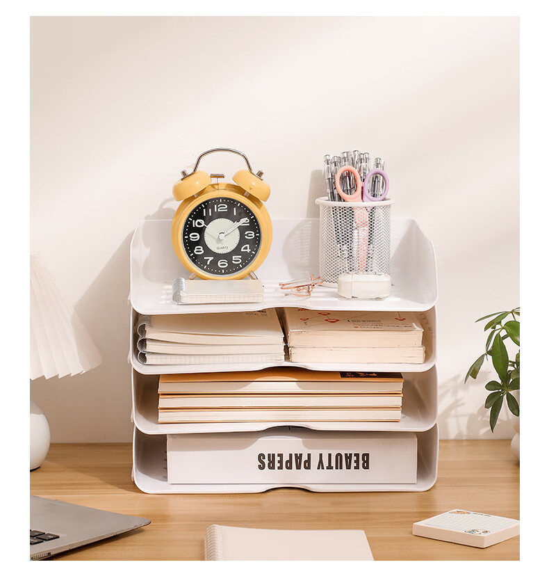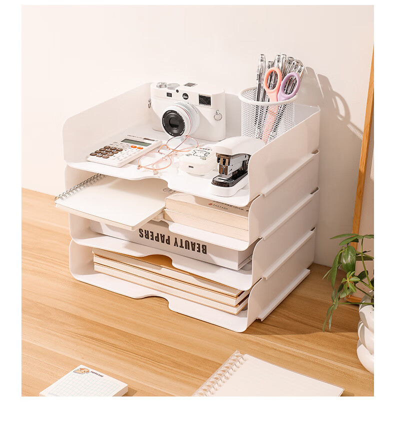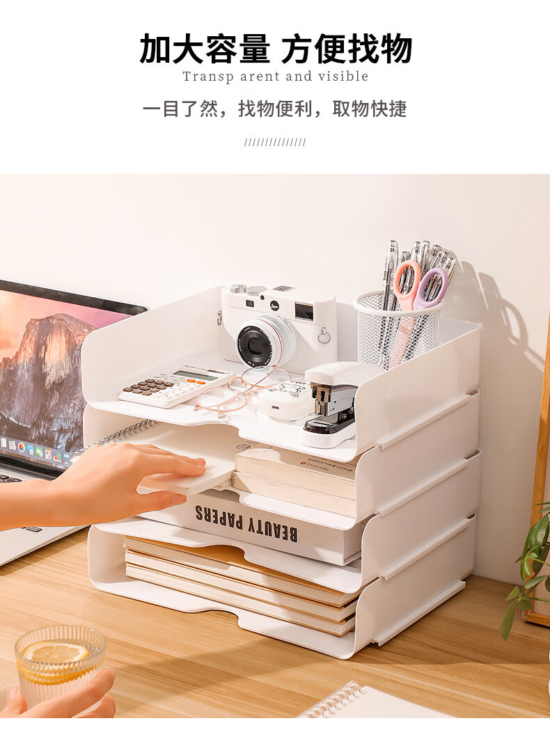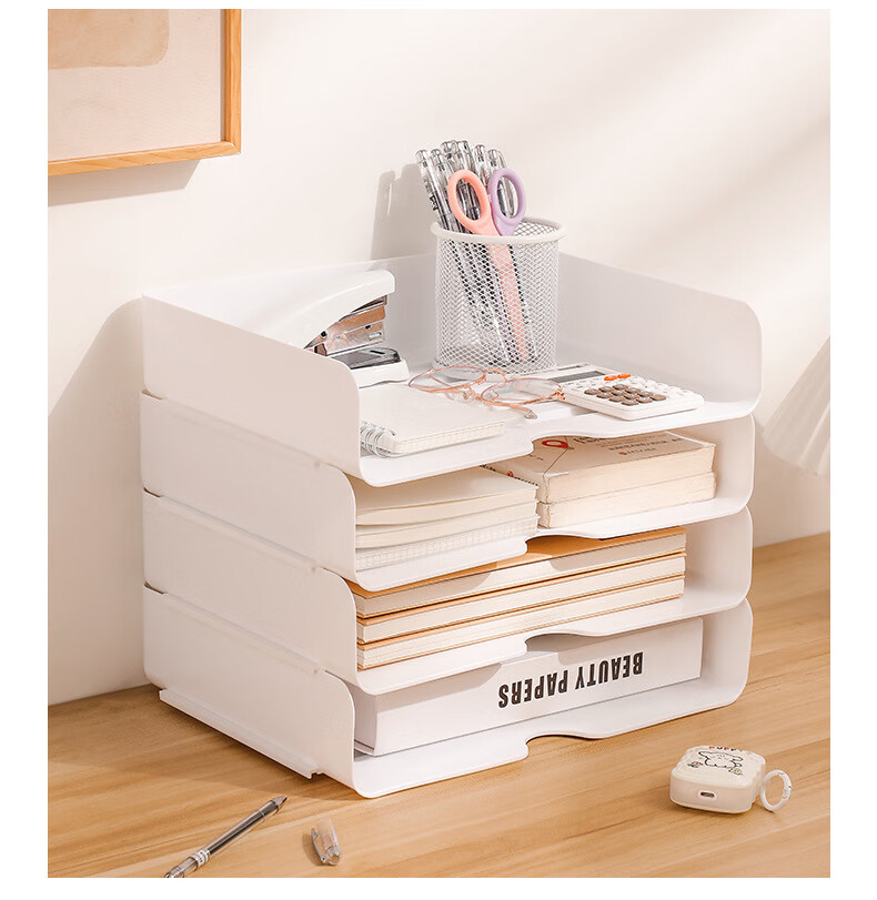 【实用】办公室桌面收纳盒a4文件夹多层收纳架资料架子文件架置物 白色1层收纳架