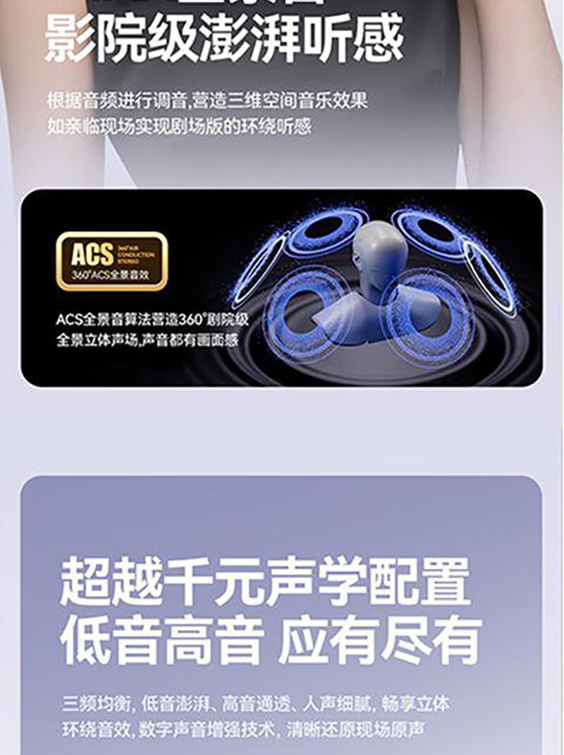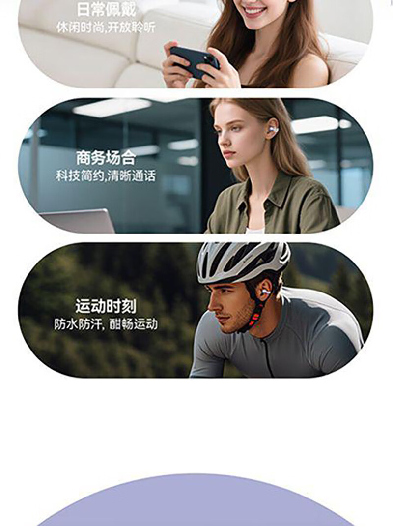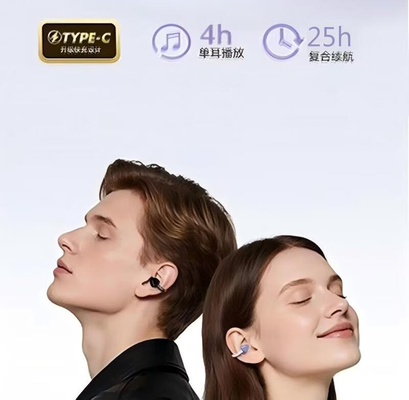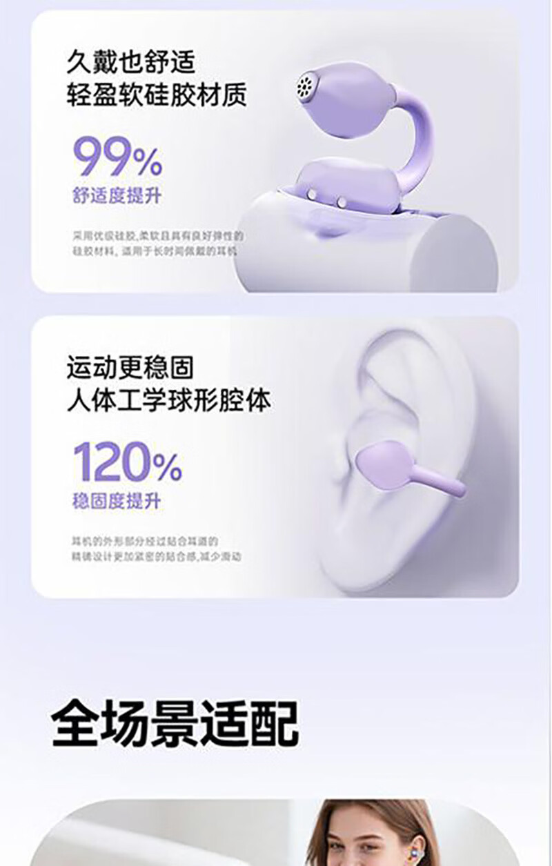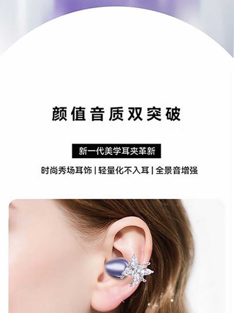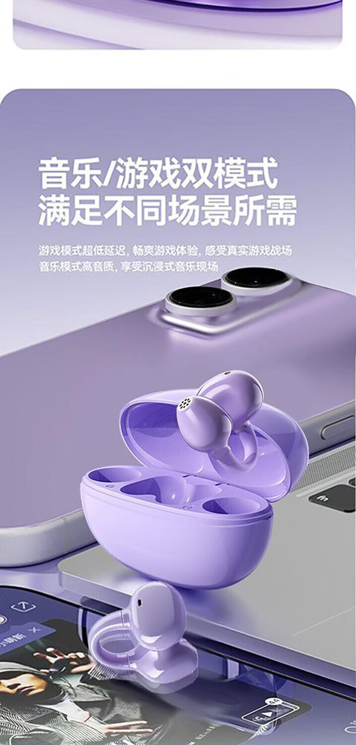 逸青霄新款耳夹式蓝牙耳机骨传导高音质降噪长续航运动电量显示舒适不入耳定向传声不漏音杜比级音效通话 紫色