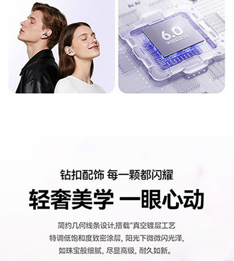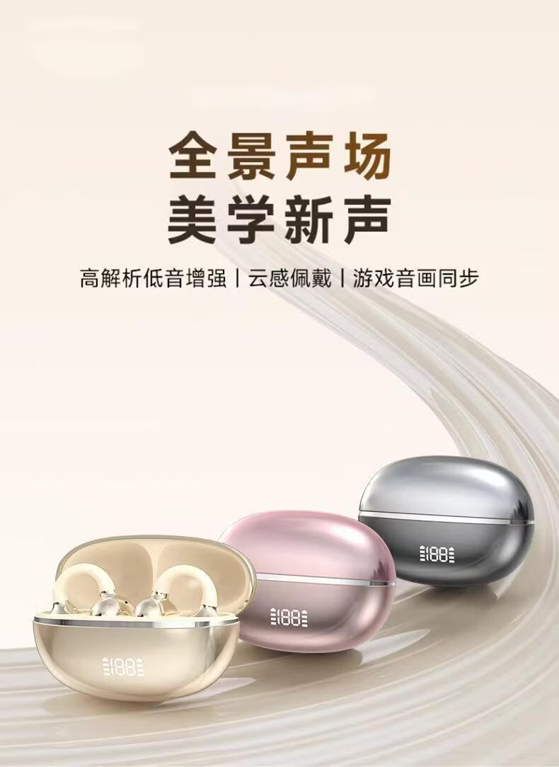 金声动音耳夹式蓝牙耳机超长续航高品质手机电脑耳麦通用无线耳机产品礼物耳塞立体声运动听歌打游戏低延迟 肤色 带饰品