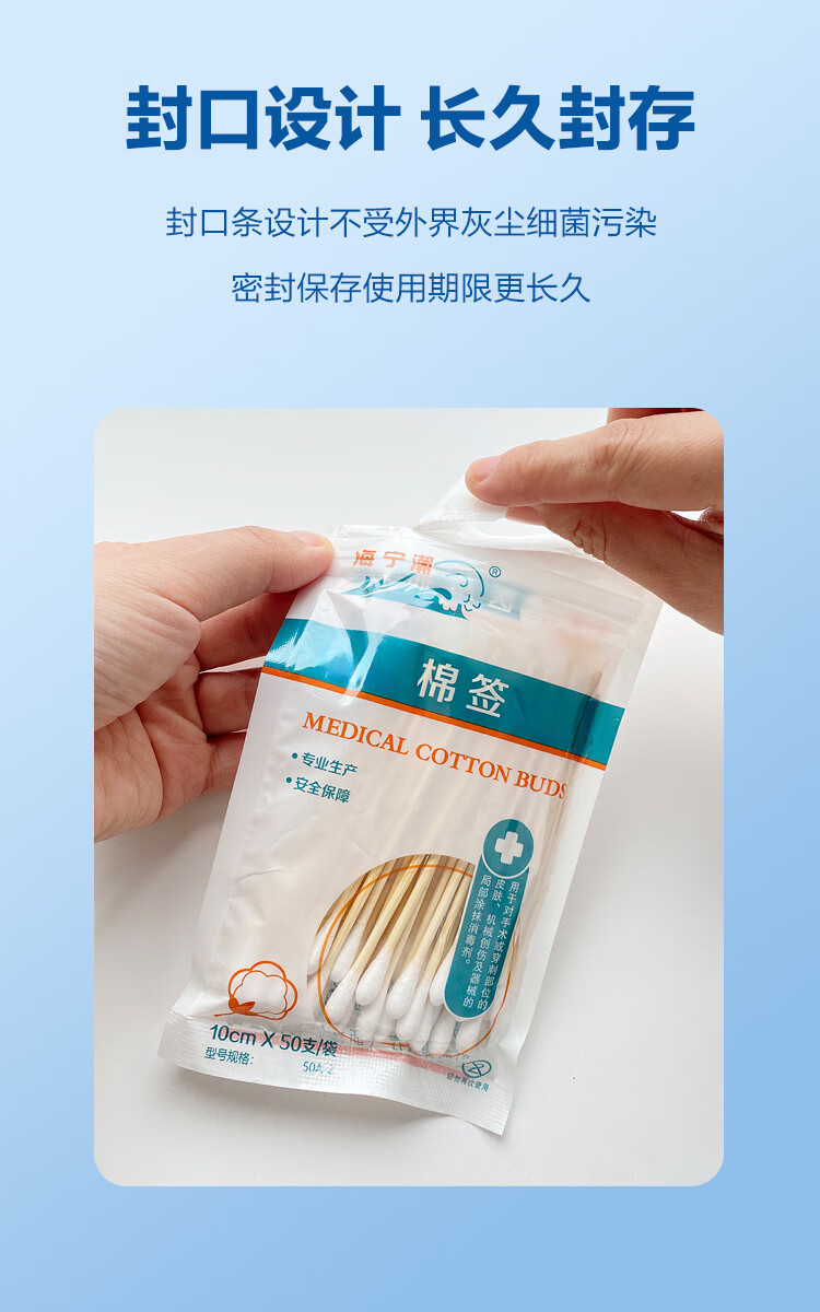 【精选】10cm棉签棉花碘伏棉棒一次性医疗用耳鼻喉专用细长无菌棉 10cm(50支1包)