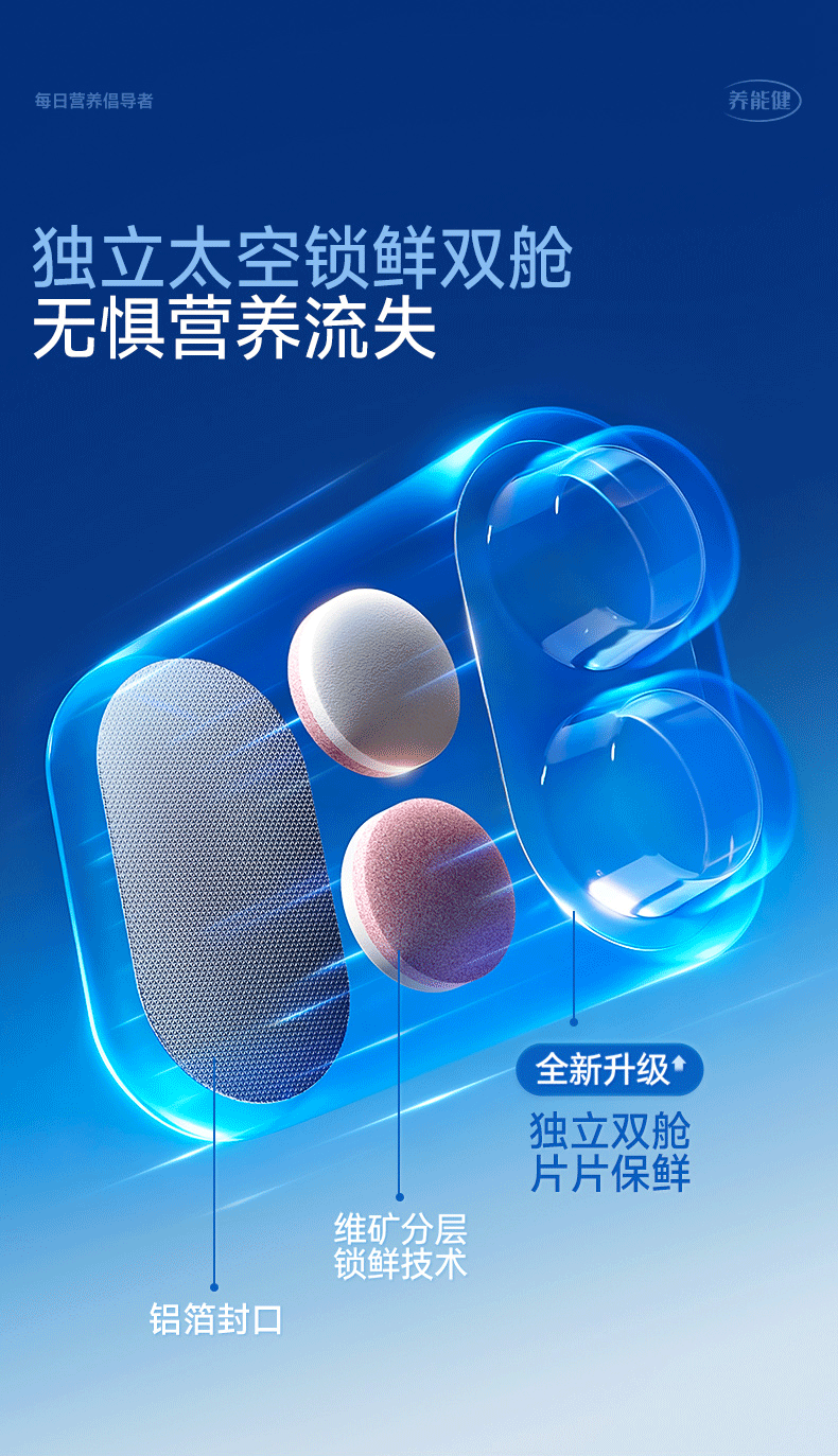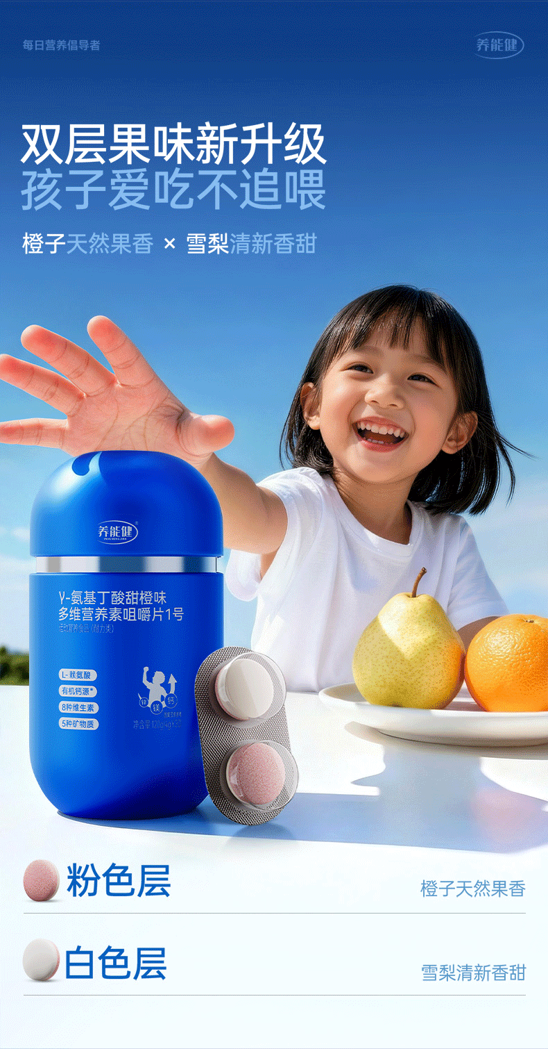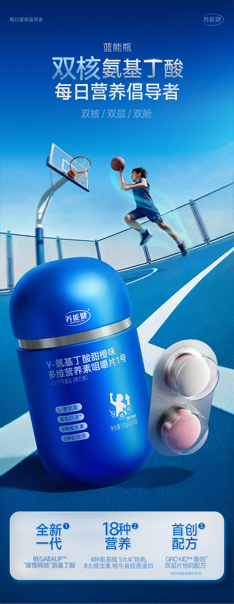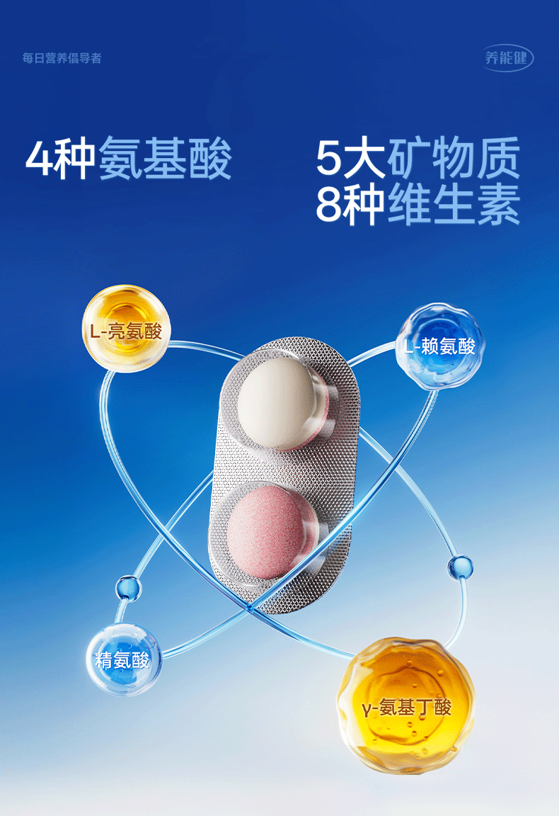 养能健【五大重磅升级】青春款γ氨基丁酸蓝能瓶多维综合营养钙片60粒 【周期装】 60粒*3瓶 |青春款蓝能瓶